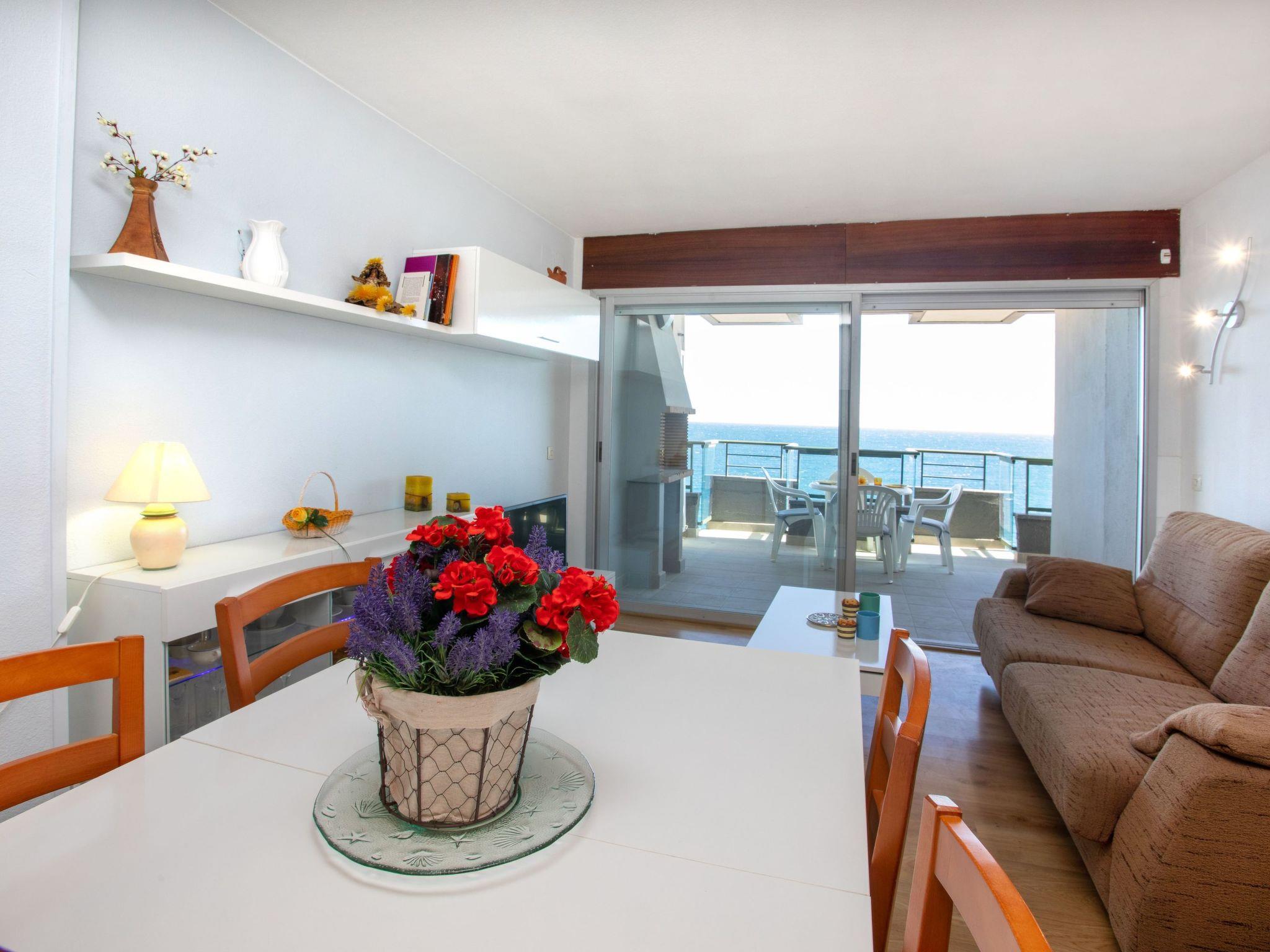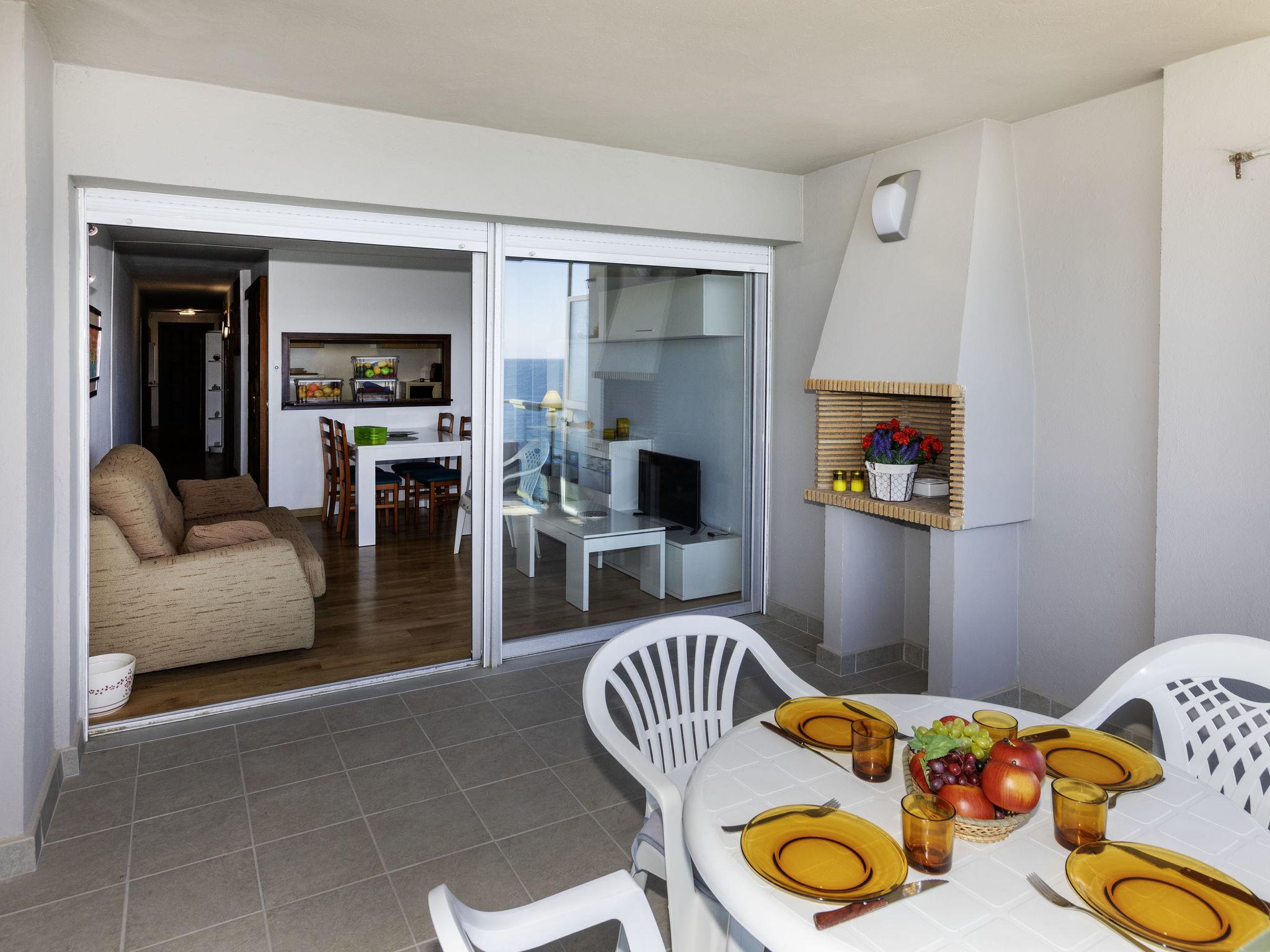 "Vermell", 3-room apartment 60 m2 on 9th floor. Practical furnishings: living/dining room with TV. Exit to the terrace. 1 room with 1 french bed (150 cm, length 190 cm), electric heater. 1 room, without window with 1 x 2 bunk beds (80 cm, length 180 cm), electric heating. Open kitchen (oven, 3 ceramic glass hob hotplates, toaster, kettle, microwave, electric coffee machine). Shower/WC. Terrace. Terrace furniture. Marvellous view of the sea. Facilities: washing machine, iron, hair dryer. Internet (WiFi, free). Parking. Please note: non-smokers only. TV only ES. HUTG-027737 // Reg. Nr.: ESFCTU00001701700010748600000000000000000HUTG-0277371