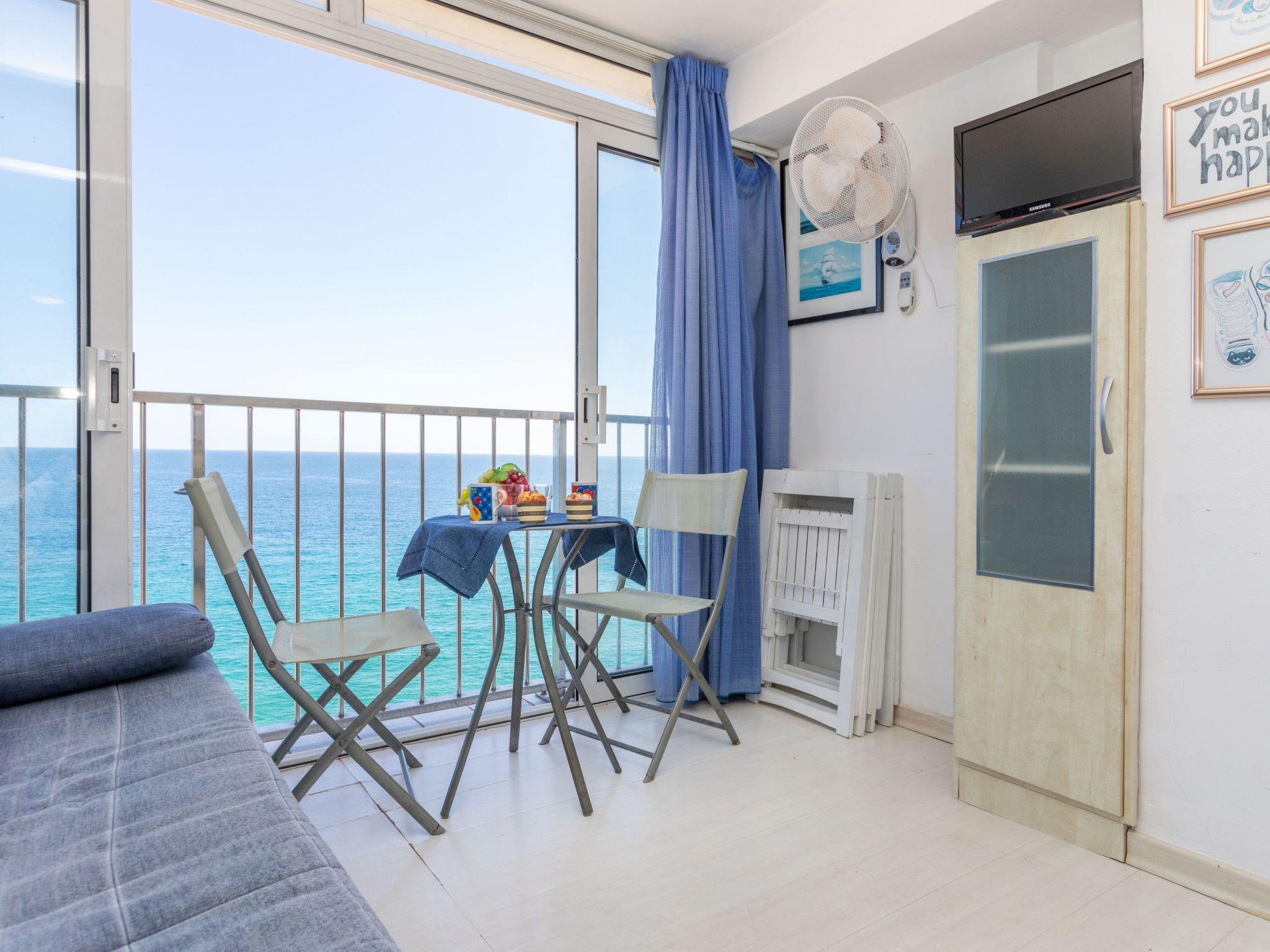 "Rosa Maria Mar", 1-room studio 24 m2 on 9th floor. Practical furnishings: living/dining room with digital TV. Sleeping alcove with 1 french bed (135 cm, length 180 cm). Kitchenette (1 ceramic glass hob hotplate, toaster, kettle, microwave, electric coffee machine). Shower/WC. No heating option. View of the sea. Facilities: iron, baby cot, hair dryer. Internet (WiFi, free). Please note: non-smokers only. TV only ES. HUTG-024317 // Reg. Nr.: ESFCTU00001701700010748600000000000000000HUTG-0243178