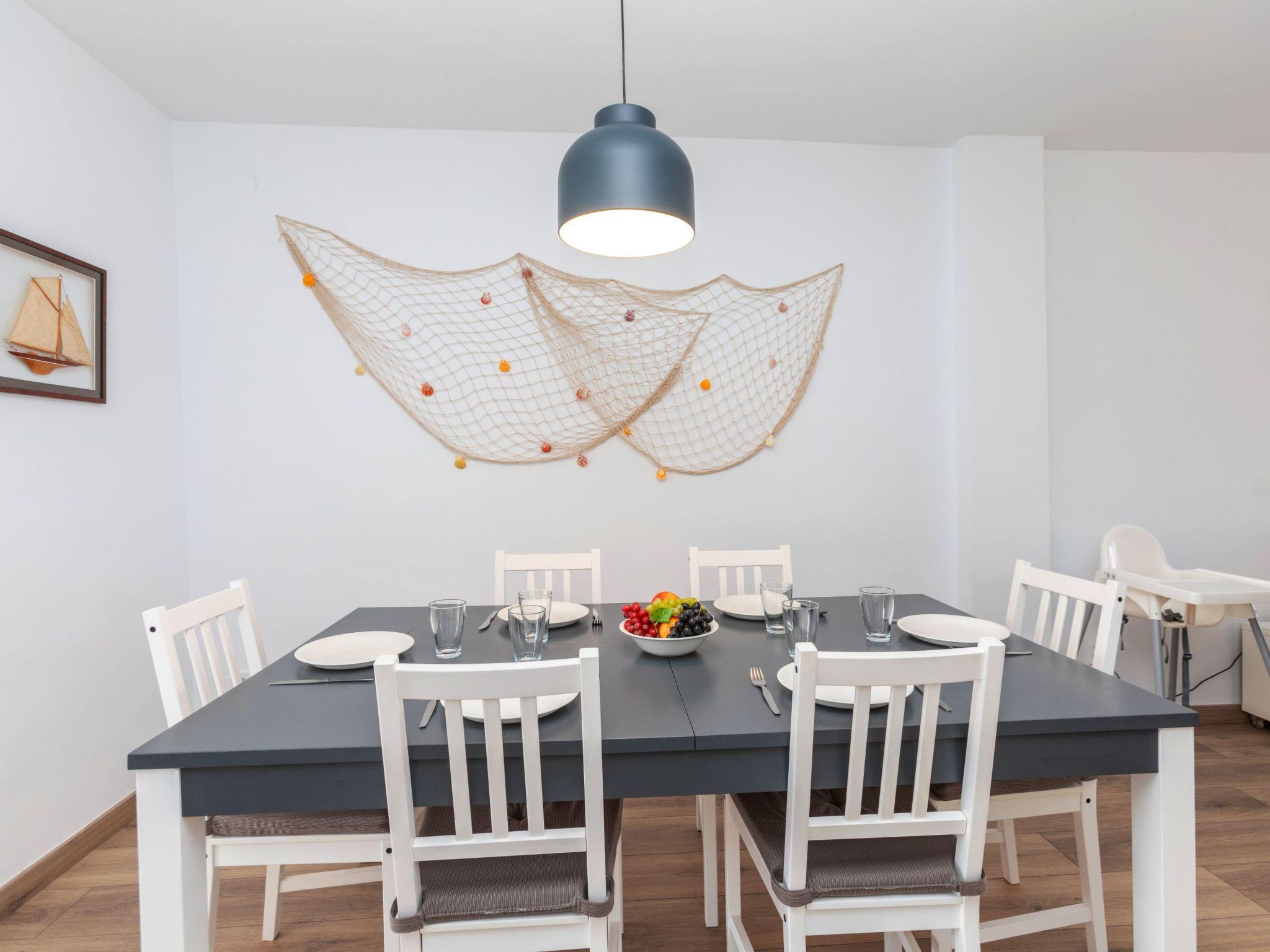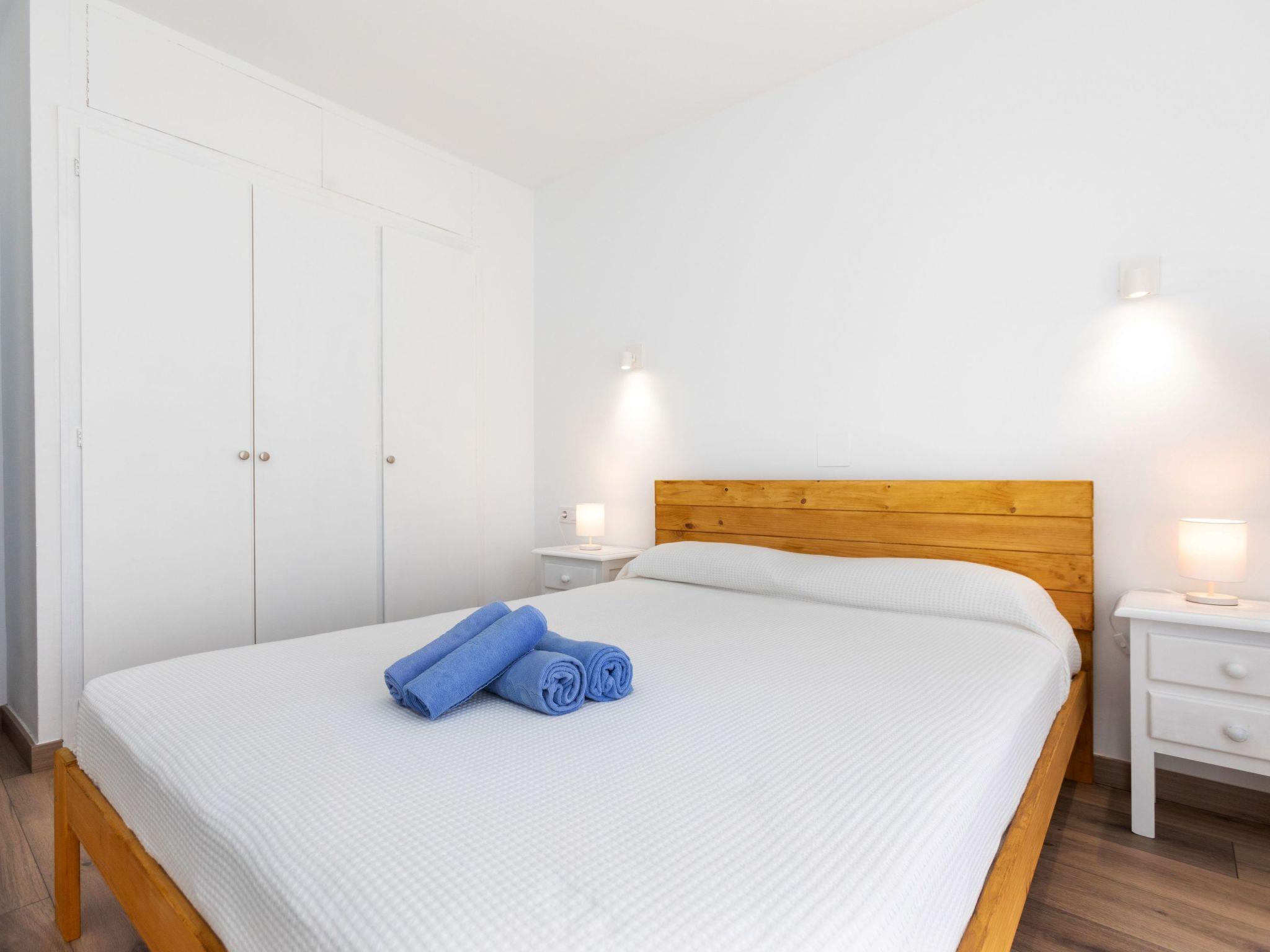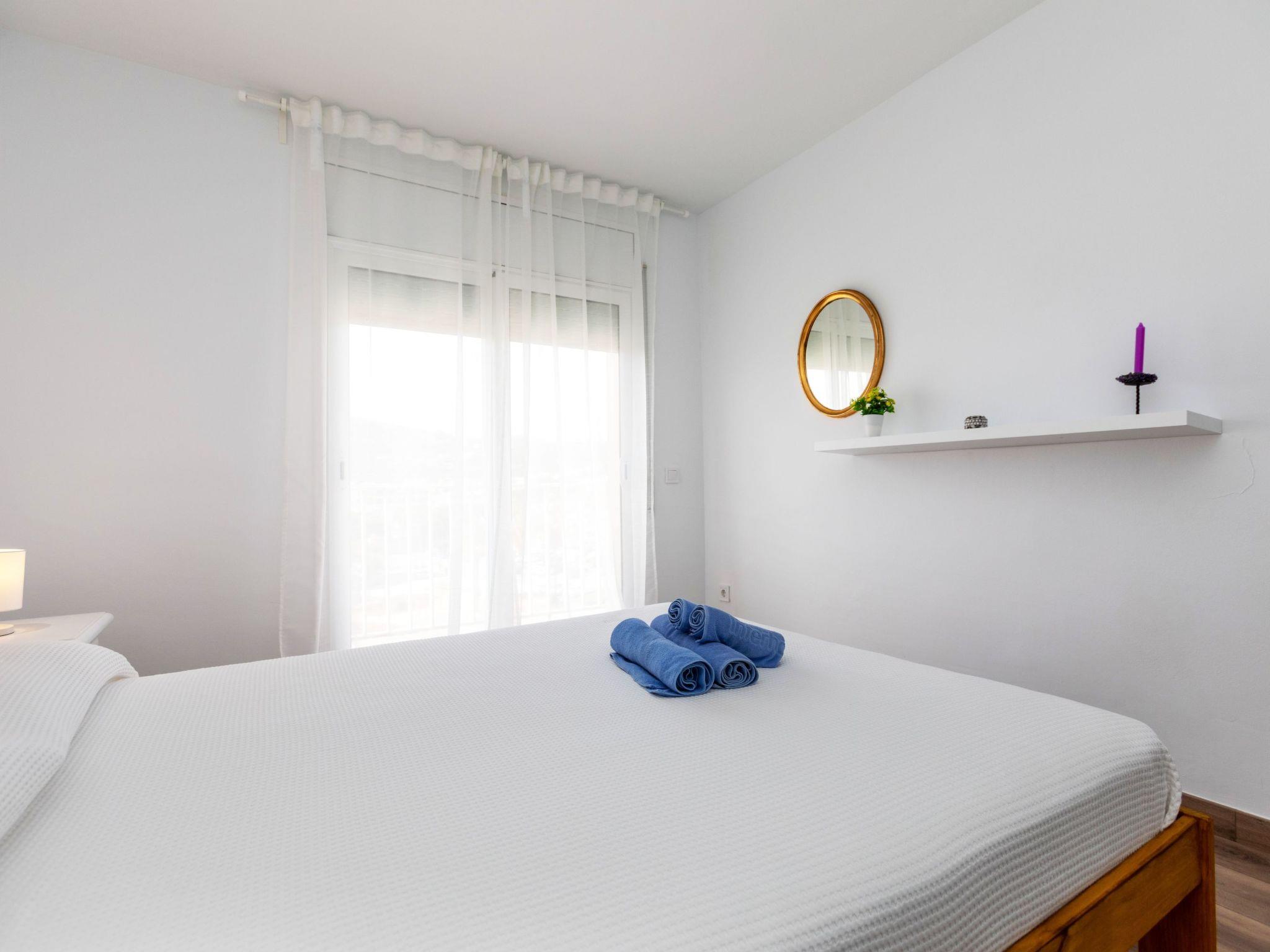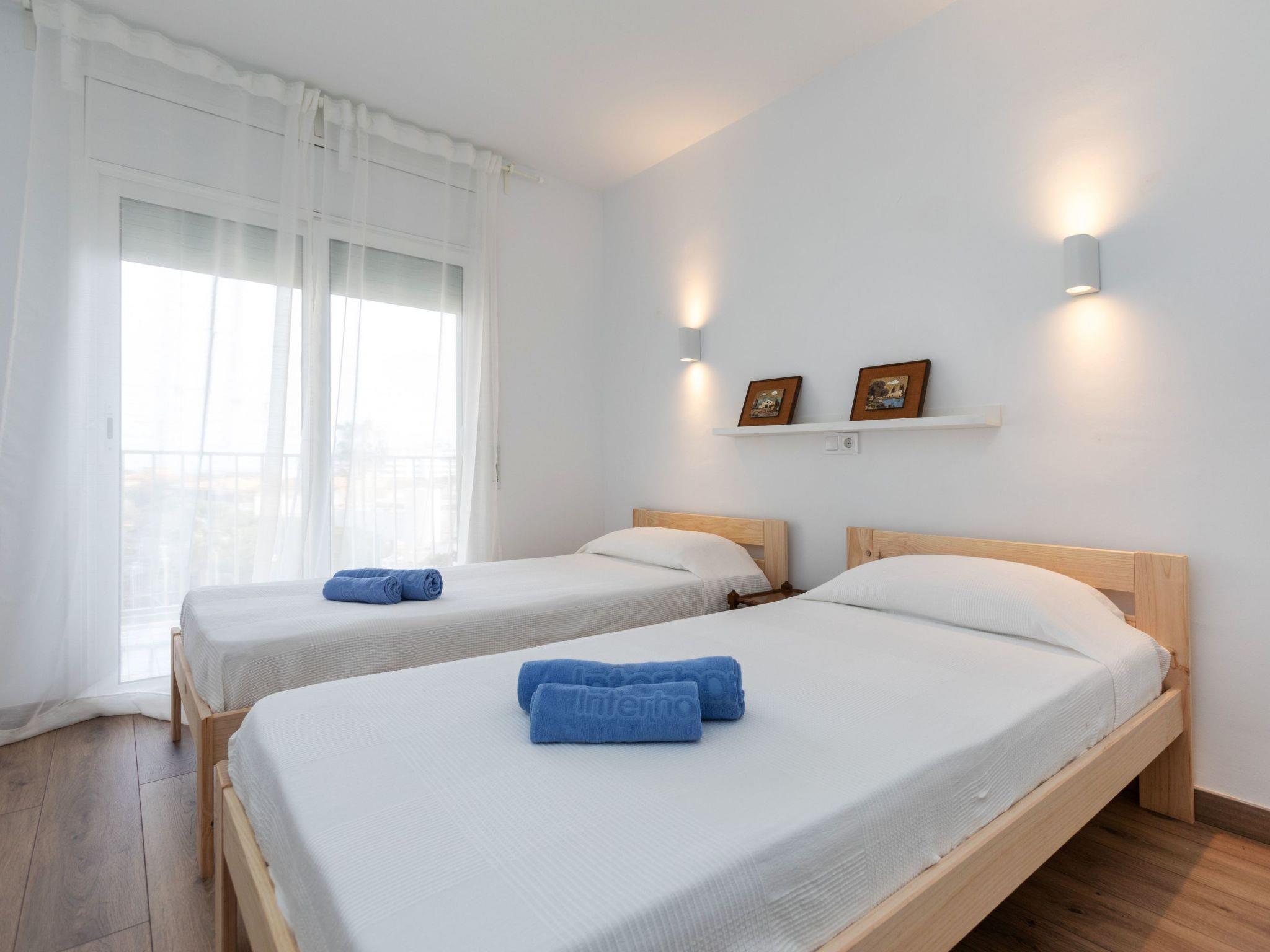3-room apartment 60 m2 on 5th floor. Partly renovated in 2024, practical furnishings: living/dining room with digital TV. Exit to the terrace. 1 room with 1 french bed (150 cm, length 190 cm). Exit to the terrace. 1 room with 2 beds (90 cm, length 190 cm). Exit to the terrace. Kitchen (oven, 3 ceramic glass hob hotplates, toaster, kettle, microwave, electric coffee machine). Exit to the terrace. Shower/WC, sep. WC. No heating option. 2 terraces. Terrace furniture. View of the resort. Facilities: washing machine, iron, children's high chair, baby cot, hair dryer. Internet (WiFi, free). Parking (2 cars). Please note: TV only ES. HUTG-073728-70 // Reg. Nr.: ESFCTU00001701700010209200000000000000HUTG-073728-706