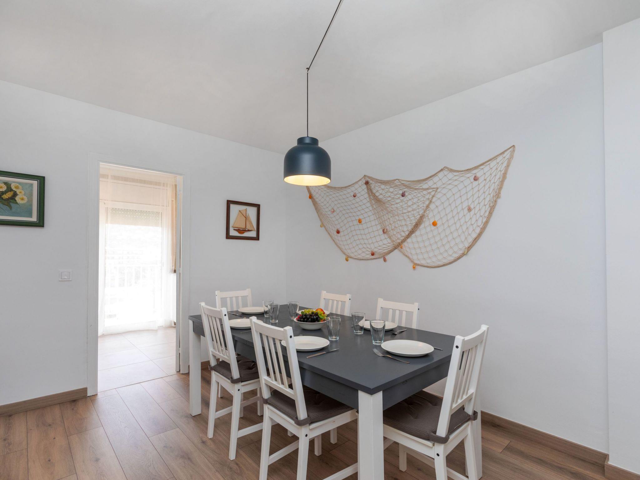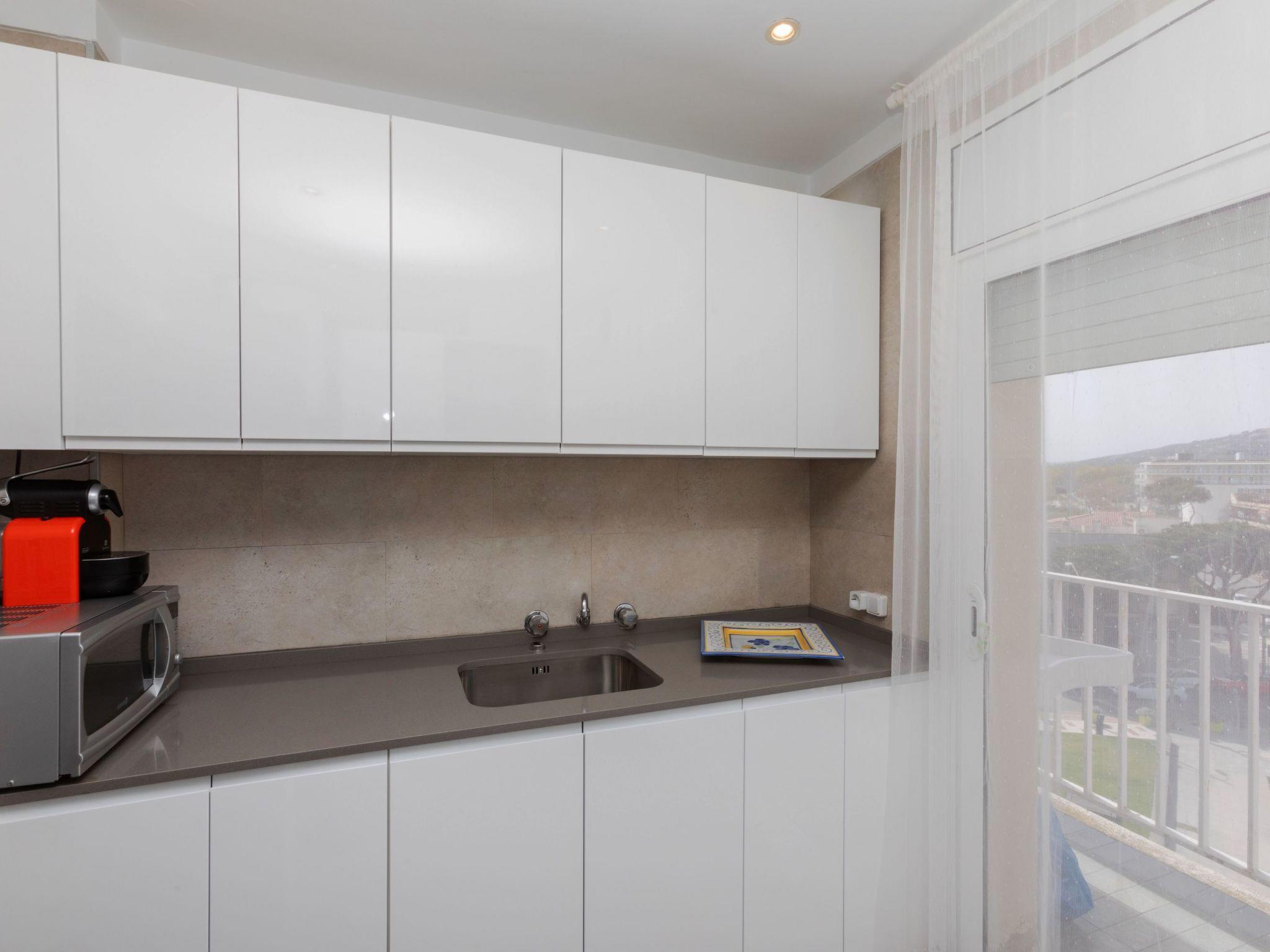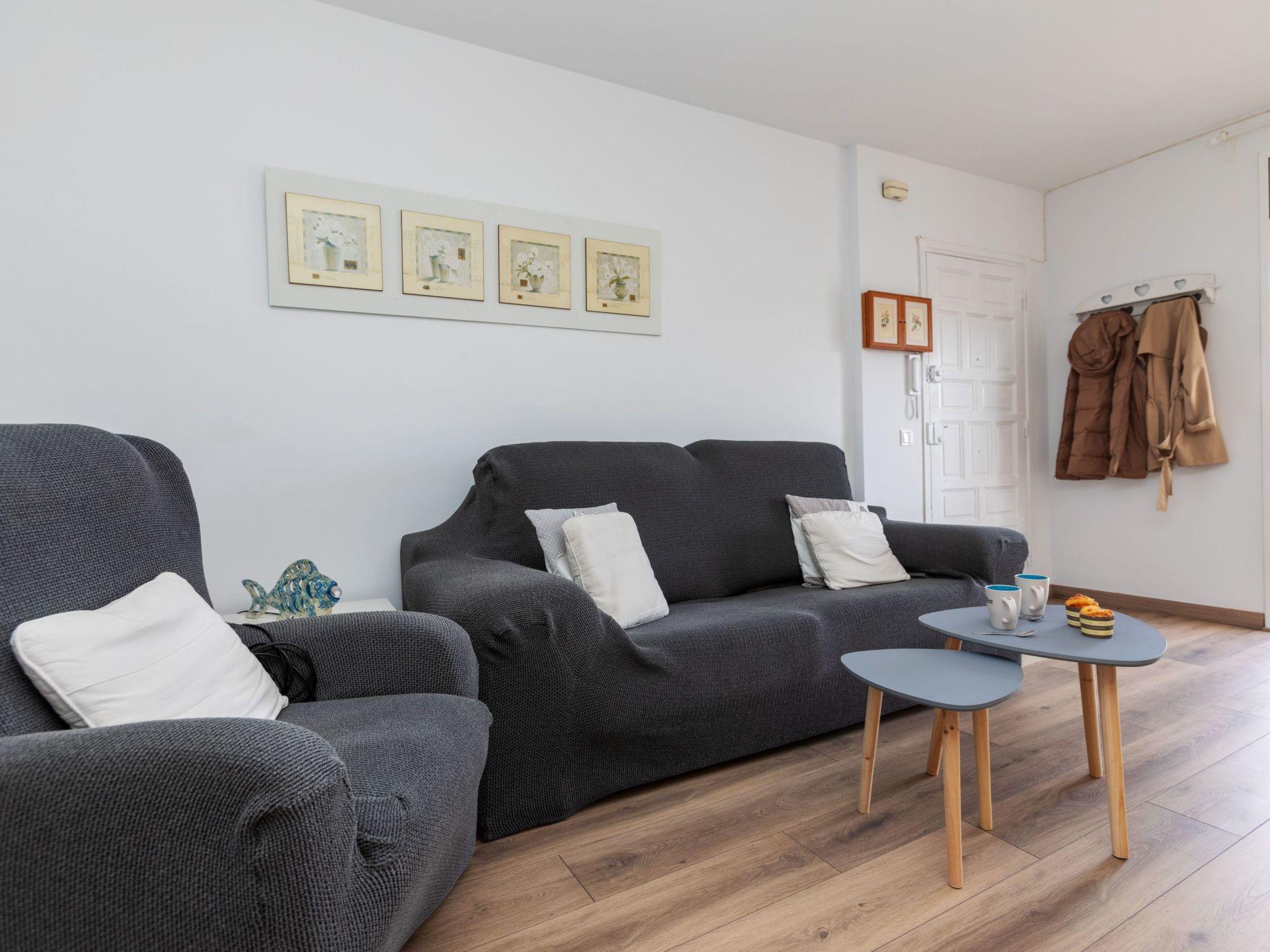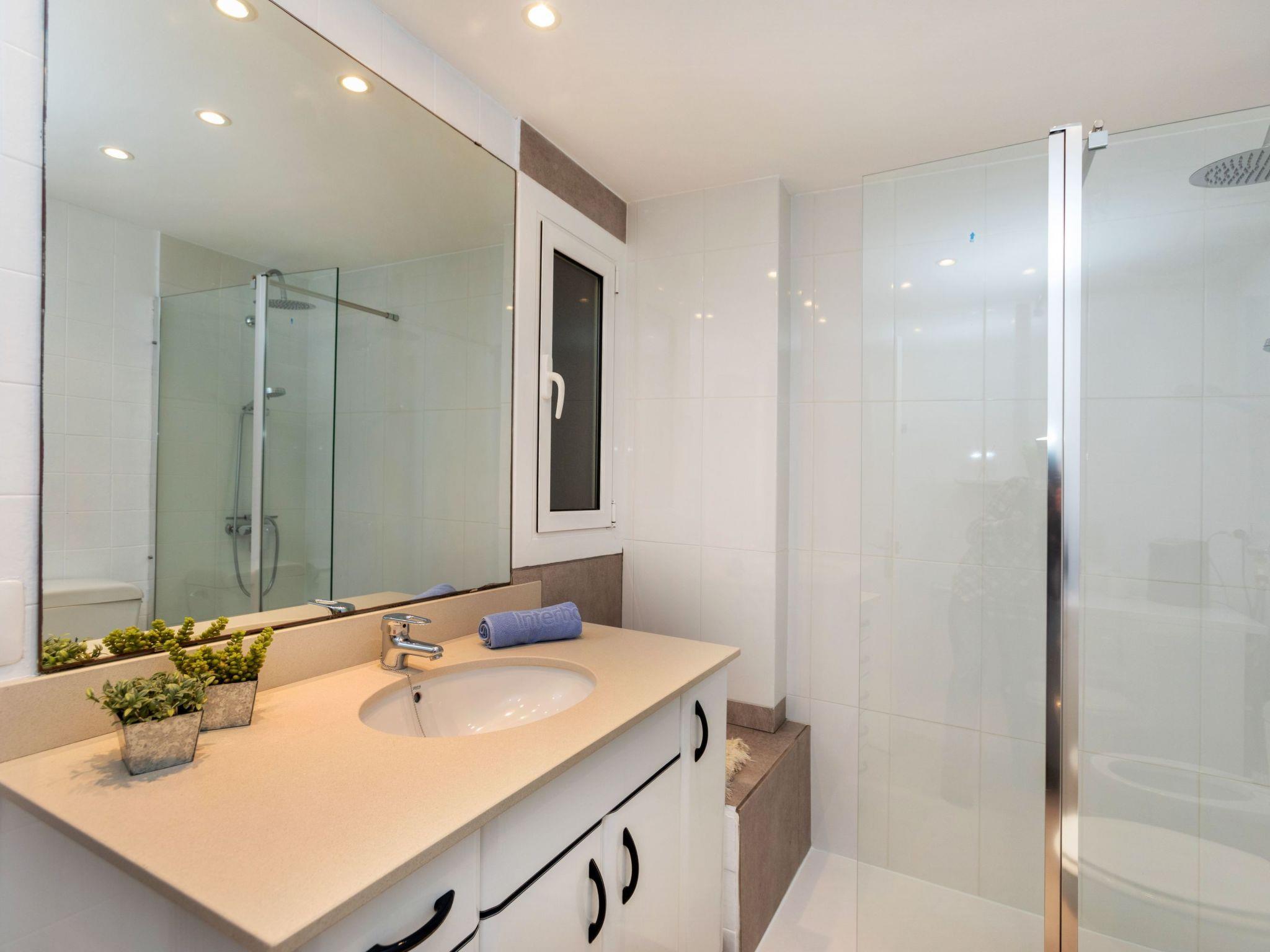 3-room apartment 60 m2 on 5th floor. Partly renovated in 2024, practical furnishings: living/dining room with digital TV. Exit to the terrace. 1 room with 1 french bed (150 cm, length 190 cm). Exit to the terrace. 1 room with 2 beds (90 cm, length 190 cm). Exit to the terrace. Kitchen (oven, 3 ceramic glass hob hotplates, toaster, kettle, microwave, electric coffee machine). Exit to the terrace. Shower/WC, sep. WC. No heating option. 2 terraces. Terrace furniture. View of the resort. Facilities: washing machine, iron, children's high chair, baby cot, hair dryer. Internet (WiFi, free). Parking (2 cars). Please note: TV only ES. HUTG-073728-70 // Reg. Nr.: ESFCTU00001701700010209200000000000000HUTG-073728-706
