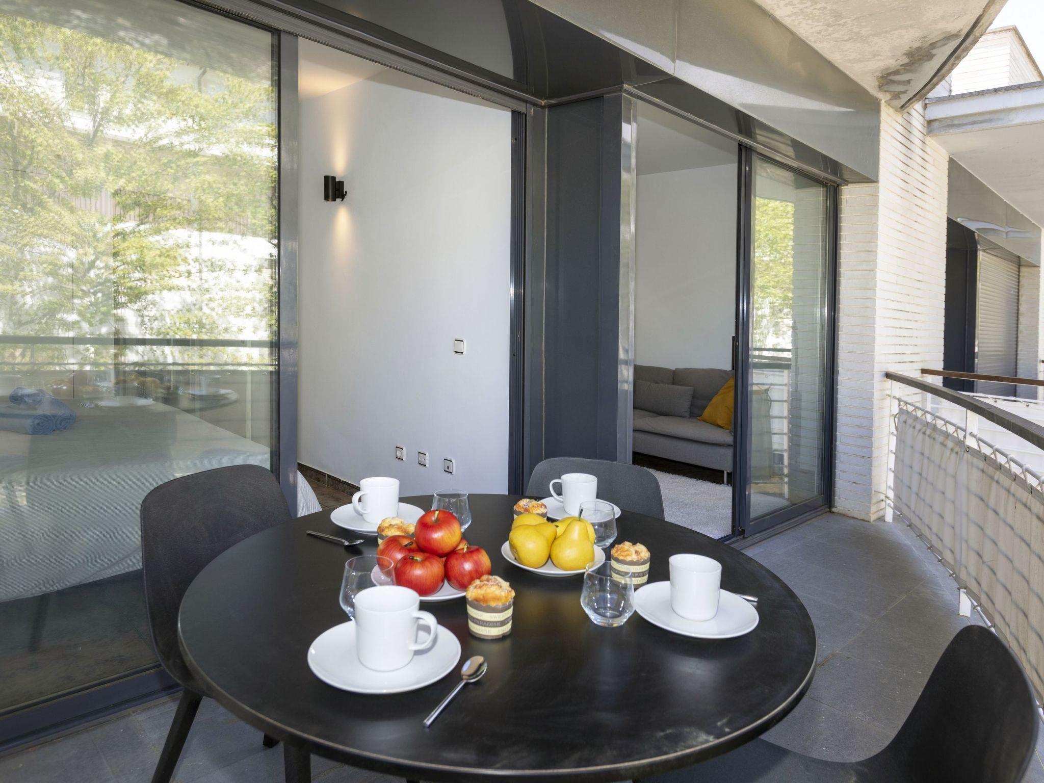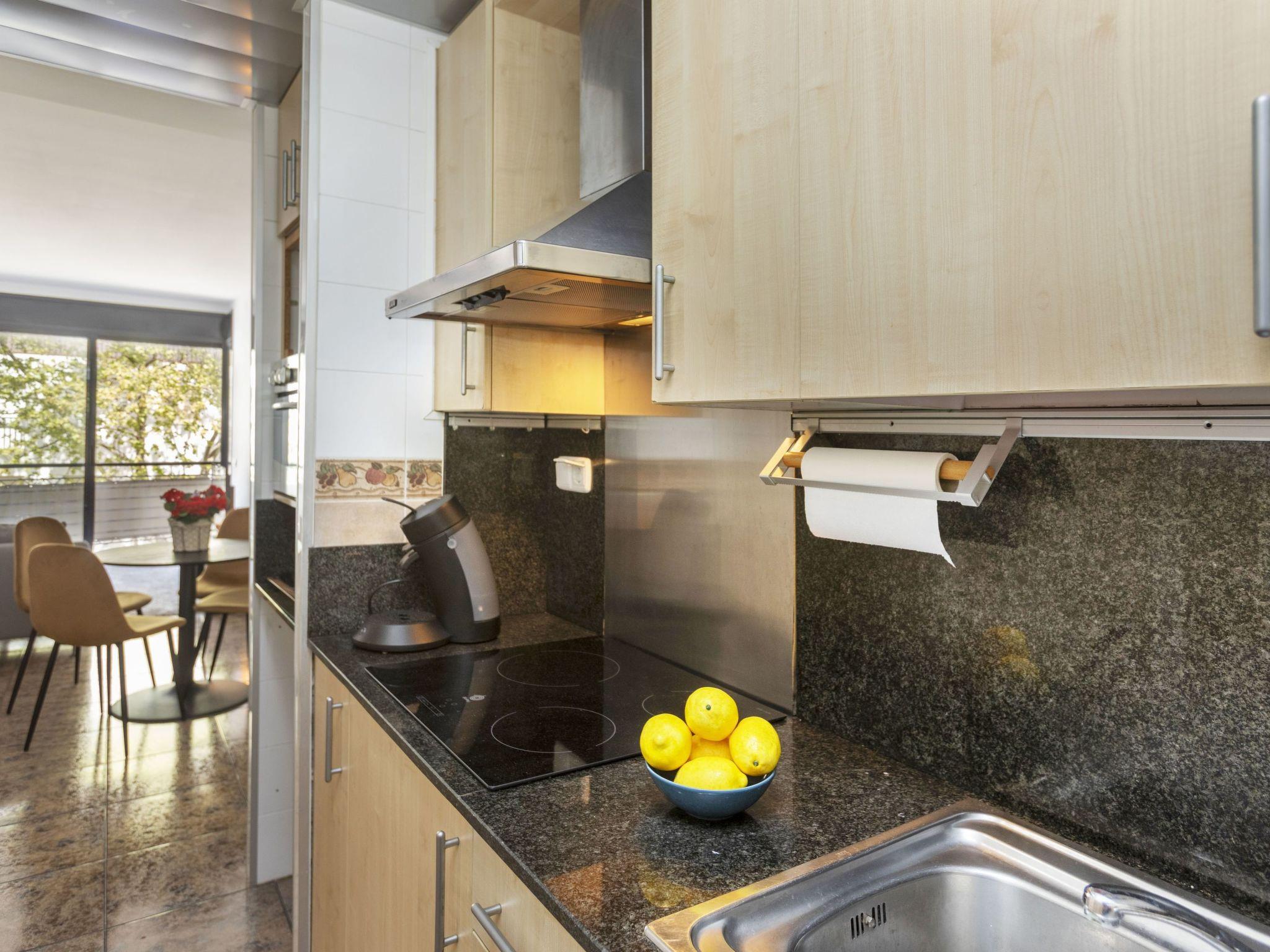 "Mar i Llum", 3-room apartment 57 m2 on 2nd floor. Practical furnishings: living/dining room with digital TV. Exit to the terrace. 1 room with 1 french bed (180 cm, length 200 cm). 1 room with 2 beds (90 cm, length 200 cm). Kitchen (oven, dishwasher, 3 ceramic glass hob hotplates, toaster, kettle, microwave, electric coffee machine). Shower/WC. Air-conditioning, forced-air heating. Terrace. Terrace furniture. Facilities: washing machine, iron, children's high chair, baby cot, hair dryer. Internet (WiFi, free). Please note: non-smokers only. TV only ES. HUTG-071040 // Reg. Nr.: ESFCTU00001701700022626200000000000000000HUTG-0710407
