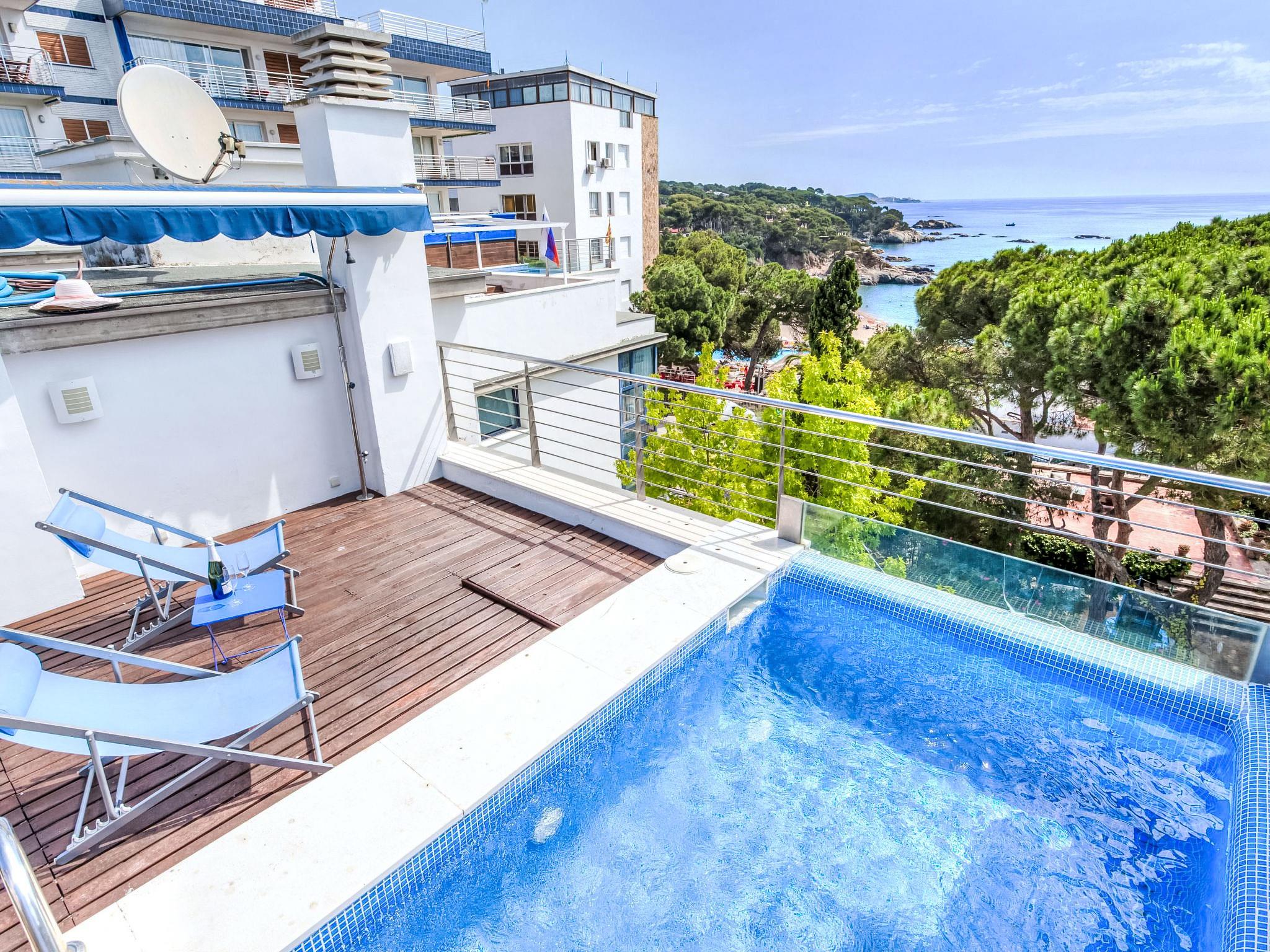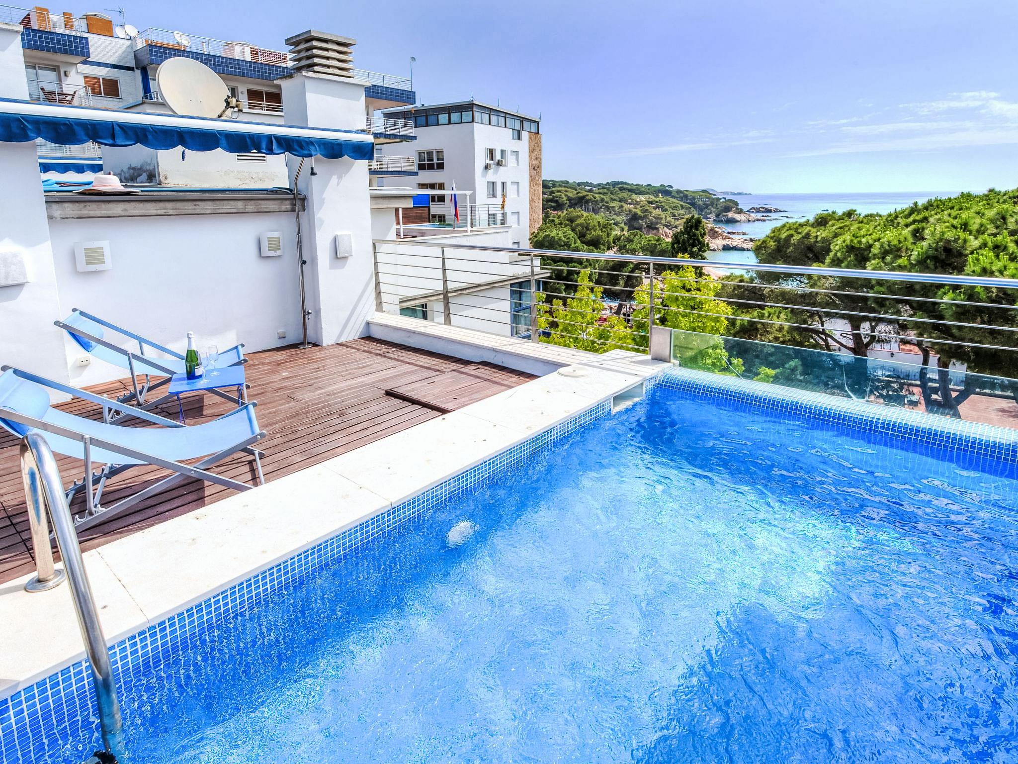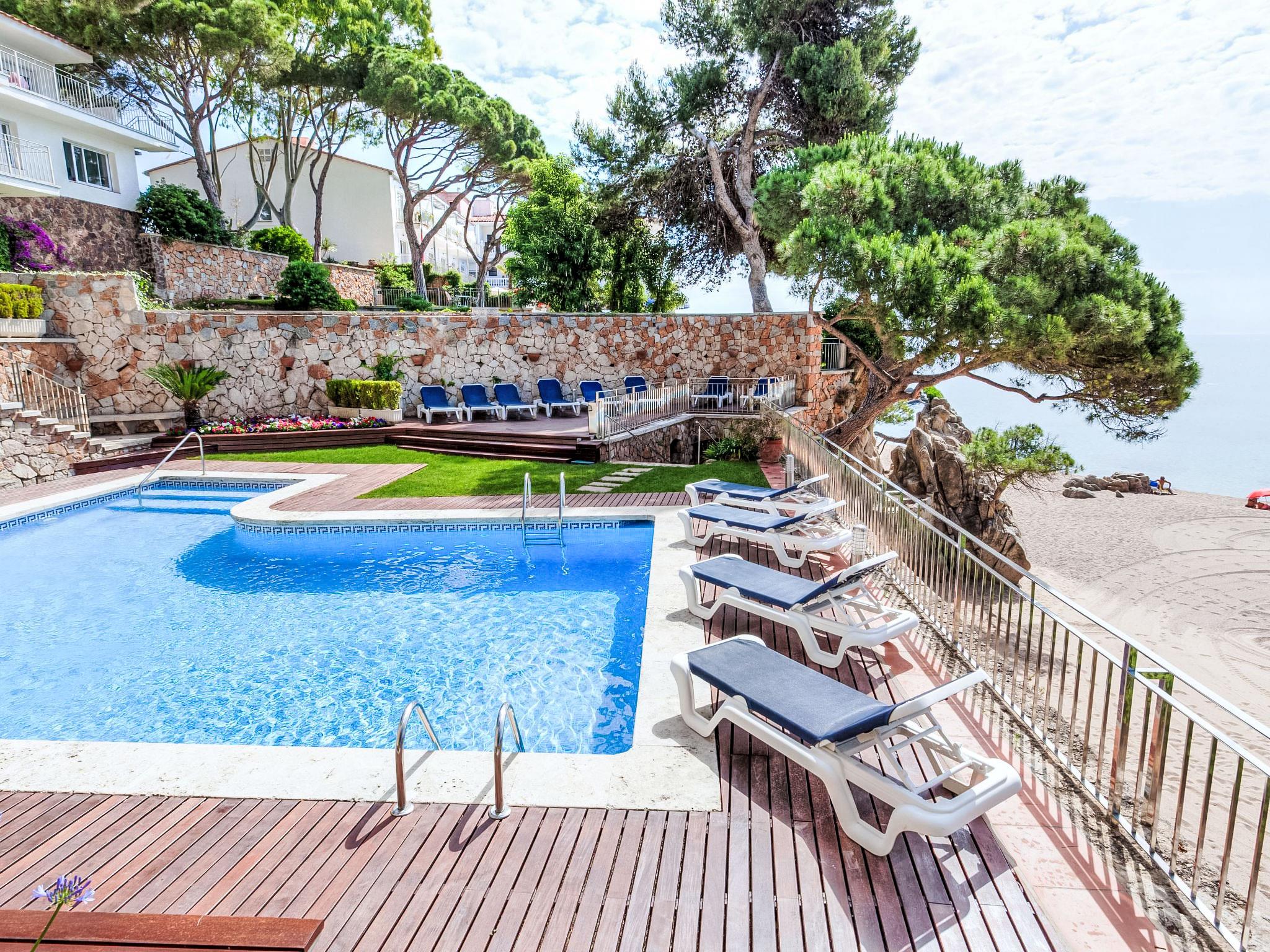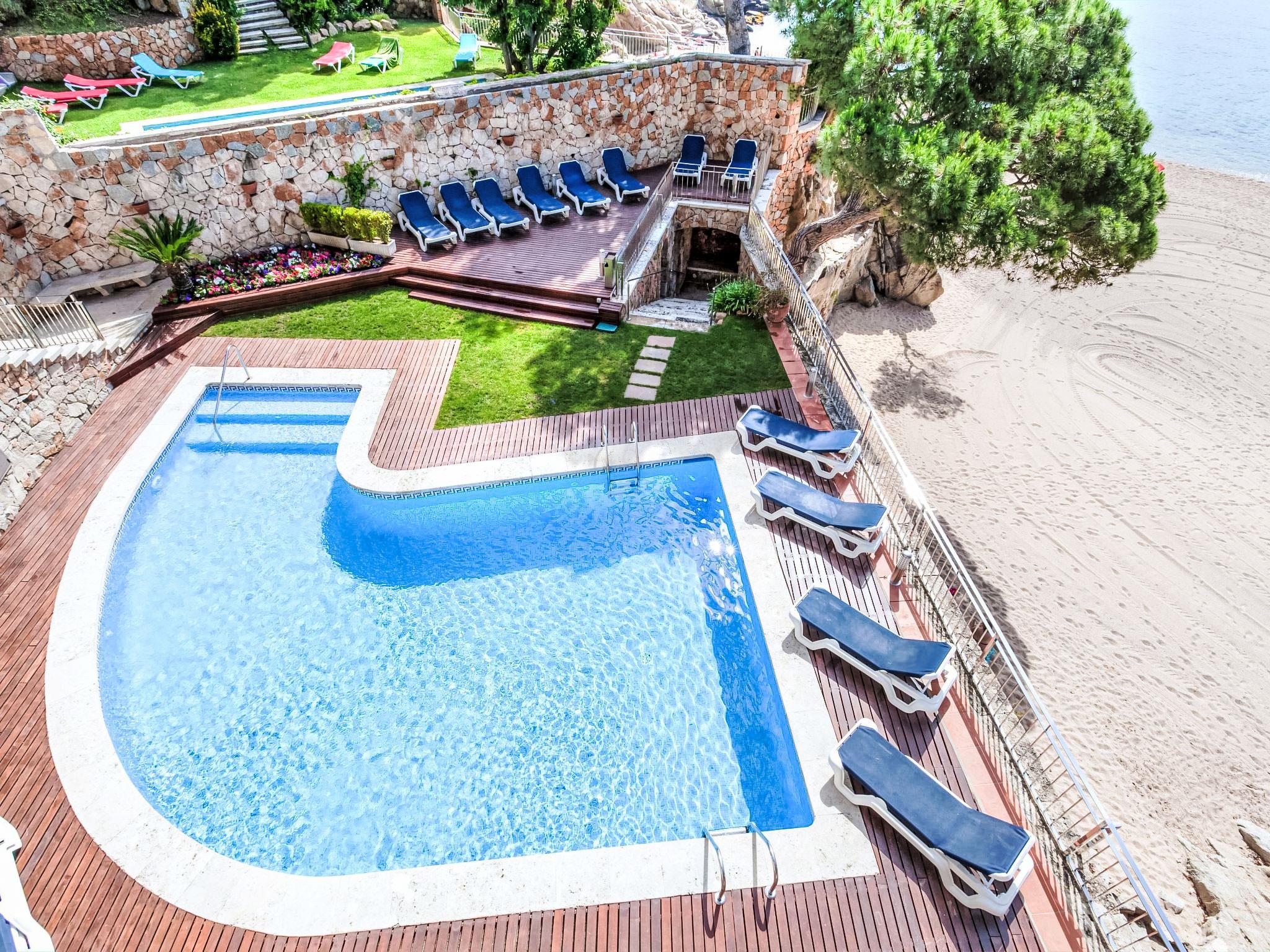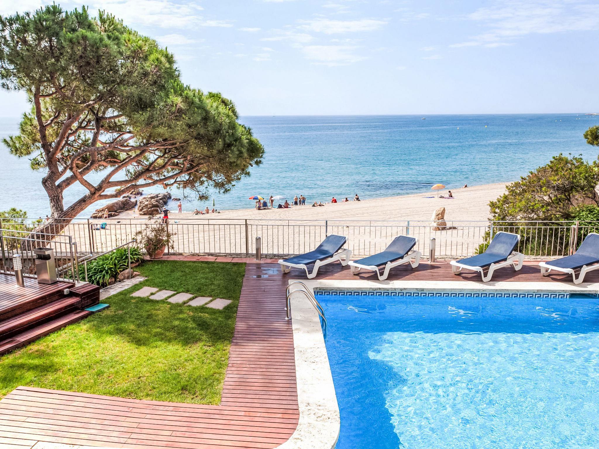 Playa de Aro: Modern terraced house "Crystal". In the resort 200 m from the centre of Platja D'Aro, 20 m from the sea, 20 m from the beach, direct access to the beach. For shared use: garden (fenced). Outdoor shower, terrace, garden furniture. Private: swimming pool angular (3 x 5 m, seasonal availability: 01.May. - 30.Oct.). Terrace, parking space n 1. Supermarket 500 m, restaurant 300 m, bus stop 500 m, sandy beach "Platja d'Aro" 30 m. Sports harbour 2 km, golf course (18 hole) 3 km, tennis 2 km, riding stable 5 km. Nearby attractions: Waterpark Aquadiver 2 km. The owner does not accept any youth groups.