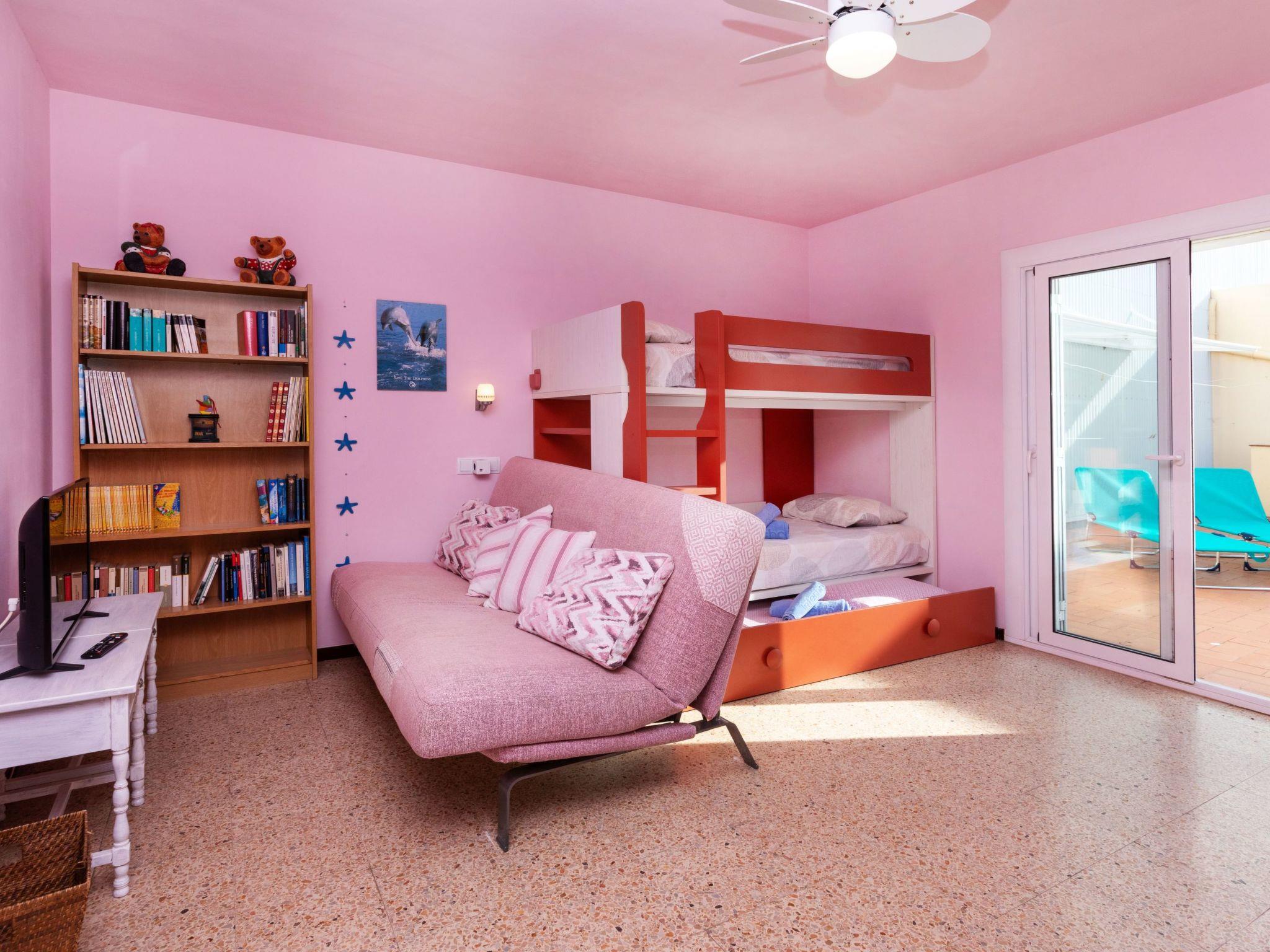 5-room house 180 m2 on 2 levels. Practical furnishings: living/dining room with digital TV. 1 room with 1 x 2 bunk beds (90 cm, length 190 cm), 1 french bed (1 x 150 cm, length 190 cm), shower/WC and fan. Exit to the terrace. Kitchen (4 hot plates, oven, dishwasher, toaster, kettle, electric coffee machine). Exit to the terrace. Gas heating. Upper floor: 1 room with 1 french bed (150 cm, length 190 cm), fan. Exit to the terrace. 1 room with 1 x 3 bunk beds (90 cm, length 190 cm), fan. Exit to the terrace. 1 children's room, without wardrobe with 1 bed (80 cm, length 180 cm). Shower/WC. Terrace. Terrace furniture. View of the resort. Facilities: washing machine, iron, children's high chair, baby cot for up to 2 year olds, hair dryer. Internet (WiFi, free). Parking (2 cars). Please note: suitable for families. Non-smoking house. TV only ES. HUTG-057487 // Reg. Nr.: ESFCTU00001701700063208700000000000000000HUTG-0574876