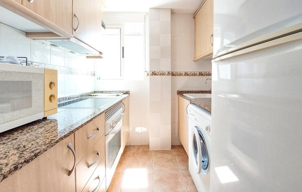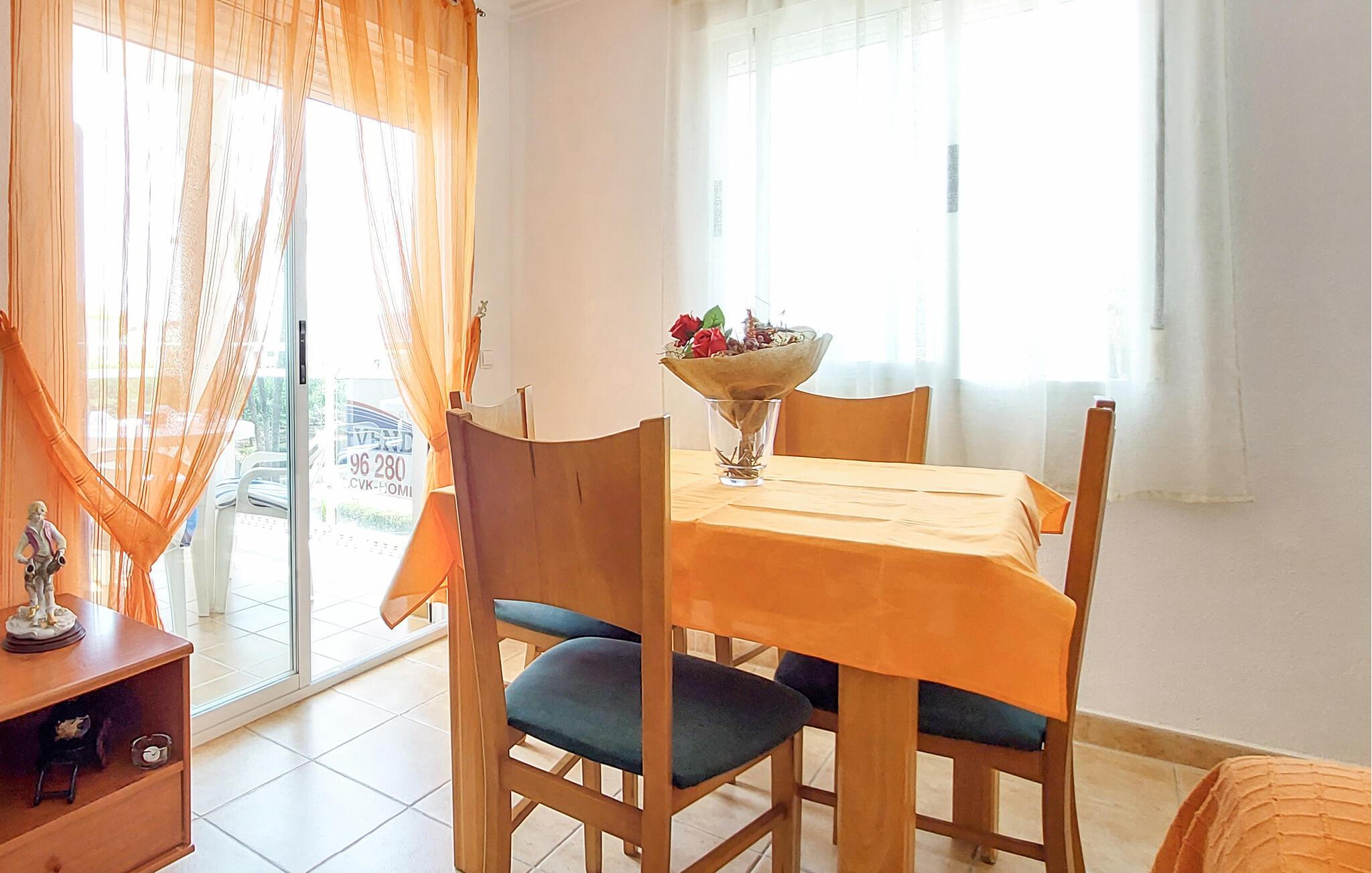 I finder denne indbydende ferielejlighed i kommunen Playa de Bellreguard på Costa del Azahar syd for Valencia. De funktionelt indrettede værelser gør et lyst indtryk og giver plads til jer og jeres kære. Udnyt køkkenet og tilbring hyggelige aftener omkring spisebordet i stuen.