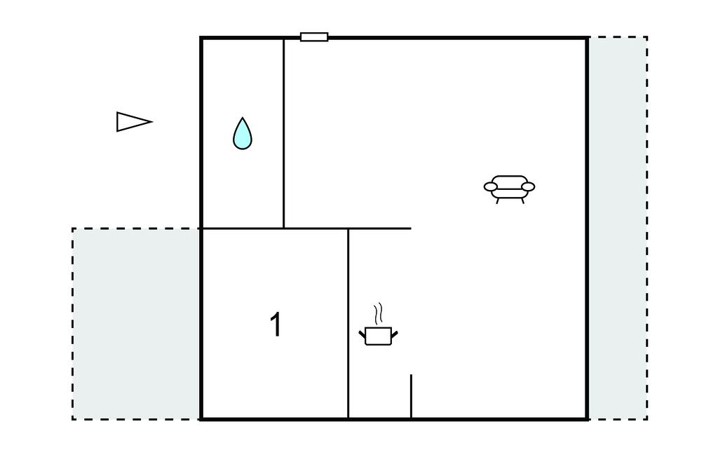 Opholdsstue 15m2 - 1 Soveplads. (Sofa, madras eller lignende).