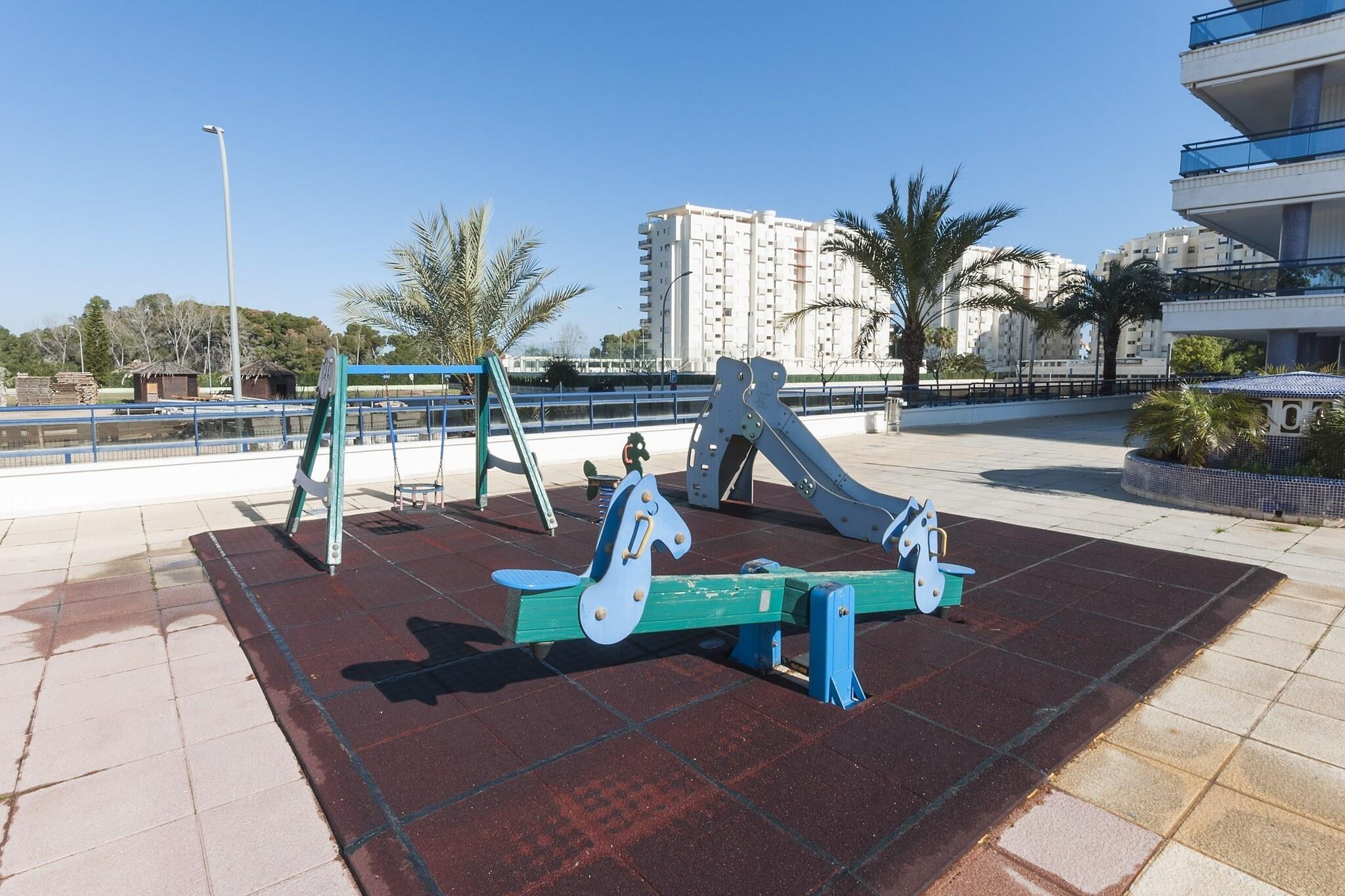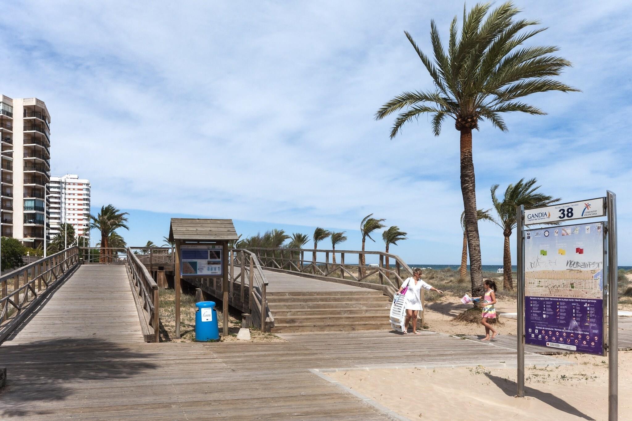 Levende udendørsliv Denne bolig ved havet er en drøm for både solelskere og kæledyrsejere. Kun 600 m fra Playa de Gandia byder det på adskillige saltvandsbassiner, herunder en udendørs pool på 24 m i diameter og en opvarmet pool, sammen med en børnepool, tennis- og paddlebaner, et fitnesscenter og et grillområde. De græsplænede haver giver plads til at solbade, lege med kæledyr eller nyde udendørs måltider under middelhavssolen. Hver funktion ved ejendommen tilskynder til aktiv sjov og afslapning for hele familien - inklusive dine pelsede venner. Stilfuld interiørkomfort Indenfor har den moderne lejlighed en terrasse med udsigt over bjergene, ideel til morgenmad eller aftenkaffe. Den airconditionerede stue/spisestue inviterer til afslapning på sofaen med et Smart TV eller DVD, mens det fuldt udstyrede køkken og tilstødende vaskerum gør dagliglivet let. To soveværelser giver afslappende søvn - et med en dobbeltseng og et med en køjeseng og enkeltseng - plus to badeværelser, en barneseng og en høj stol. Rummet balancerer komfort og funktionalitet for familier, par og kæledyr. Førsteklasses kystbeliggenhed Playa de Gandia er en kort gåtur væk, med fint hvidt sand, rent vand og lokale spisesteder. Udforsk Platja del Nord eller Platja de l'Ahuir, besøg søndagsmarkedet, eller oplev natursteder som Ullal de l'Estany. Golfentusiaster kan nå Club Golf Gandia på 5 km, mens Valencia og Denia er inden for rækkevidde. Kæledyrsvenlige strande og vandrestier i nærheden sikrer, at dine kæledyr også nyder ferien.