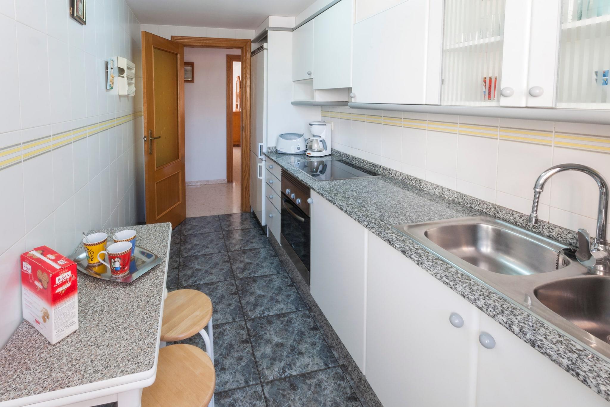Der er en fælles, 15m x 10m klorpool med en dybde fra 1,5m til 2,2m og en børnepool (dybde: 0,6m). Hvis du er tilbageholdende med at opgive din daglige sportsrutine, mens du er på ferie, kan du bruge den fælles tennisbane (medbring venligst dit eget udstyr). Lejligheden ligger på fjerde sal med elevator og tæller med en 6m2 stor terrasse med udsigt over gaden og urbaniseringen. Den pæne lejlighed har en opholds-spisestue med TV (lokale kanaler), et køkken med vitro kogeplade og et par køkkenredskaber, en vaskemaskine, strygejern og strygebræt og et badekar med badekar. Du kan vælge mellem tre soveværelser, to med to enkeltsenge og et soveværelse med dobbeltseng med eget bad med badekar. En barneseng og en høj stol er tilgængelige efter anmodning. To elradiatorer og tre blæsere fuldender udstyret. Det ligger kun et minuts gang fra den tynde sandstrand, Playa de Gandía, hvor du kan leje hængekøjer og parasoller, spille beachvolley, øve vandhavne eller gå en dejlig tur ved havet og havnen, som er fuld af barer, restauranter og is creme butikker. Så stranden byder på en bred vifte af aktiviteter for enhver smag, afhængigt af hvad du har lyst til at lave, siden hvile i solen for at være mere aktiv og dyrke sport. Du kan også besøge Gandías gamle bydel, som ikke kun har fremragende restauranter, men også en dejlig historisk historie at fortælle. Du kan opdage mere om denne bys fortid og besøge vigtige og smukke monumenter, såsom hertugpaladset, den hyggelige by Council eller Santa Claras kloster. Som reaktion på Coronavirus (COVID-19) er yderligere sikkerheds- og sanitære foranstaltninger i kraft på denne ejendom. Turistlicens: AT-40569-V