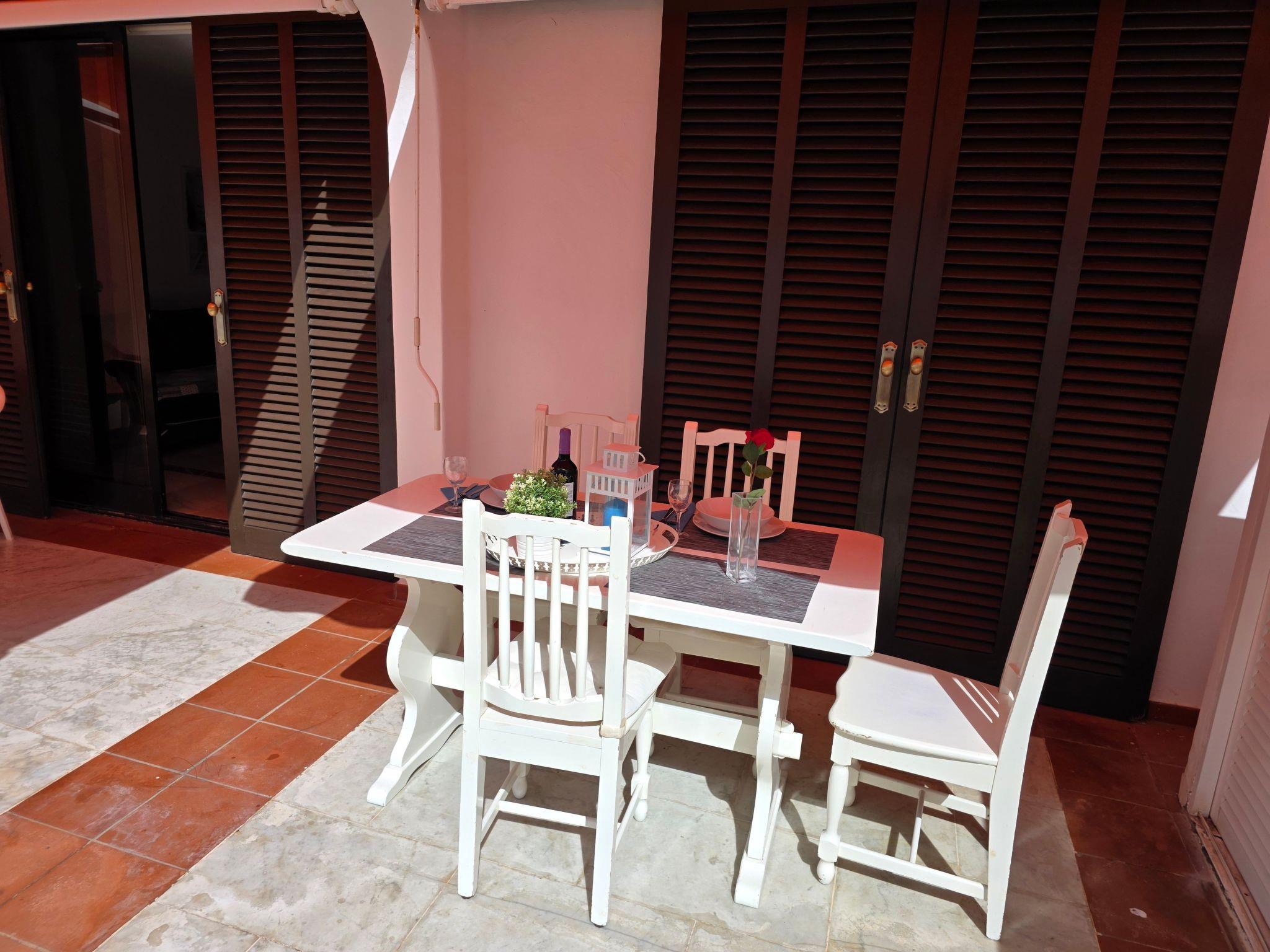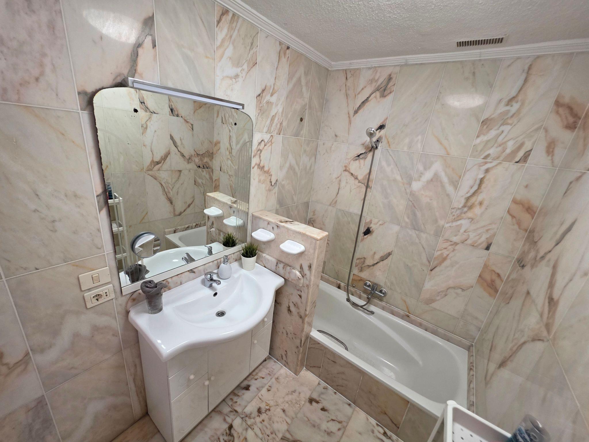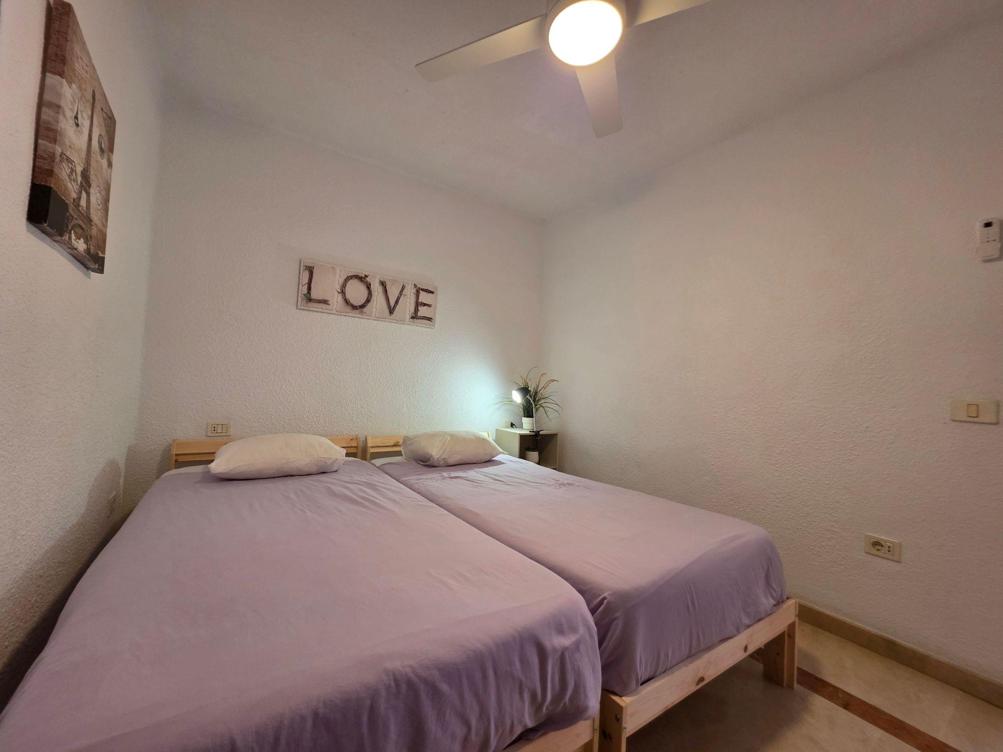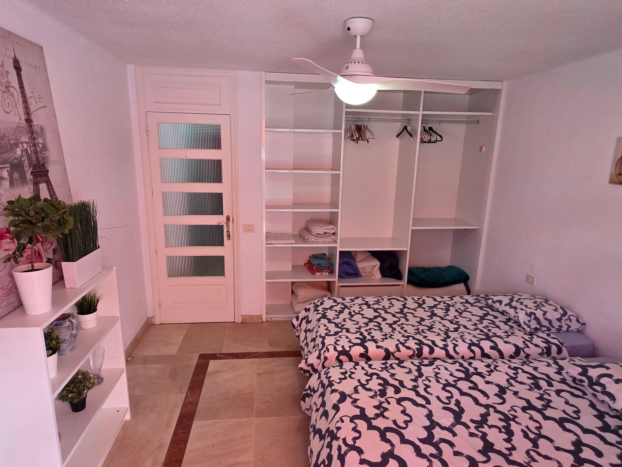 The Casa Teide flat is located in the very well-maintained Parque Santiago 1 complex right by the sea and the beautiful beach of Las Americas. The pool is heated in winter and is just a few steps from the flat. All shops, restaurants, hairdressing salons, banks and cash machines are within easy walking distance. Also within the complex there is a supermarket and some shops, car hire, restaurants. The property has two bedrooms. The highlight is the large terrace with sun loungers and seating area as well as a small private garden. The cosy living area has a living room sofa and a dining room corner, which is directly adjacent to the kitchen. In the living room there is a flat-screen TV with satellite programmes and a small stereo system. The kitchen is equipped with a ceramic hob, oven, fridge and freezer, microwave, toaster, kettle and coffee machine. There is also a washing machine with iron and ironing board.the flat is ideal for a beach holiday and is also ideal for a long-term holiday. The complex has a very nice pool area. The pool is heated in the winter months. The sun loungers by the pool are available for a fee. There is also a bistro by the pool for snacks and ice creams (for a fee).
