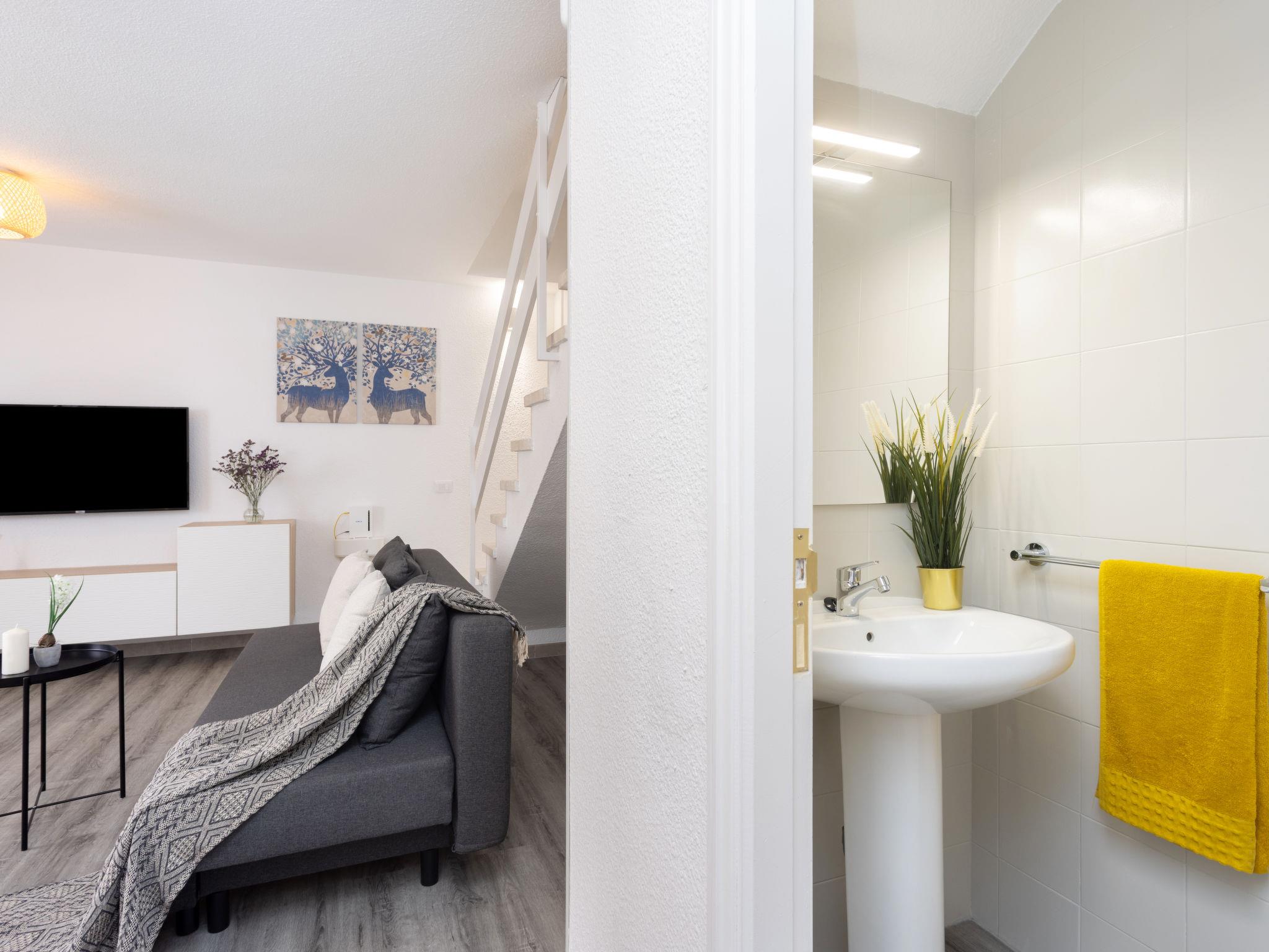 3-room apartment 80 m2 on 2 levels. Renovated in 2023, comfortable and modern furnishings: living/dining room with 1 sofabed (130 cm, length 190 cm), digital TV. Exit to the terrace. Open kitchen (oven, toaster, kettle, microwave, electric coffee machine, Capsules for coffee machine (Dolce Gusto,not.incl)). Sep. WC. Upper floor: 1 room with 1 double bed (150 cm, length 190 cm), hydro massage bath and digital TV. 1 room with 2 beds (90 cm, length 190 cm). Shower/WC. Terrace. Terrace furniture. No view. Facilities: washing machine, iron, children's high chair, baby cot, hair dryer. Internet (WiFi). Please note: non-smoking house. No lift. VV-38-4-0098199 // Reg. Nr.: ESFCTU0000380160000812700000000000000VV-38-4-00981990