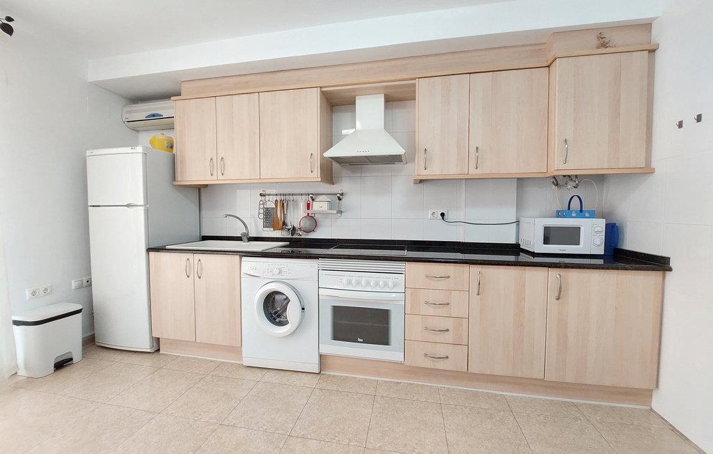 Den indbydende ferielejlighed er det optimale sted for en afslappende ferie, hvor sol og strandsjov ikke forsømmes. Med sin funktionelle indretning og lyse lokaler gør det det nemt for jer at slappe af her fra dag ét. Glæd jer til hyggelige aftener sammen efter jeres udflugter i området. Lav lækre feriemåltider og sæt jer sammen ved spisebordet længe, ??tag måske dagens måltider udenfor, på den overdækkede terrasse kan I nyde de milde sommeraftener særligt godt.