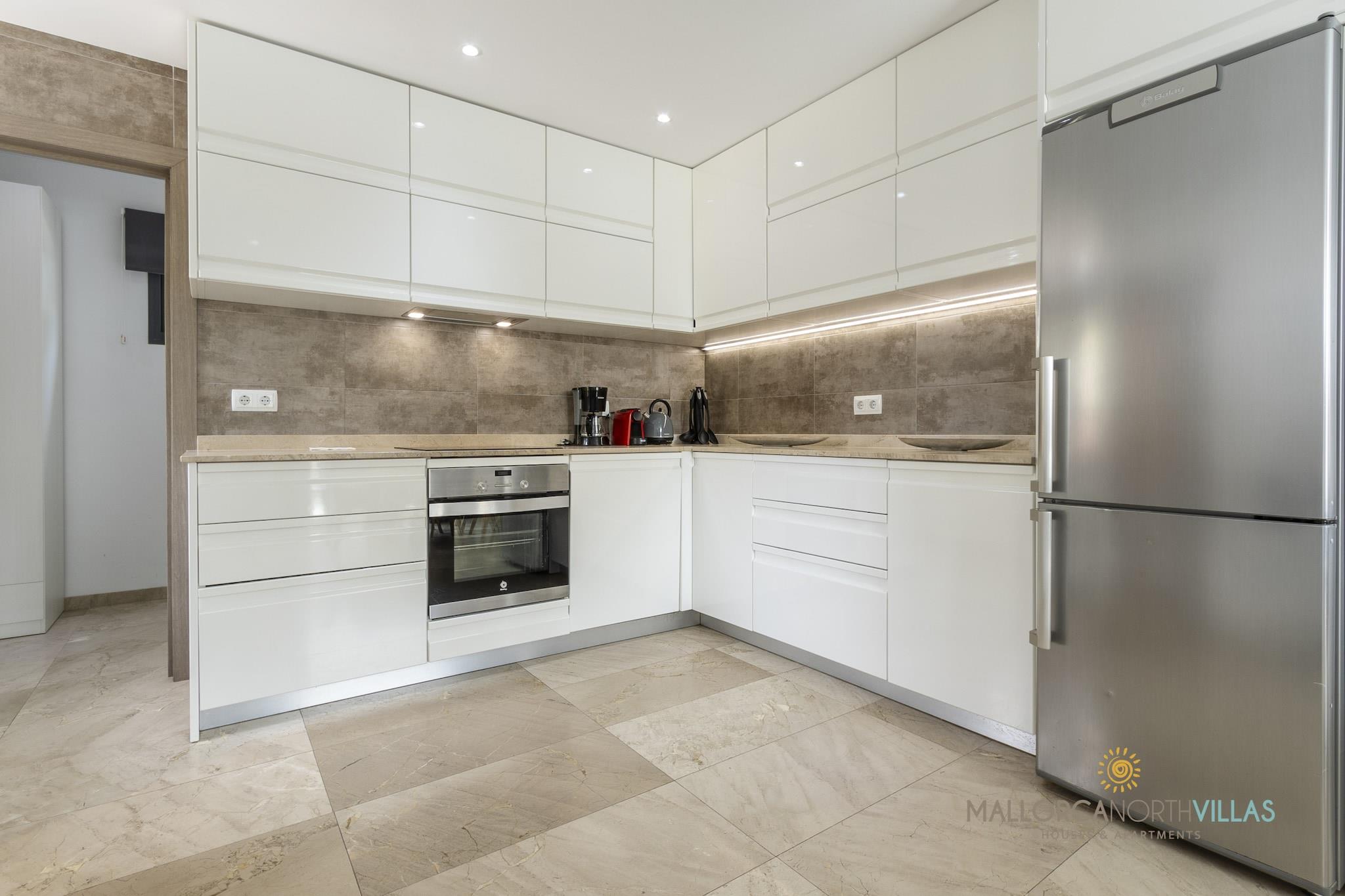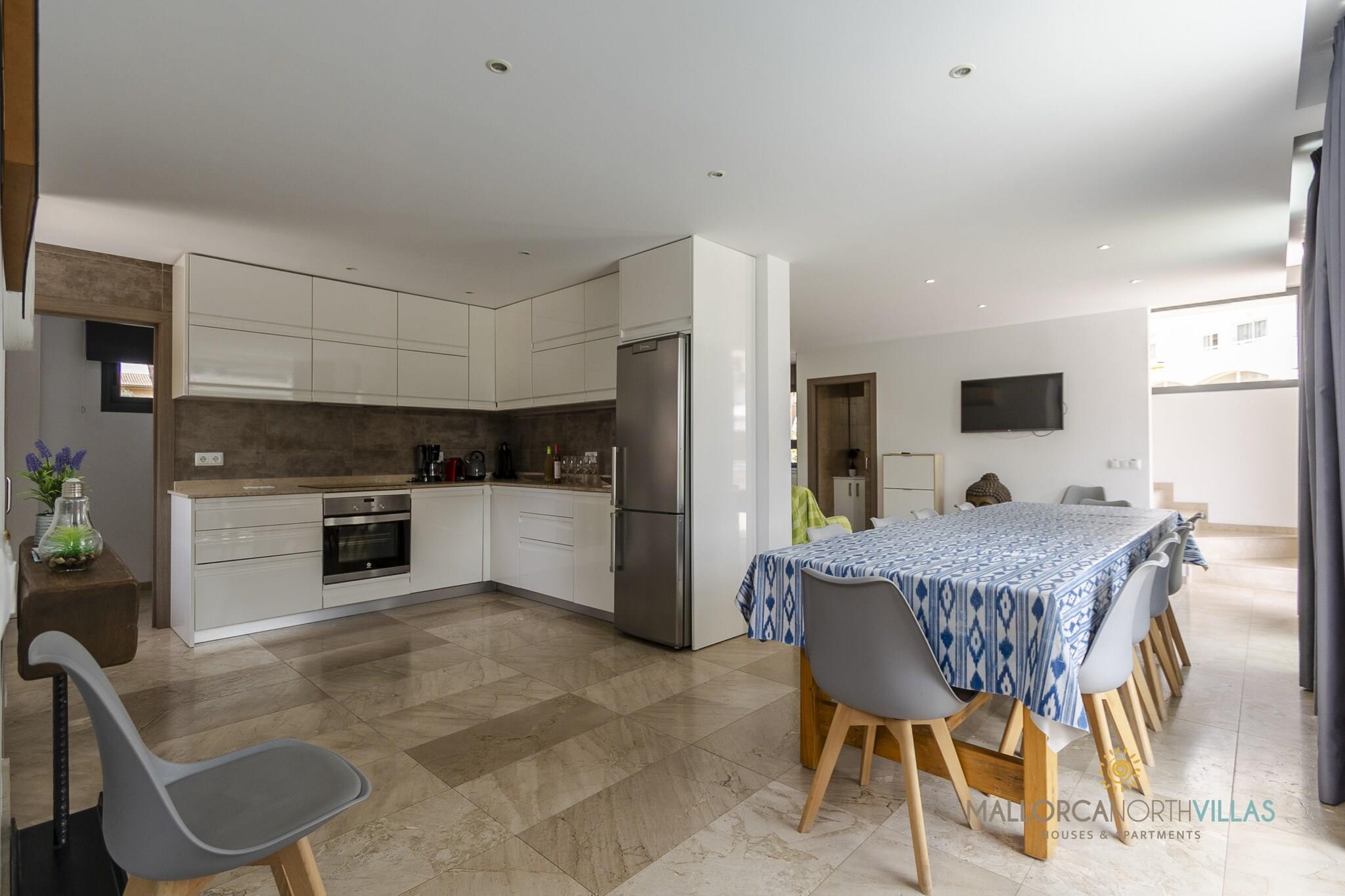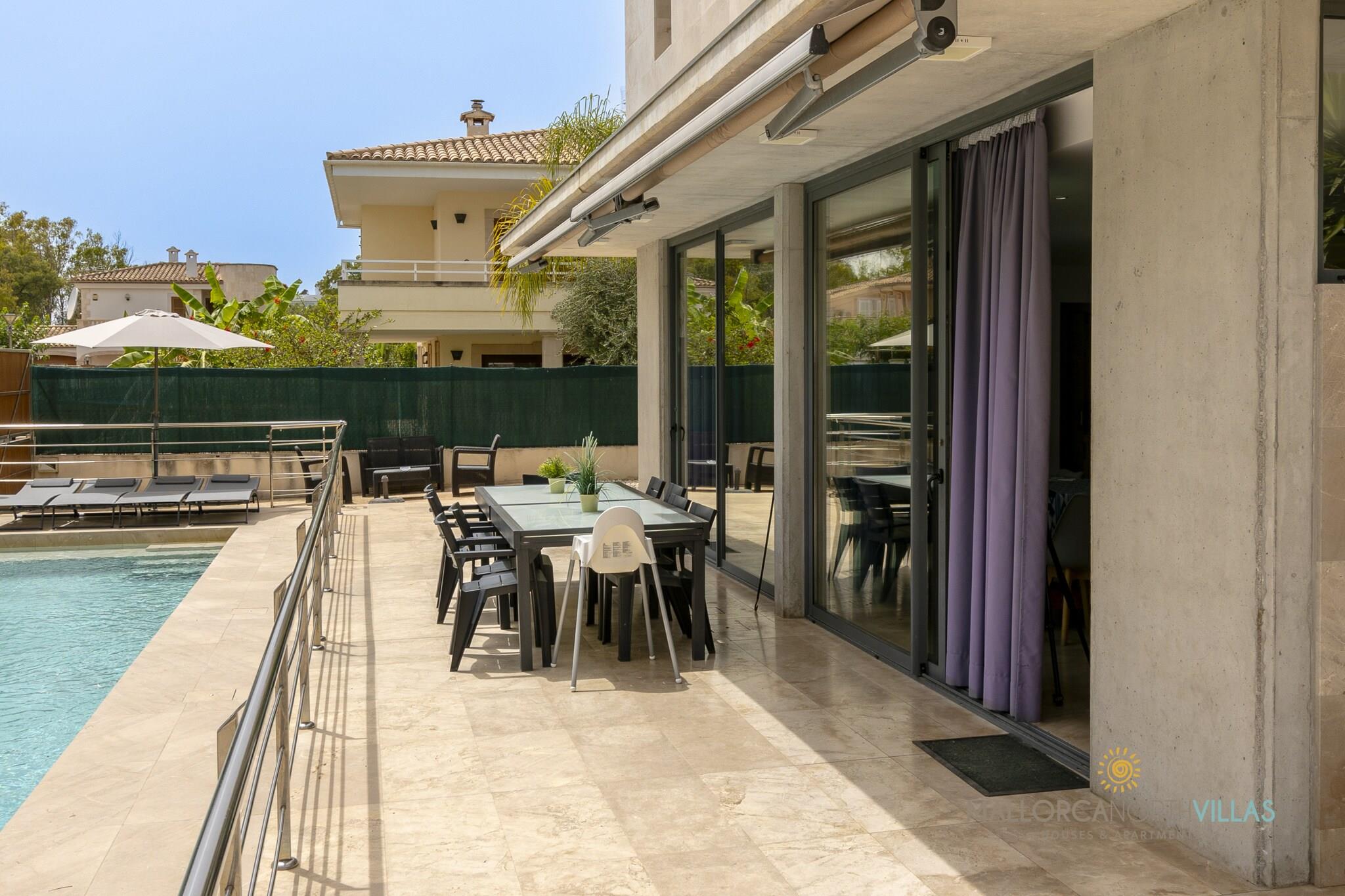Denne fantastiske og moderne villa tilbyder 6 rummelige soveværelser, der kan rumme op til 12 gæster inden for 600 m² af smagfuldt møbleret boligareal. Villaen er perfekt designet til store familier eller grupper og har en privat swimmingpool, en frodig have med udendørsmøbler og en indhegnet grund for ekstra privatliv. Gæsterne kan nyde et legeområde, en grill, en terrasse til udendørs spisning og moderne bekvemmeligheder såsom aircondition, Wi-Fi, en vaskemaskine og en værdiboks. Med sit familievenlige design og rigelige plads sikrer denne villa et afslappende og behageligt ophold. Ejendommen er ideelt beliggende kun 150 meter fra det uberørte sand i Playas de Muro, der tilbyder nem adgang til en af ??Mallorcas smukkeste strande. Dens førsteklasses beliggenhed ved siden af ??havet gør den perfekt for dem, der søger en solbeskinnet ferie. Villaen ligger i en børnevenlig zone, hvilket gør den til et ideelt tilflugtssted for familier. Nærliggende attraktioner, charmerende caféer og lokale restauranter er let tilgængelige, hvilket giver gæsterne mulighed for at udforske det bedste af Playa de Muro og dets omgivelser. Det åbne køkken er udstyret med moderne bekvemmeligheder, herunder en glaskeramisk kogeplade, køleskab, mikroovn, ovn, fryser og opvaskemaskine. Den har også vigtige apparater som en kaffemaskine, brødrister, kedel og juicer, hvilket sikrer, at måltidstilberedningen er en leg. Uanset om du slapper af ved poolen, spiser på terrassen eller nyder den nærliggende strand, giver denne villa de perfekte rammer for en uforglemmelig ferie ved havet.
