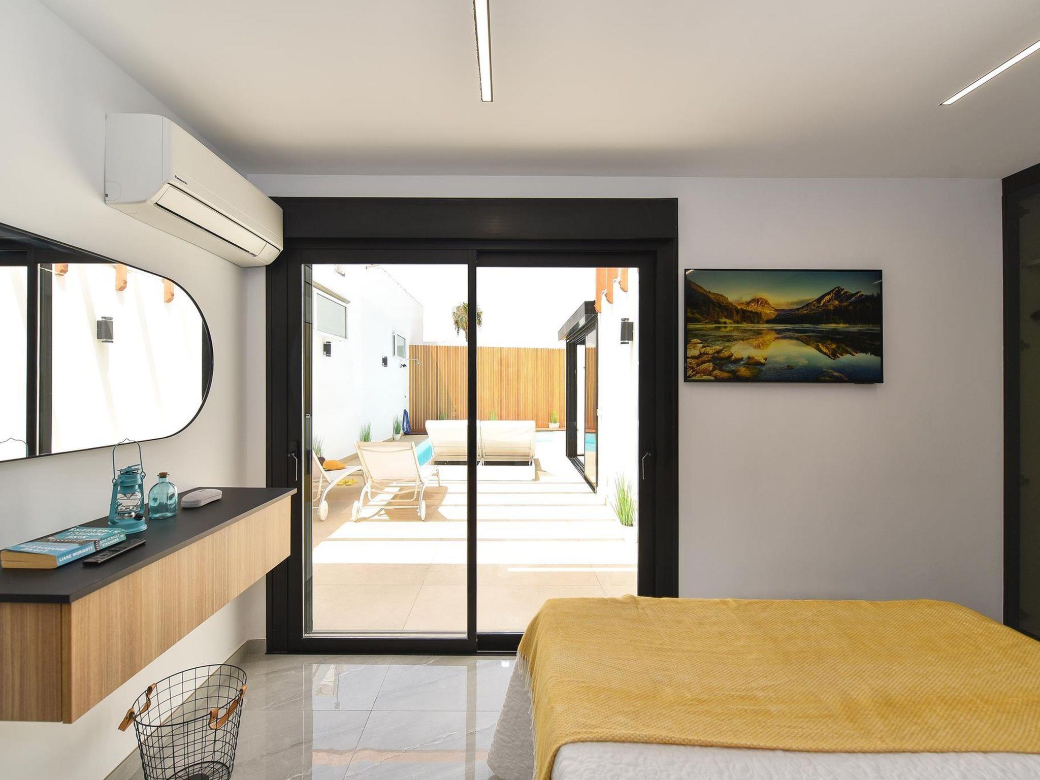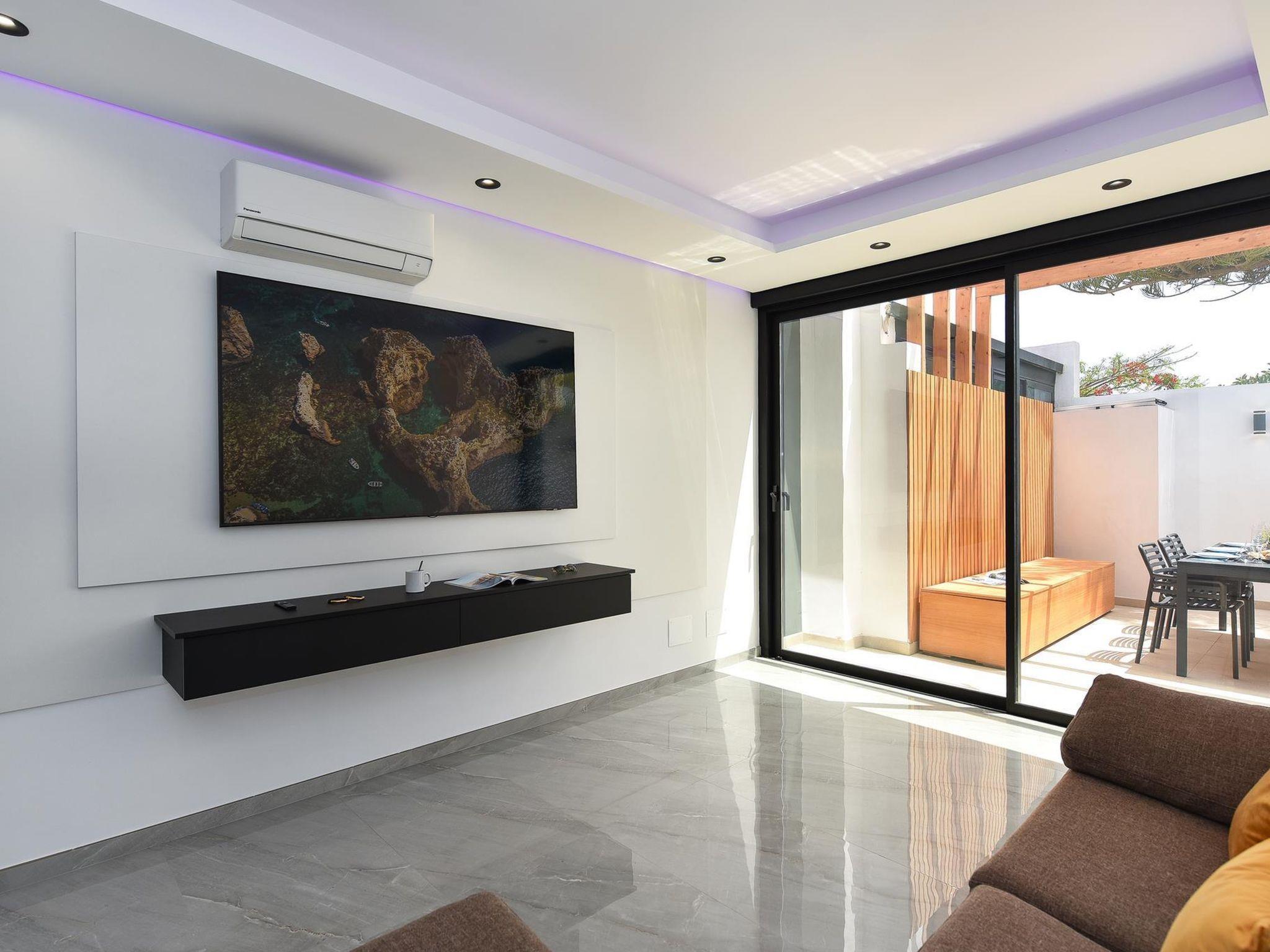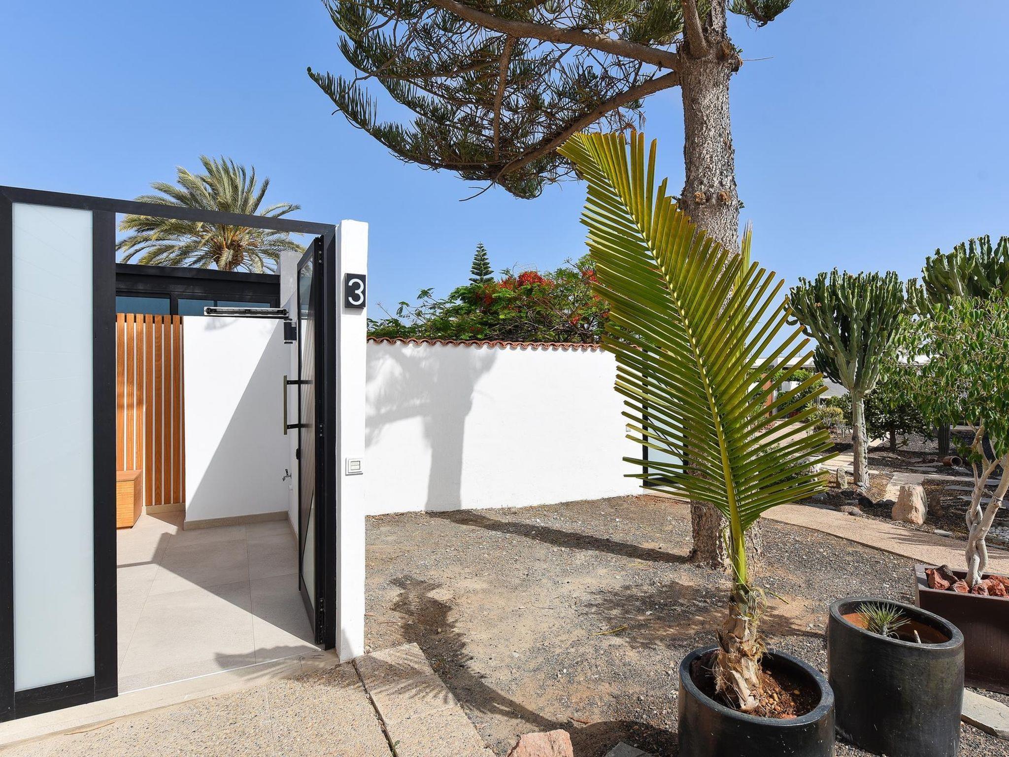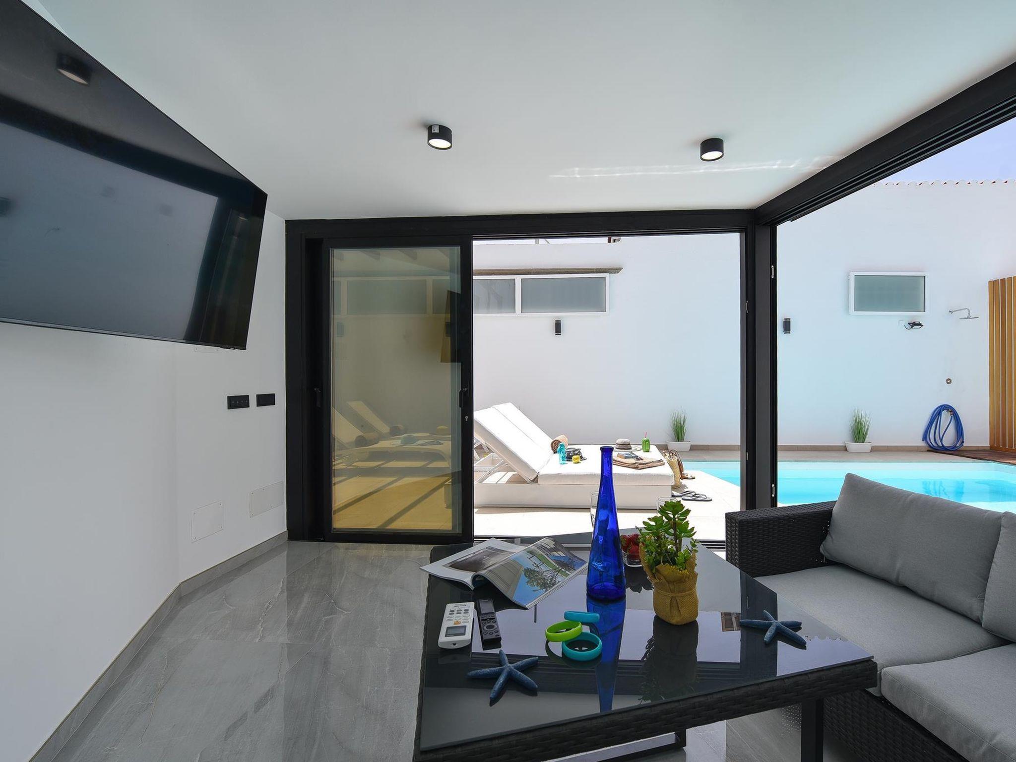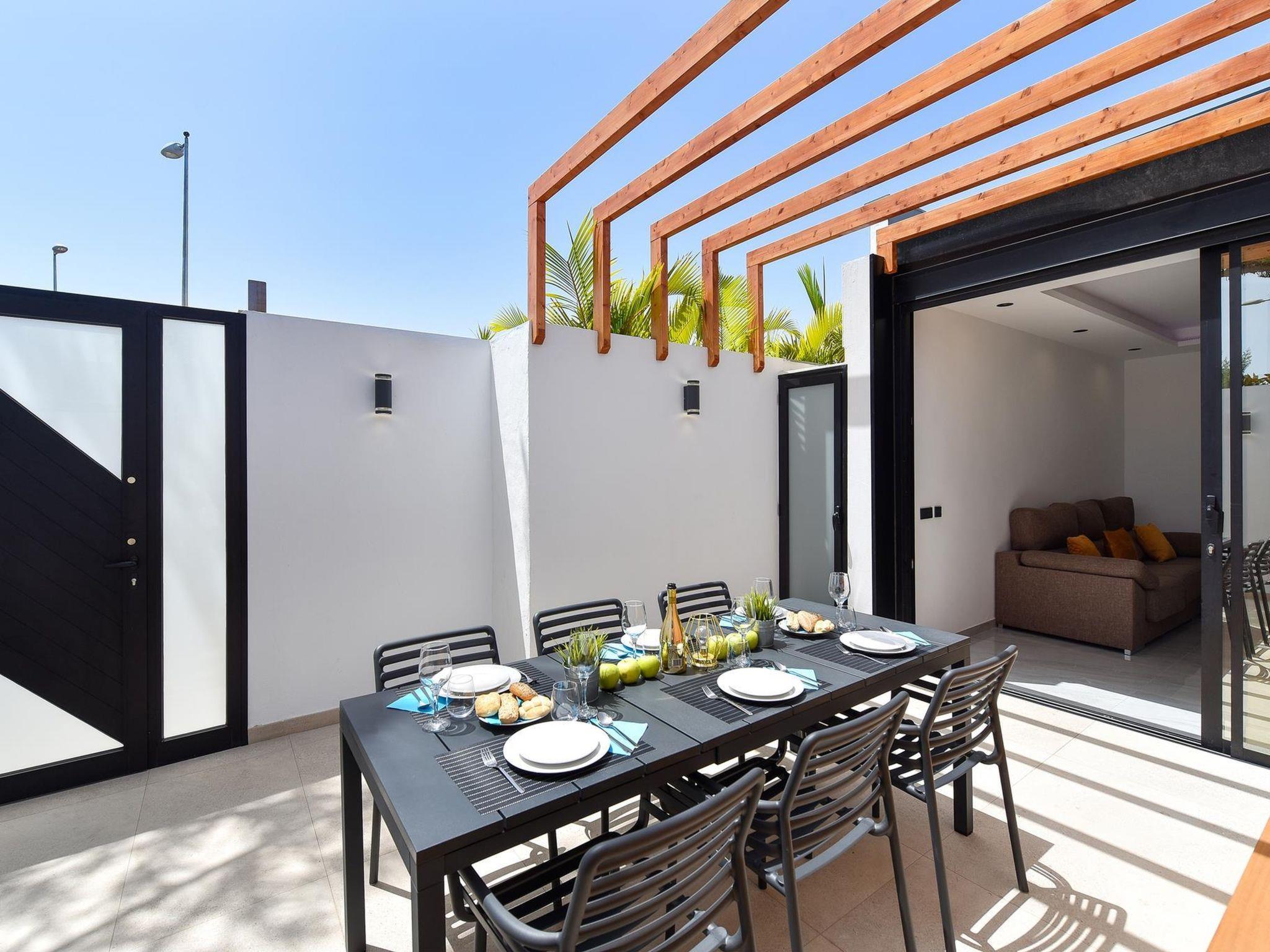 Modern, comfortable villa "Villa Aisha". In the centre of Playa del Inglés, in a central, busy position. Private: property (fenced), swimming pool (4 x 4 m, depth 150 - 150 cm, seasonal availability: 01.Jan. - 31.Dec.). Outdoor shower. In the house: air conditioning. Public parking on the road. Shop, supermarket 200 m, bus stop "Shopping Center Cita" 10 m. The owner does not accept any youth groups. Please note: airfield 35 km from the property. Neighbourhood highly sensitive to noise. Quietness and good behaviour expected.