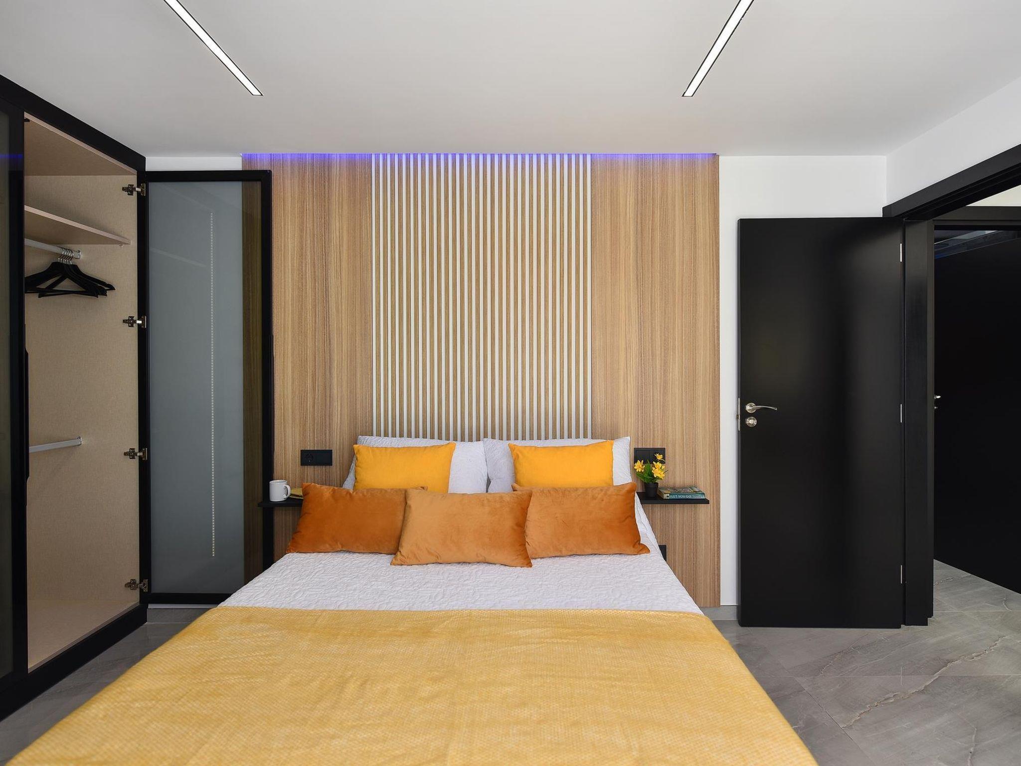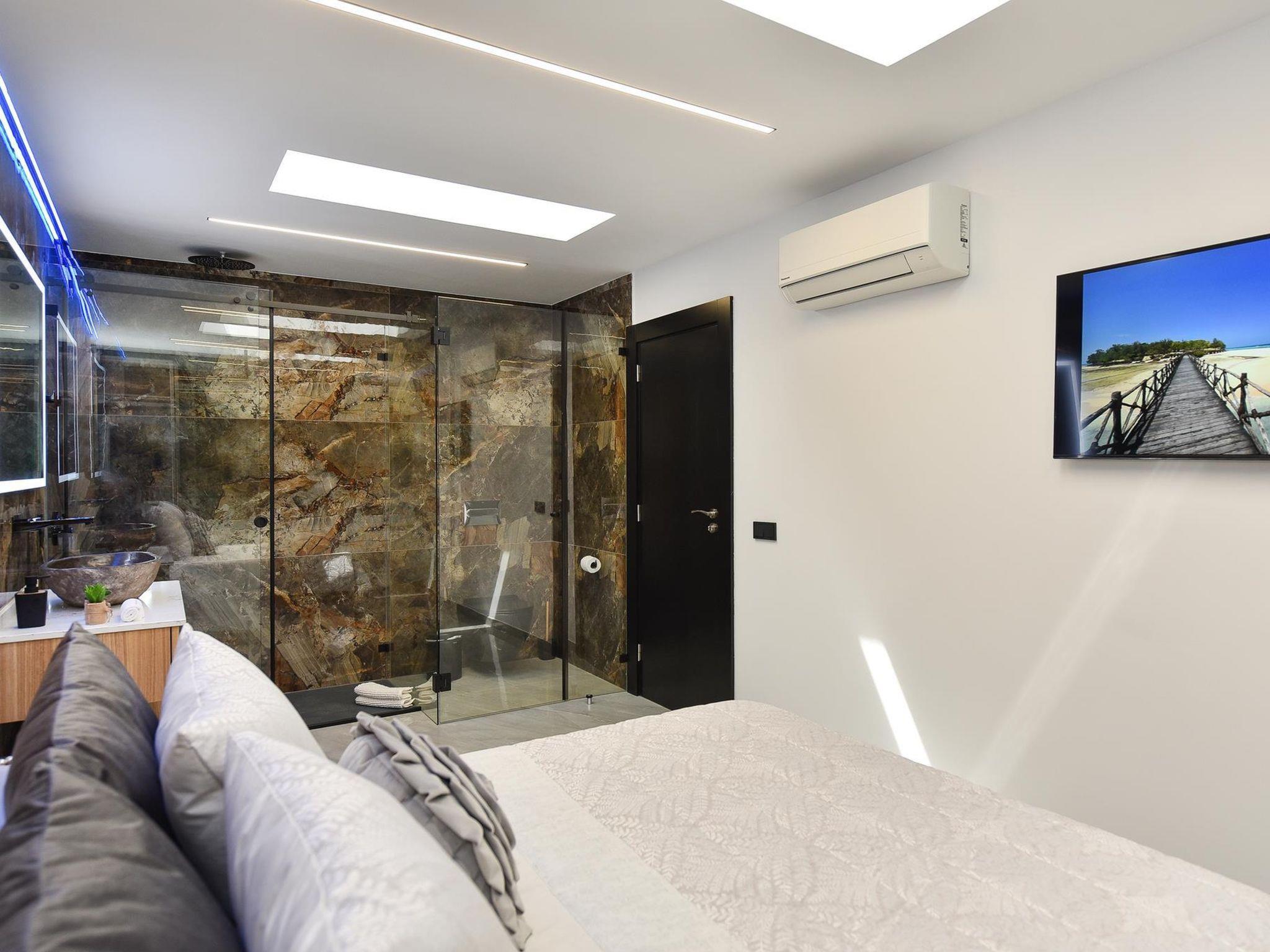 "Villa Aisha", 3-room house 110 m2. Comfortable and cosy furnishings: living room with 1 double sofabed, digital TV and air conditioning. Exit to the terrace. 2 rooms, each room with 1 french bed, shower/WC, digital TV and air conditioning. Open kitchen (oven, toaster, kettle, microwave, freezer, electric coffee machine). Terrace. Terrace furniture, deck chairs. Facilities: washing machine, safe, iron, children's high chair, baby cot for up to 2 year olds, hair dryer. Internet (WiFi, free). Please note: non-smoking house. Maximum 1 pet/ dog allowed. 2022-T13668