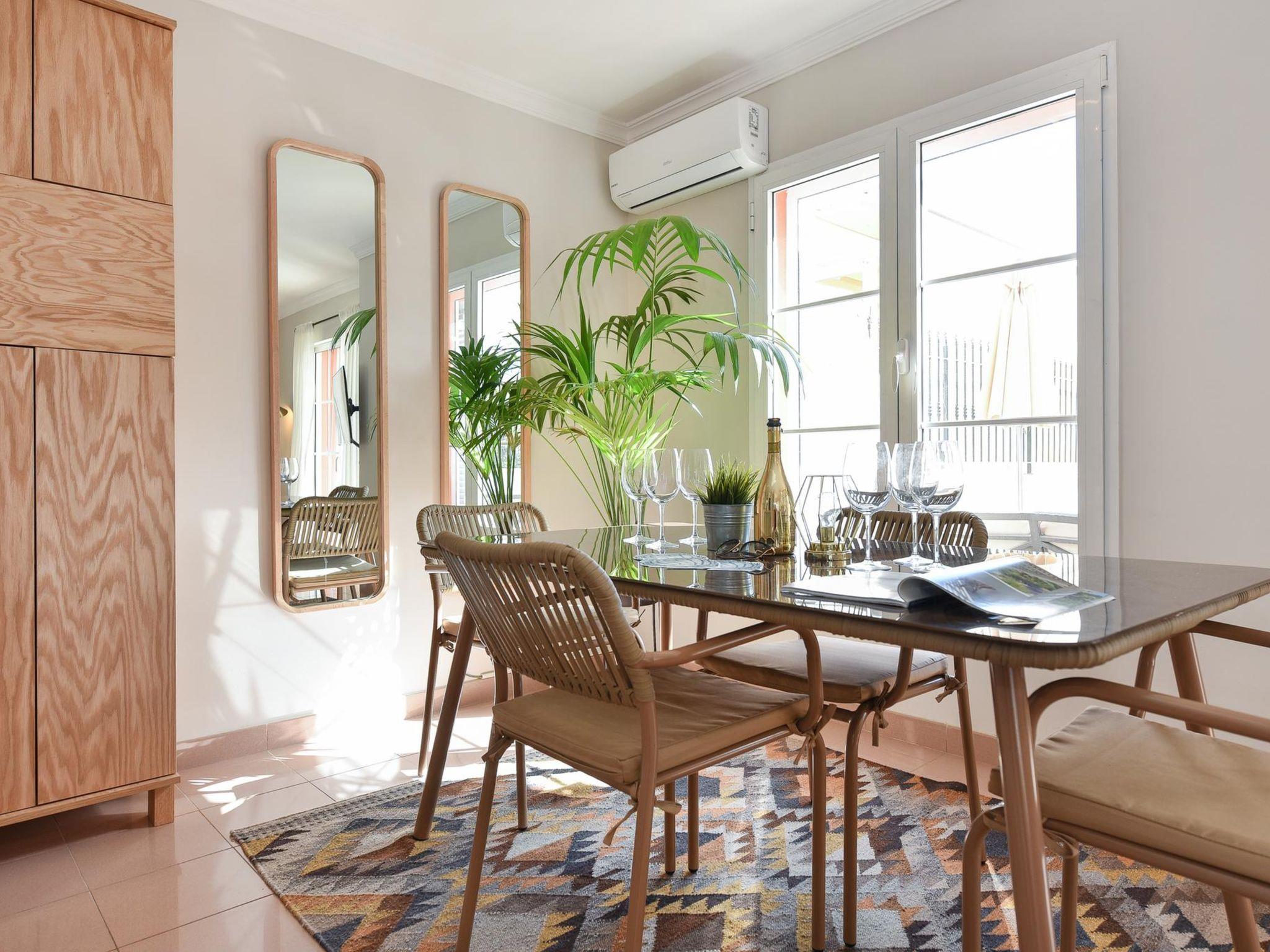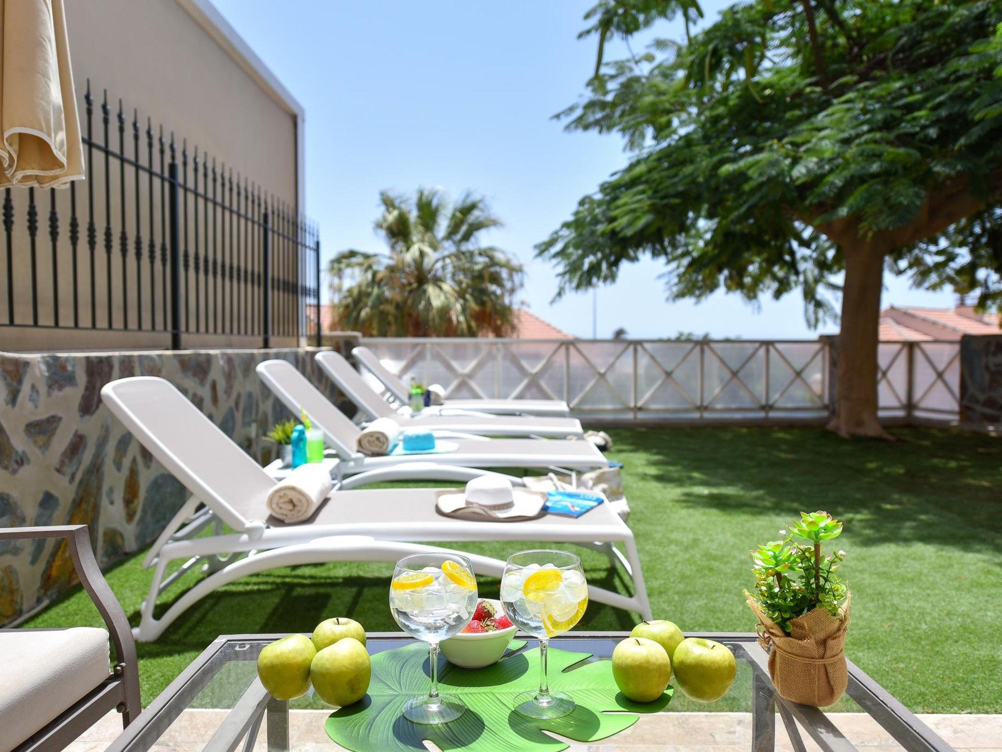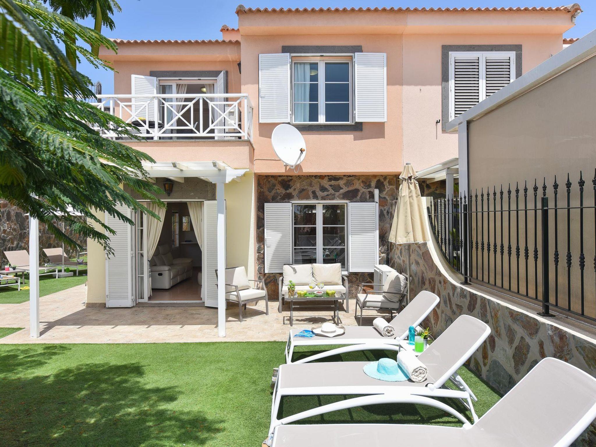 Beautiful, comfortable terraced house "Chalet Santa Ana 15". In the centre of Playa del Inglés, in a central position, 500 m from the sea, 500 m from the beach. For shared use: swimming pool angular (16 x 8 m, seasonal availability: 01.Jan. - 31.Dec.). Private: garden (fenced) with lawn. In the house: air conditioning. Parking on the premises, public parking on the road. Shop, grocery, supermarket, restaurant 200 m, bus stop "Shopping Center Cita" 600 m, sandy beach 500 m. The owner does not accept any youth groups. Please note: motorway 1 km from the property. Neighbourhood highly sensitive to noise. Quietness and good behaviour expected.