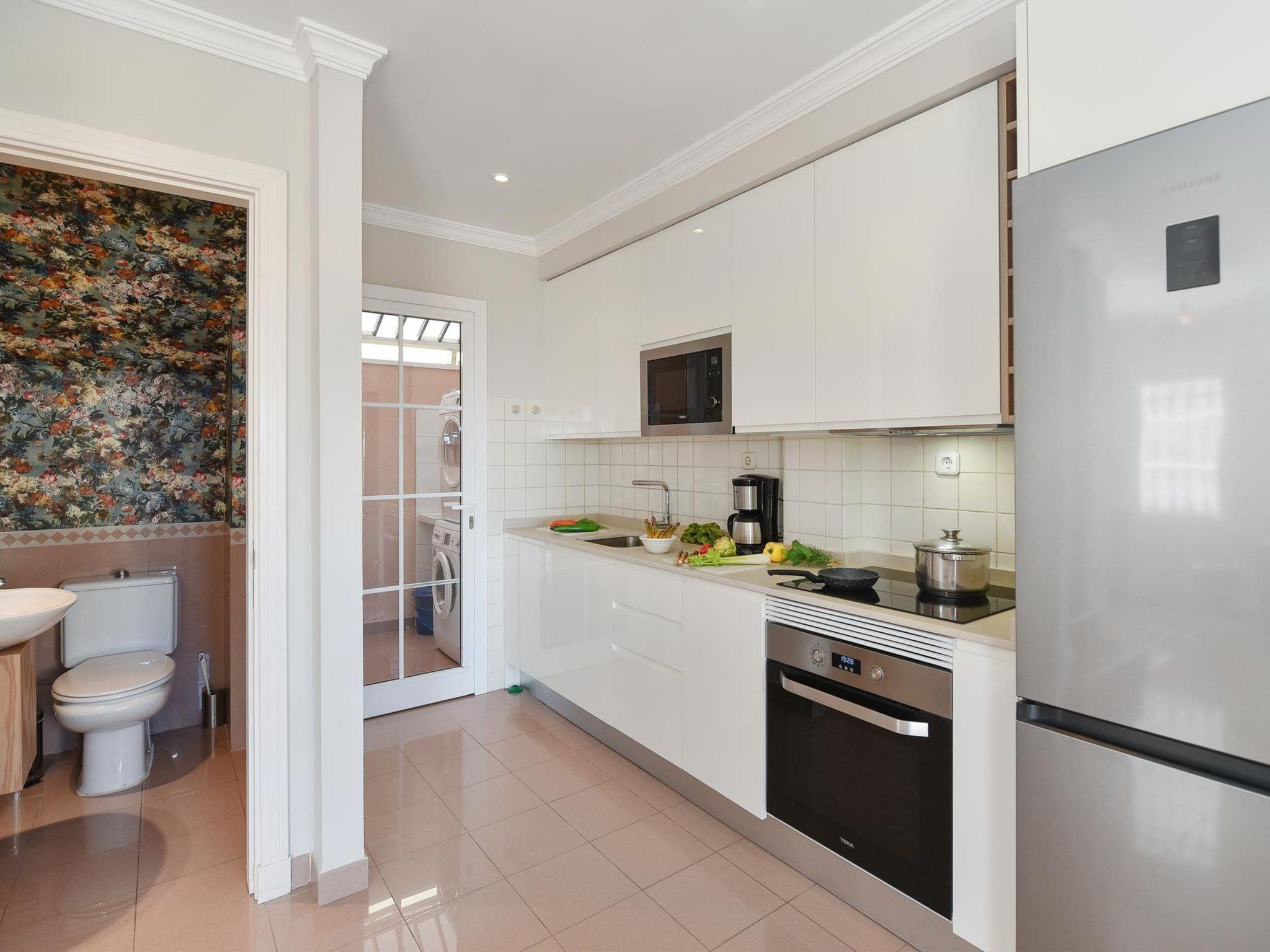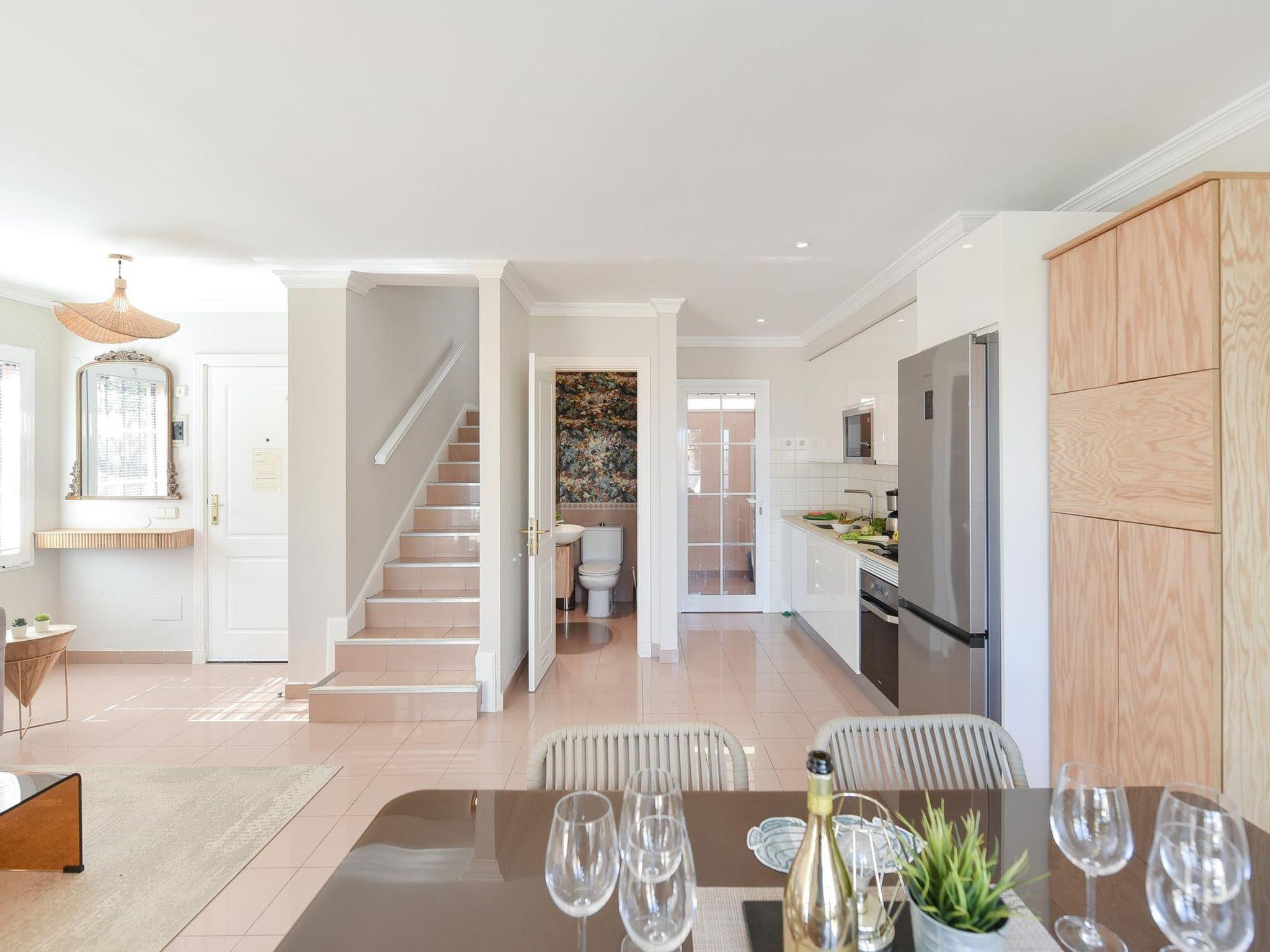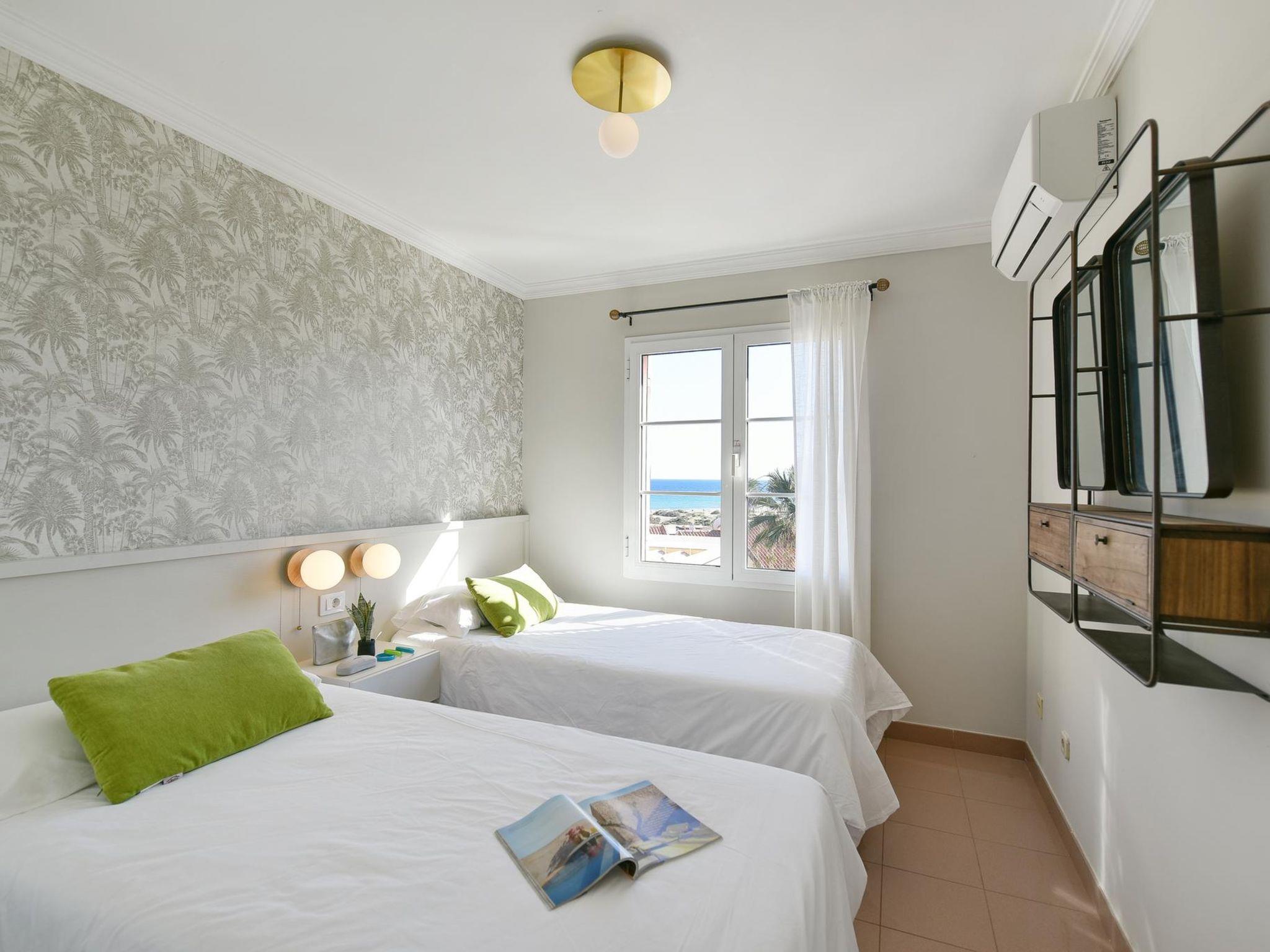 "Chalet Santa Ana 15", 3-room house 115 m2 on 2 levels. Comfortable and modern furnishings: living/dining room with dining table, satellite TV, digital TV and air conditioning. Exit to the patio. Open kitchen (3 ceramic glass hob hotplates, toaster, kettle, microwave, freezer, electric coffee machine). Sep. WC. Upper floor: 1 room with 2 beds and air conditioning. Exit to the balcony. 1 room with 2 beds. Bath/bidet/WC. Patio. Terrace furniture, balcony furniture, deck chairs. View of the sea. Facilities: washing machine, iron, children's high chair, baby cot for up to 2 year olds, hair dryer. Internet (WiFi, free). Parking (1 car). Please note: non-smoking house. VV-35-1-0016230 // Reg. Nr.: ESFCTU0000350130003078460000000000000VV-35-1-00162308