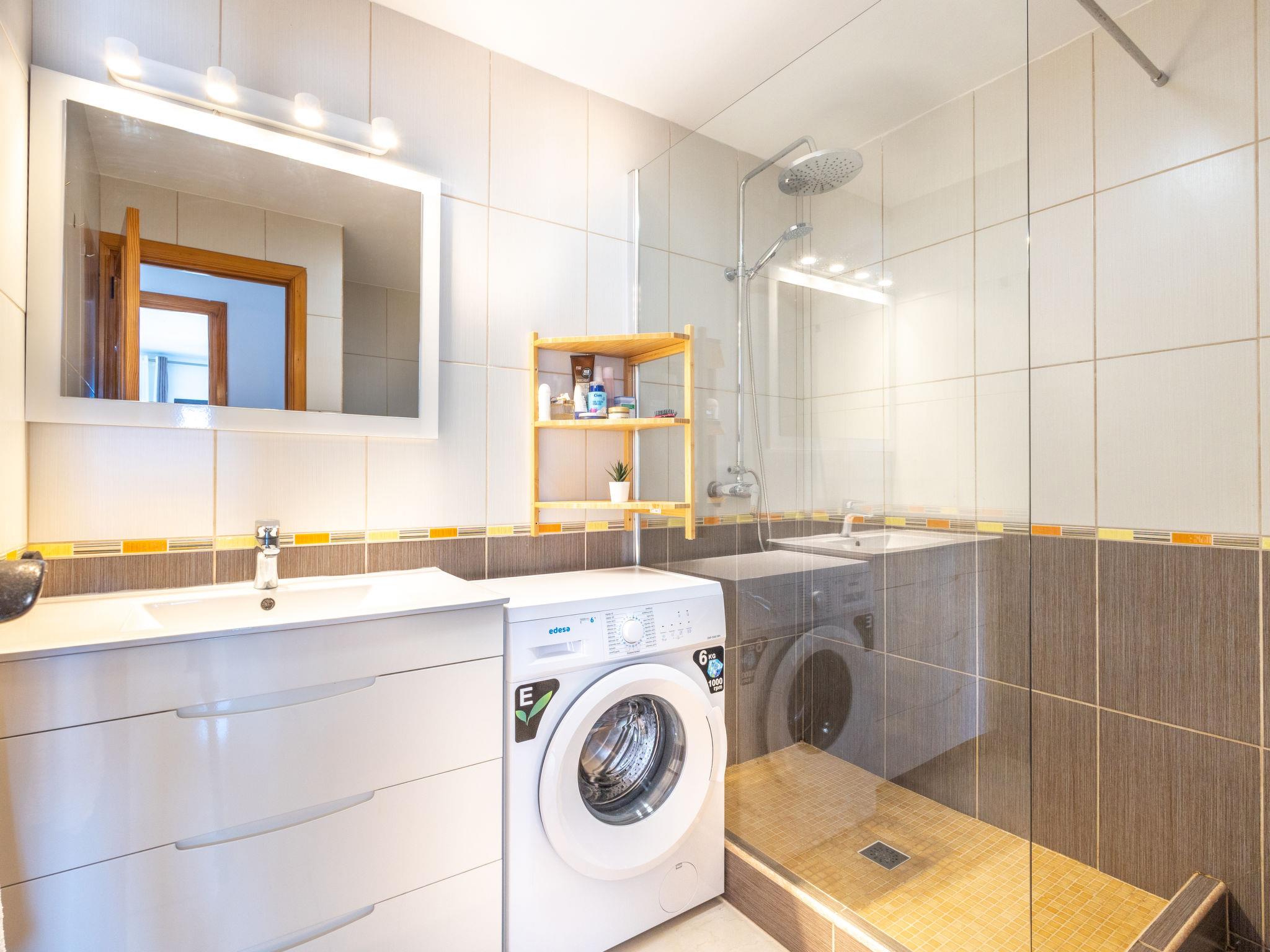 "Club Paraiso near Hard Rock", 2-room apartment 51 m2. Object suitable for 4 adults. Bright, practical and comfortable furnishings: living/dining room with 1 sofabed and satellite TV (flat screen). Exit to the terrace. 1 room with 1 french bed (140 cm, length 200 cm), fan. Open kitchen (oven, dishwasher, 4 ceramic glass hob hotplates, toaster, kettle, microwave, freezer, electric coffee machine, Capsules for coffee machine (Dolce Gusto) extra). Shower/WC. Boiler (50 litres). No heating option. Natural stone floors. Terrace. Balcony furniture. Partial view of the sea, the mountains and the resort. Facilities: washing machine, iron, hair dryer. Internet (WiFi, free). Please note: non-smokers only. VV-38-4-0093249 // Reg. Nr.: ESFCTU0000380150000463880000000000000VV-38-4-00932497