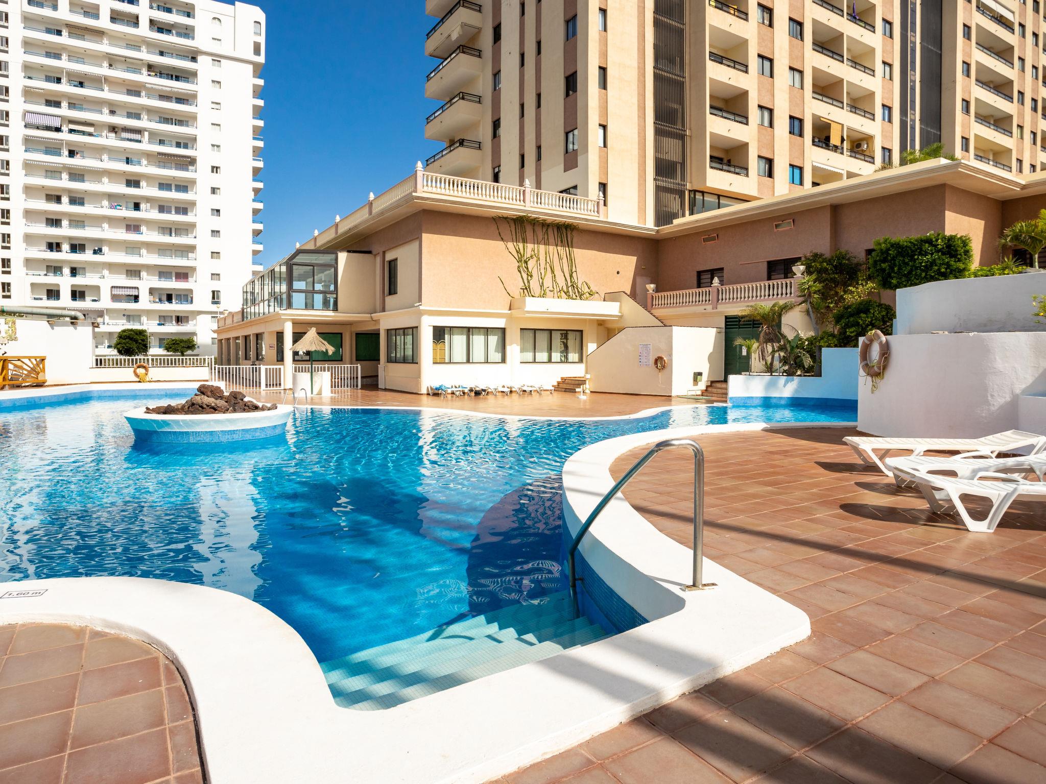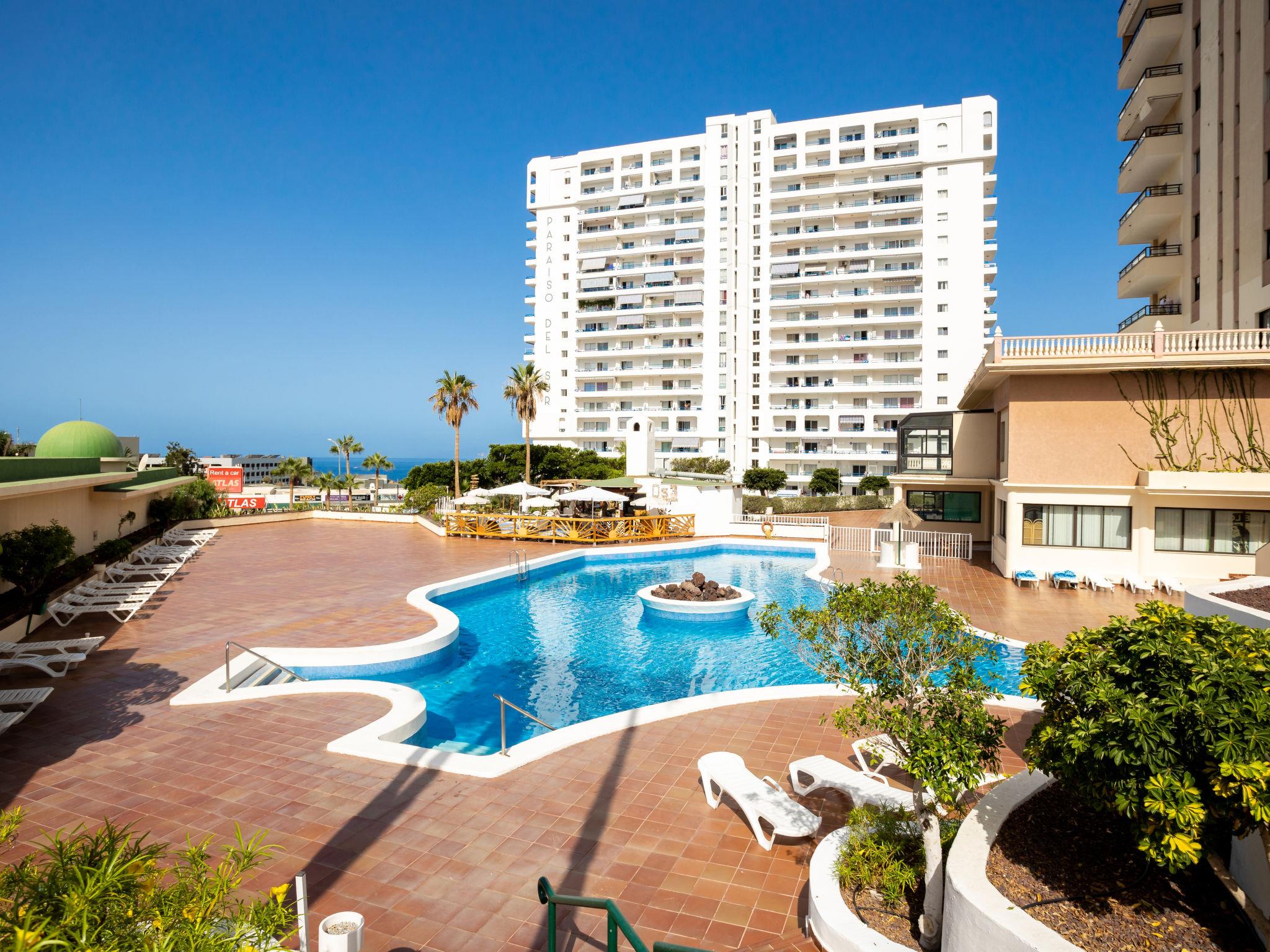 Cosy, comfortable apartment block "Club Paraiso", 15 storeys. In the centre of Playa Paraiso, in a quiet, sunny position on a slope, 500 m from the sea, 500 m from the beach. For shared use: swimming pool (depth 200 cm, seasonal availability: 01.Jan. - 31.Dec.). Unconventional pool shape. WC in the pool area, children's pool, outdoor shower, tennis (2 x hard court). In the house: bistro, billiard table, lift. Shop 100 m, supermarket 150 m, restaurant, bar 100 m, bus stop "Titsa Hard Rock Hotel" 200 m. Golf course (18 hole) 6 km. Nearby attractions: Siam Park 12 km, Playa Las Americas 15 km, Masca 31 km, Teide 60 km. Please note: baby equipment (extra). Object suitable for 2 adults. The owner does not accept any youth groups. Neighbourhood highly sensitive to noise. Quietness and good behaviour expected.