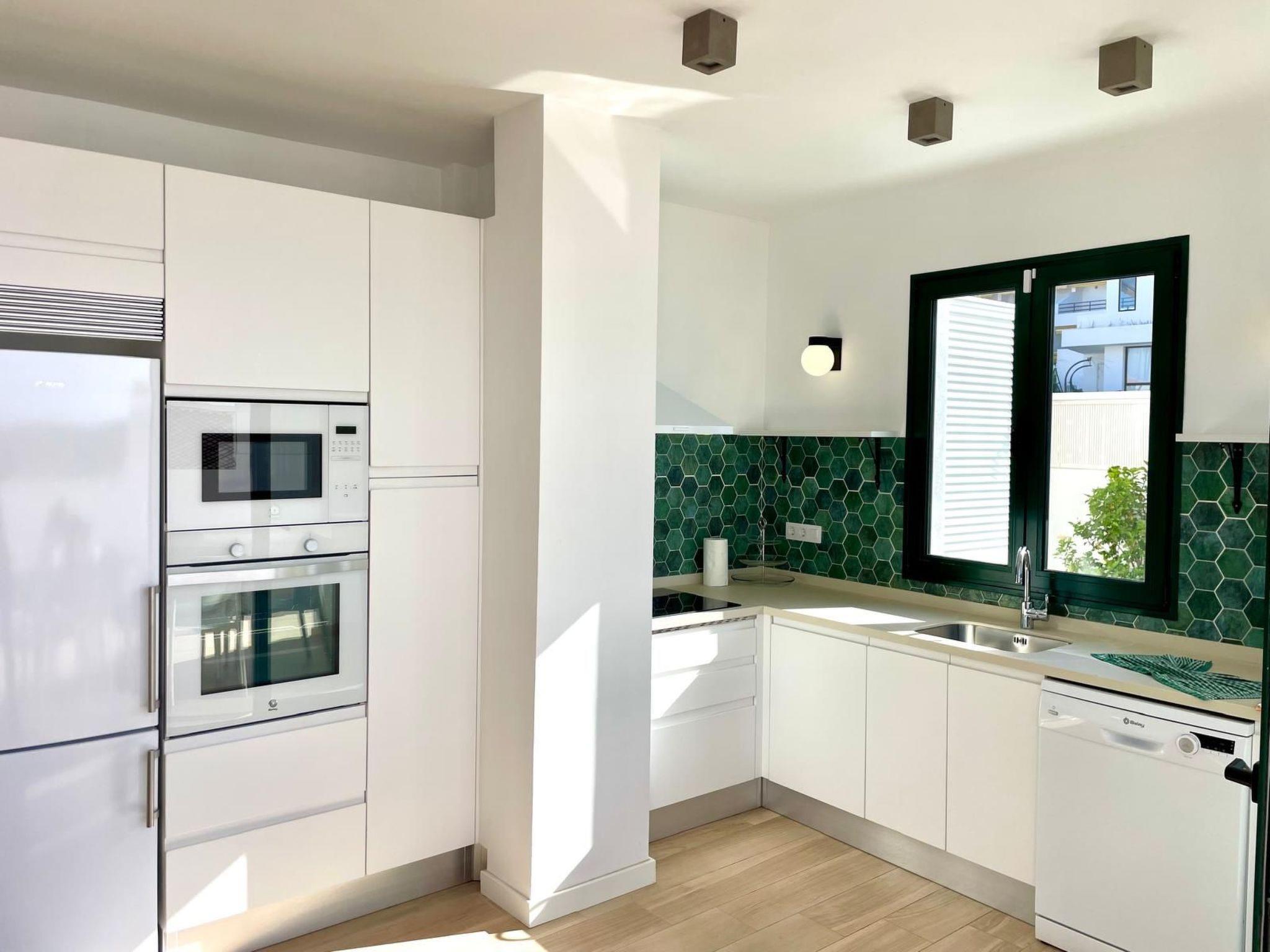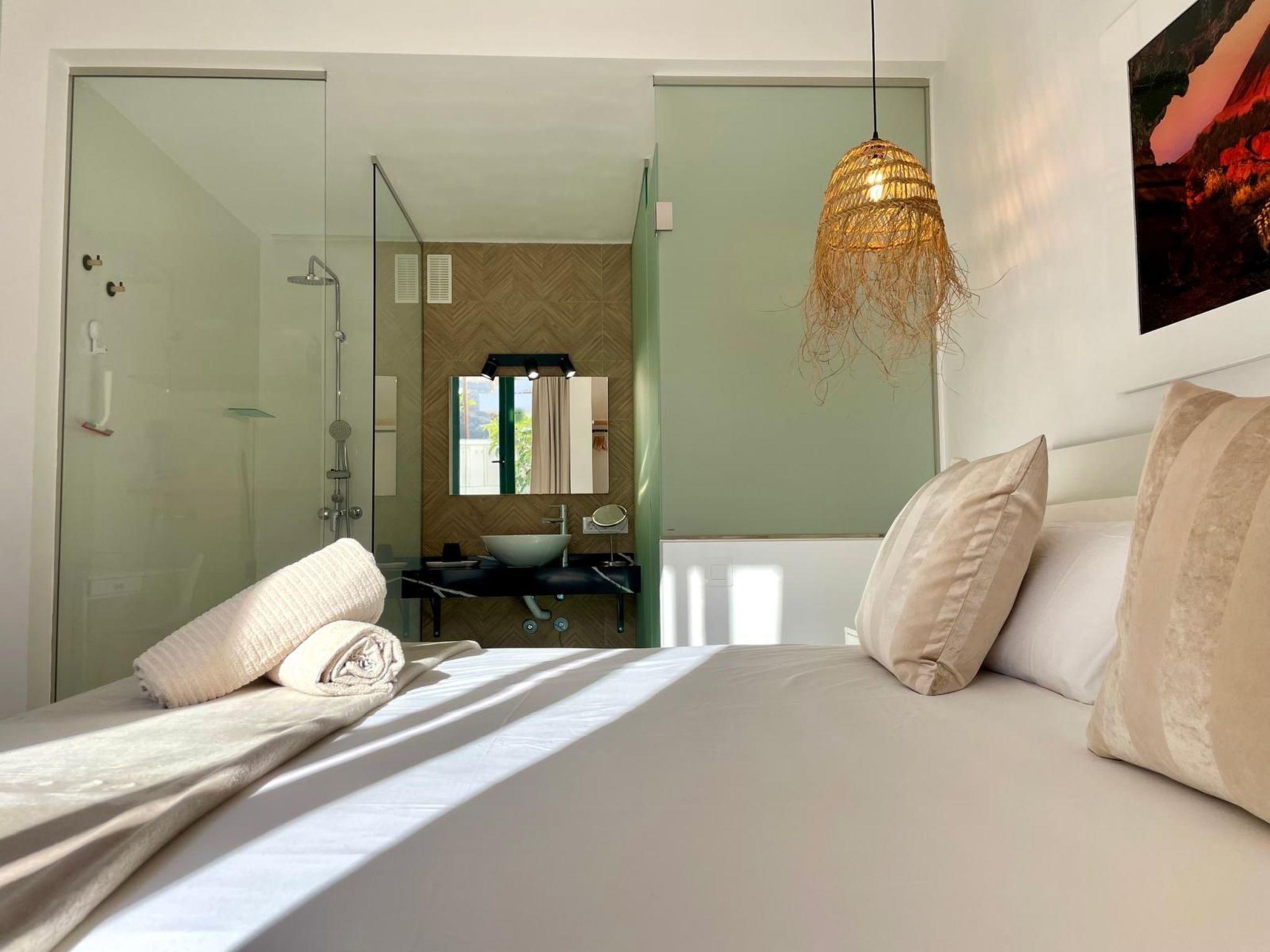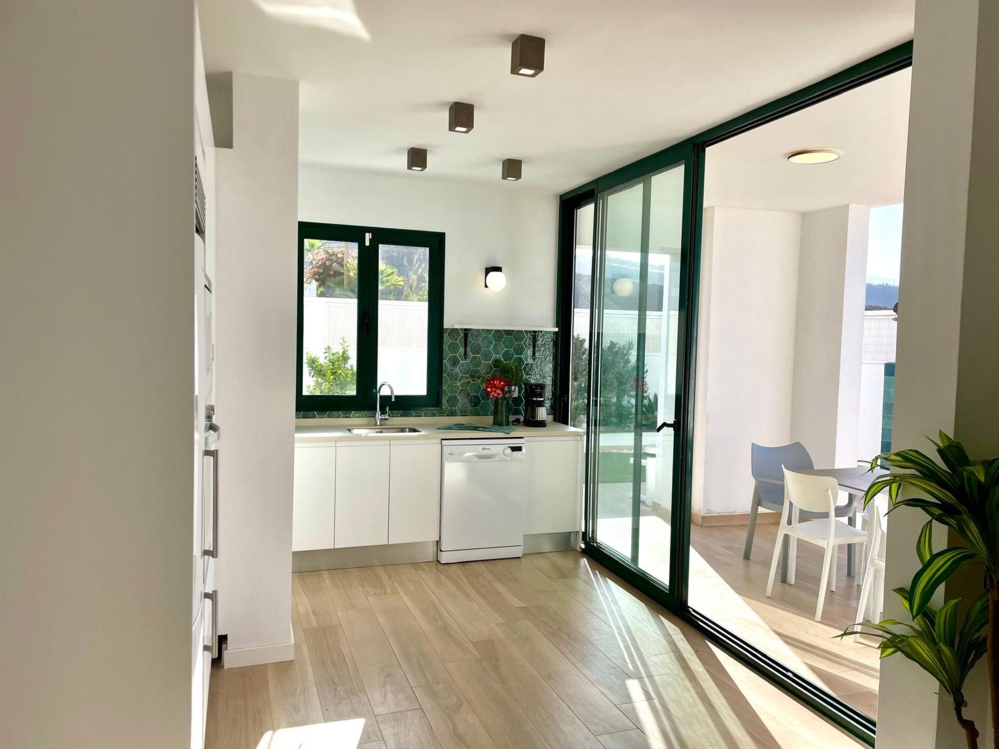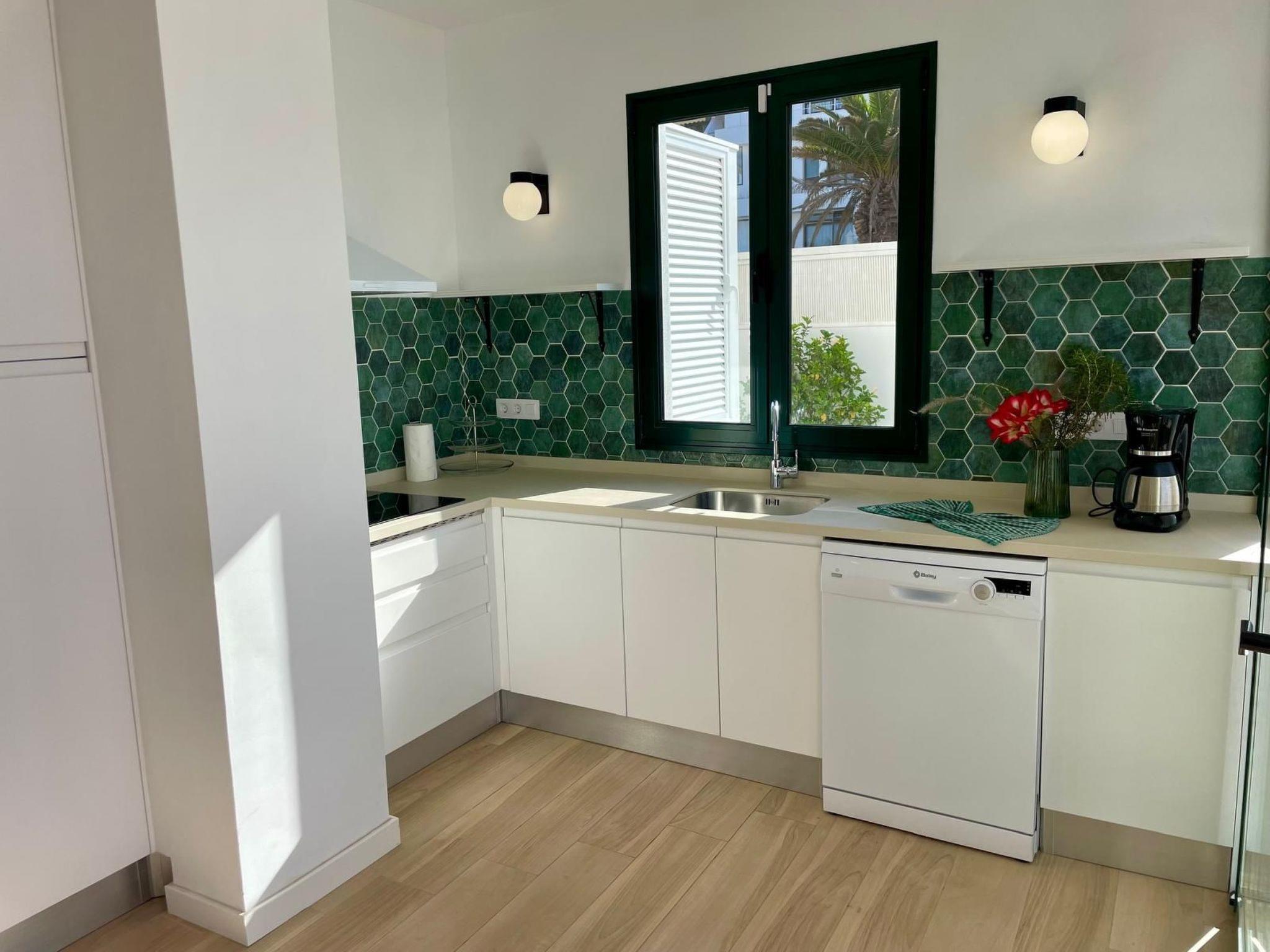 This modern holiday home has a private pool, which can be heated for an extra charge and is just a few minutes' walk from Playa La Arena beach and the sea.