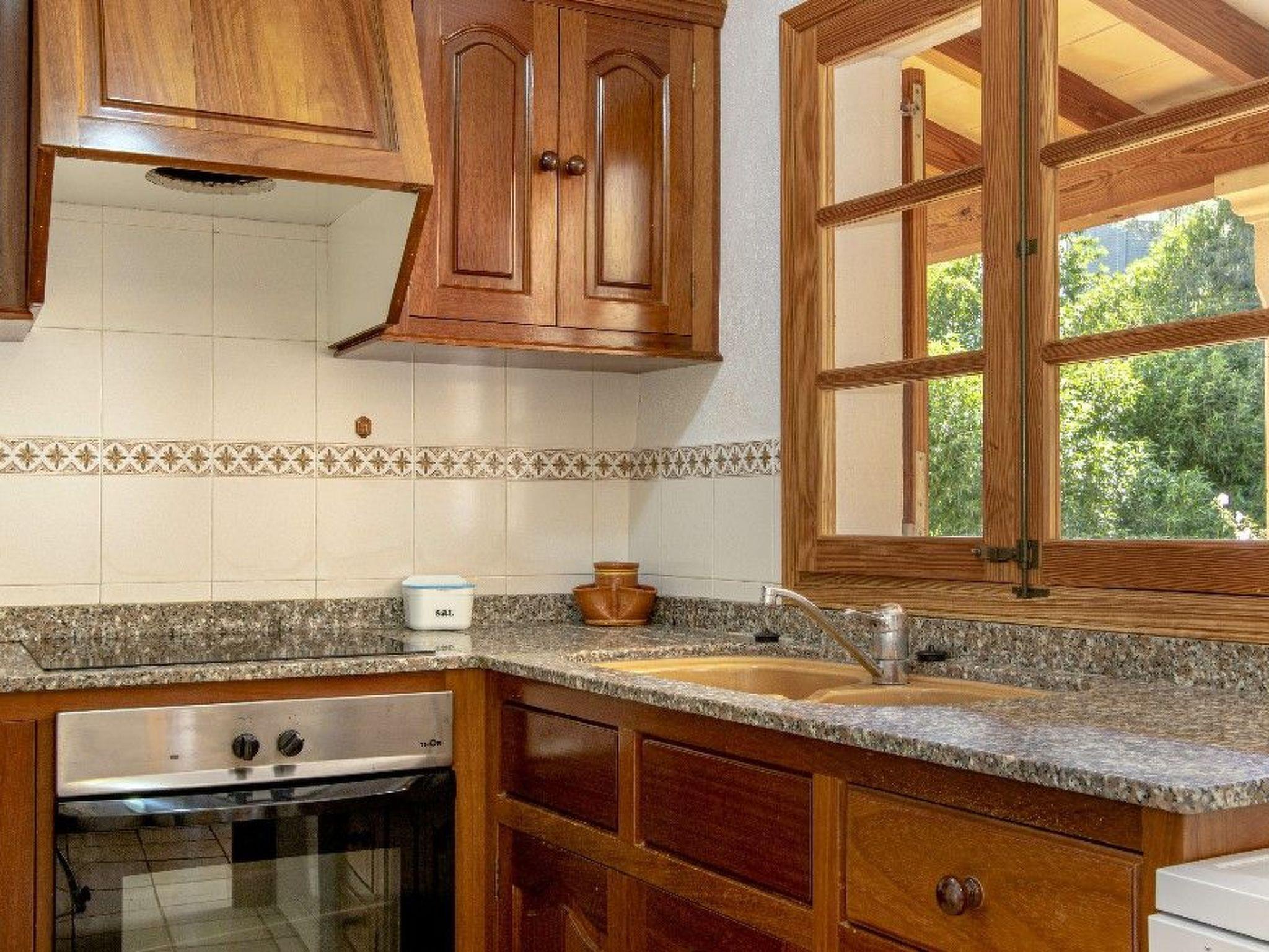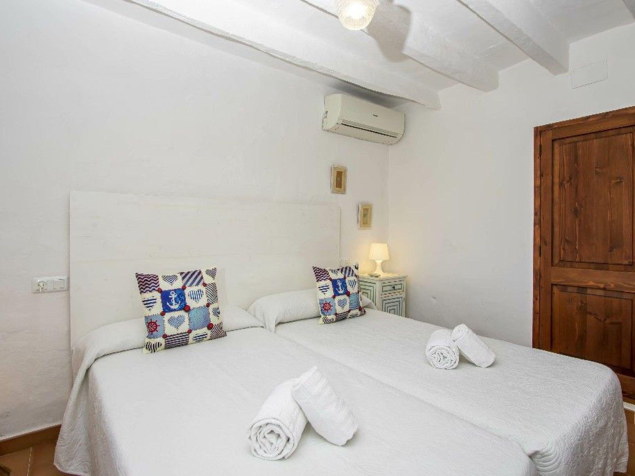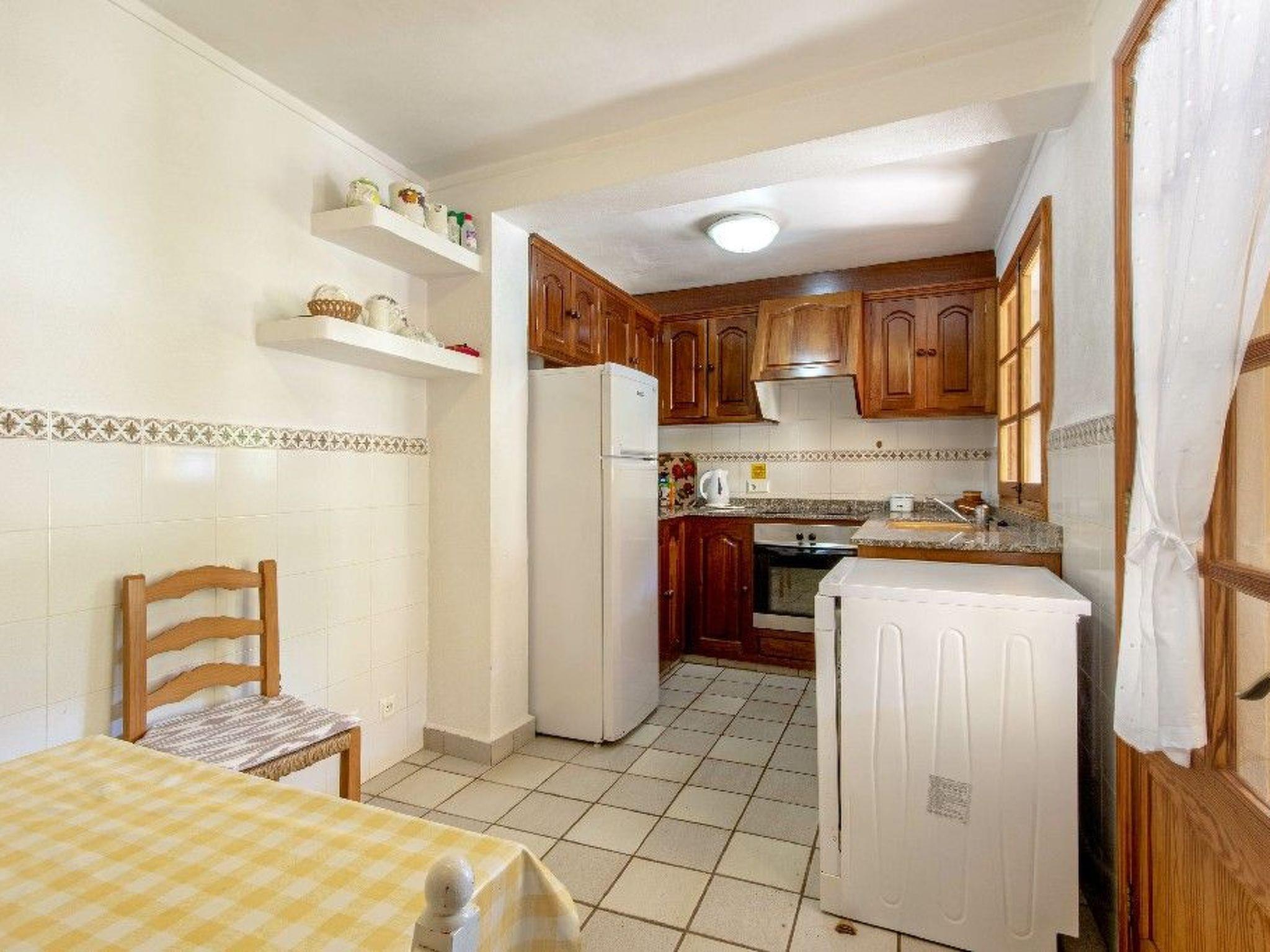 From the entrance you enter the living/dining room with traditional style, sofas, TV and stereo. There is a double bedroom and two twin bedrooms with two 90cm beds in each. There is also a bathroom with bath/shower. The kitchen is accessed through the terrace, and is fully equipped with all the necessary appliances.