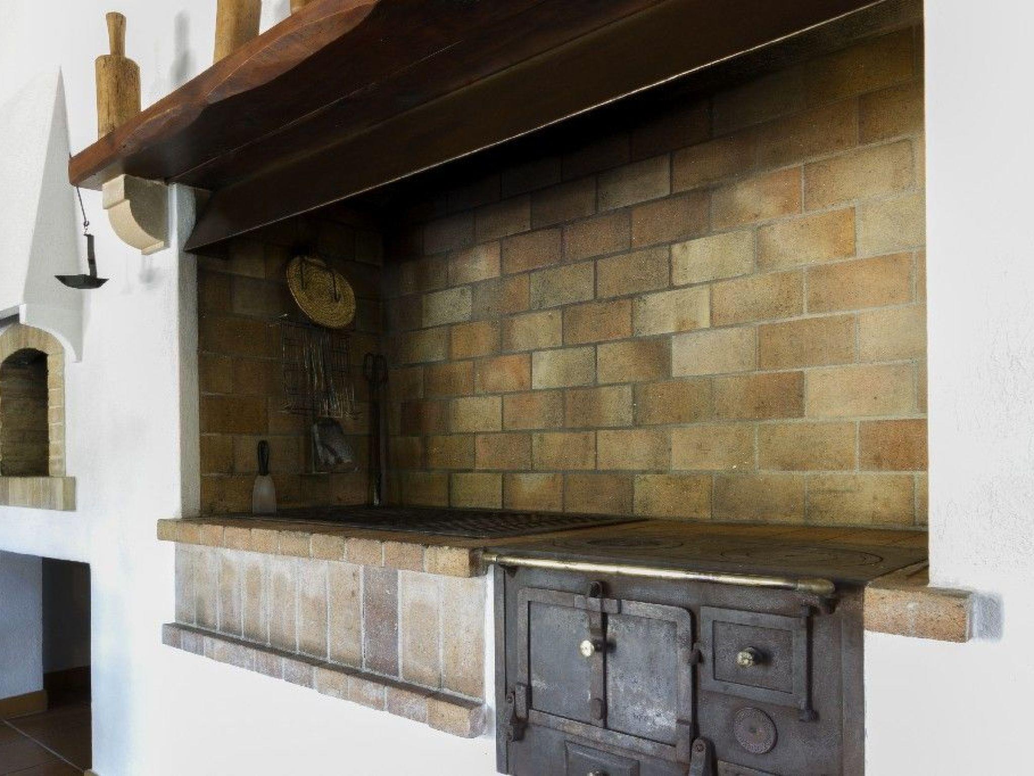 To complete, through one of the terraces we find a large rustic style room with barbecue, equipped with fireplace, wood oven and sink. Dining table and fireplace with armchairs.