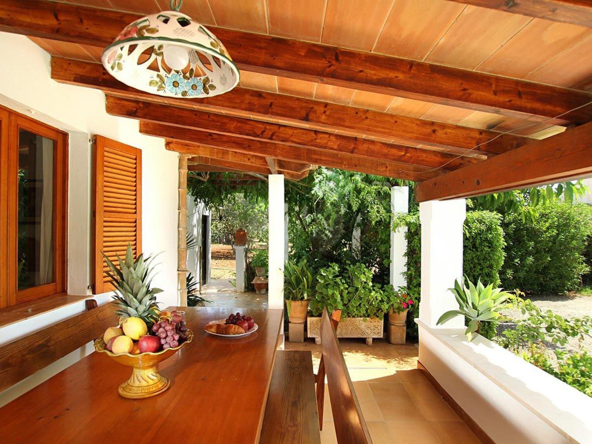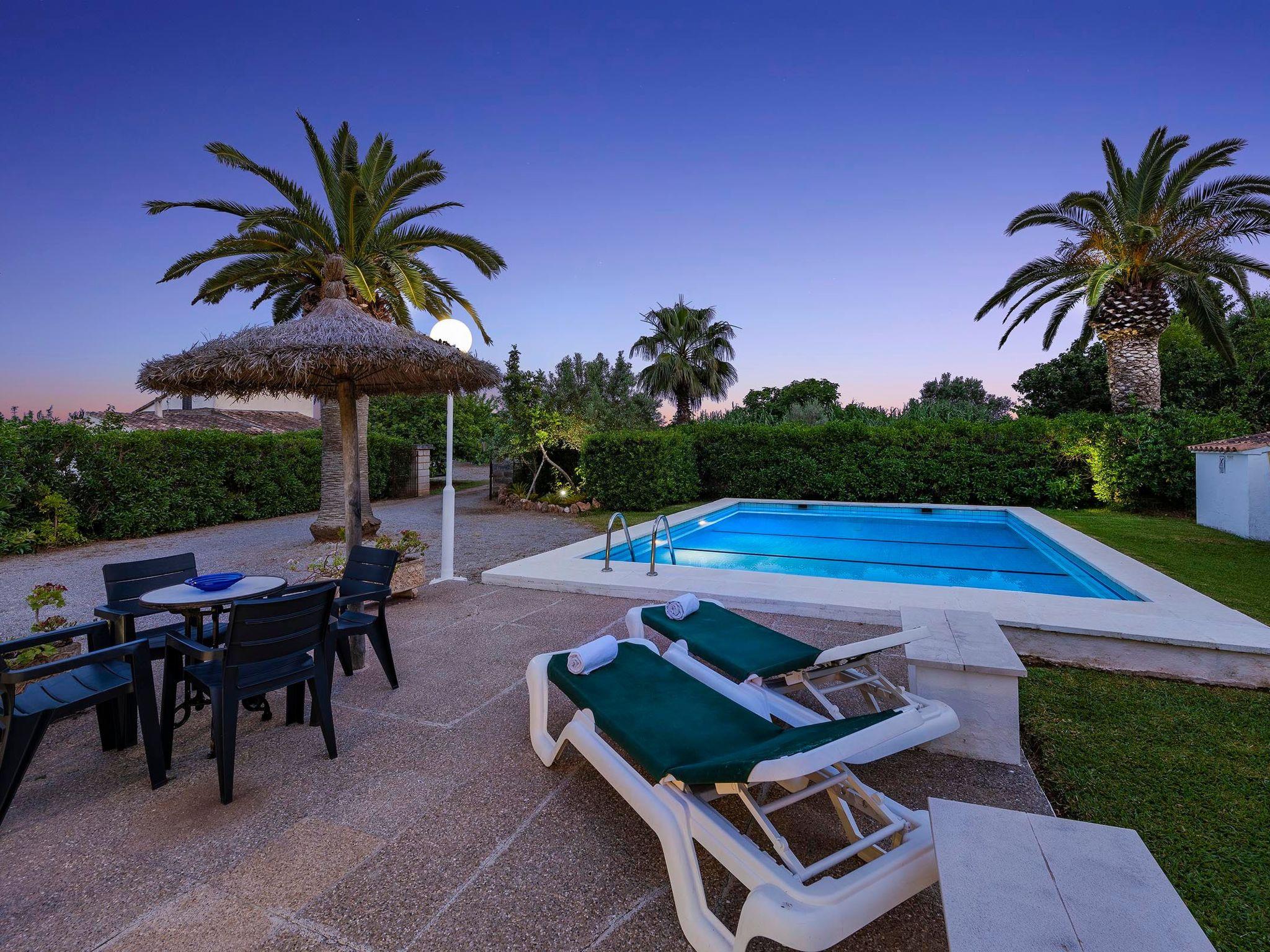 Charming villa ideal for couples or small families who want a relaxing getaway. The villa has many authentic traditional features as well as views towards the Puig de Maria hill. Outside, the private swimming pool is surrounded by a lawned garden with plenty of space for sunbathing. Mediterranean shrubs and palm trees embellish this part of the villa.