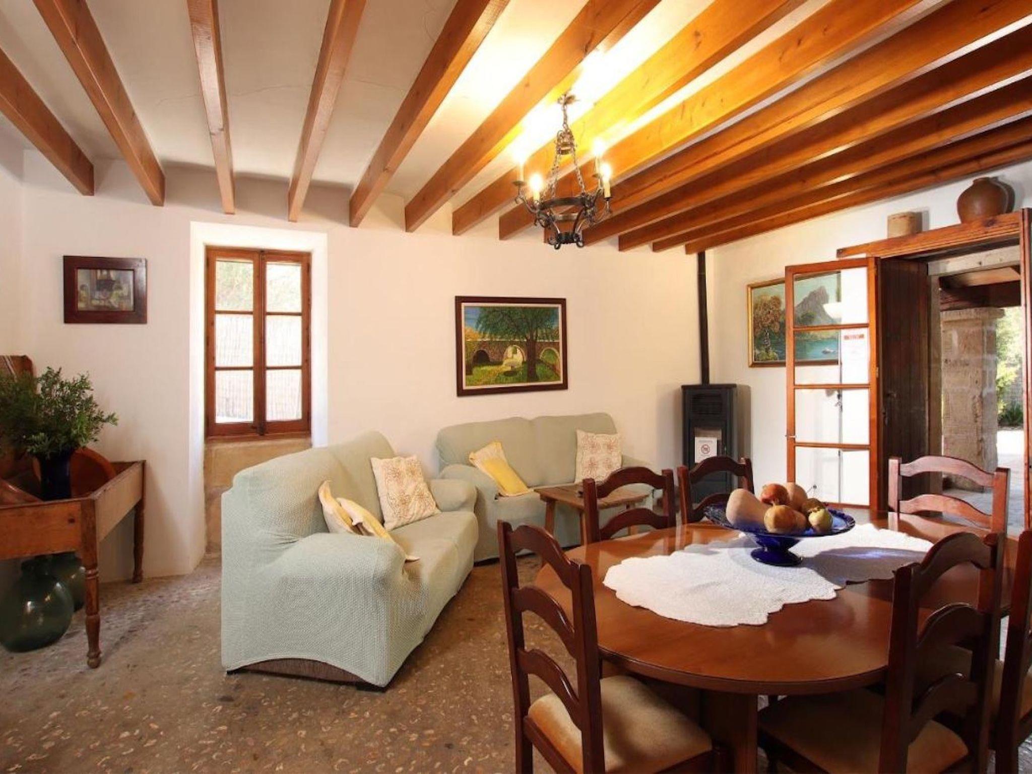 This rustic Mallorcan house is located just a few minutes from the village of Pollensa, and offers beautiful views of the Serra de Tramontana mountains. The decoration is totally traditional with wooden beams, ceramic and stone floors, white walls etc.