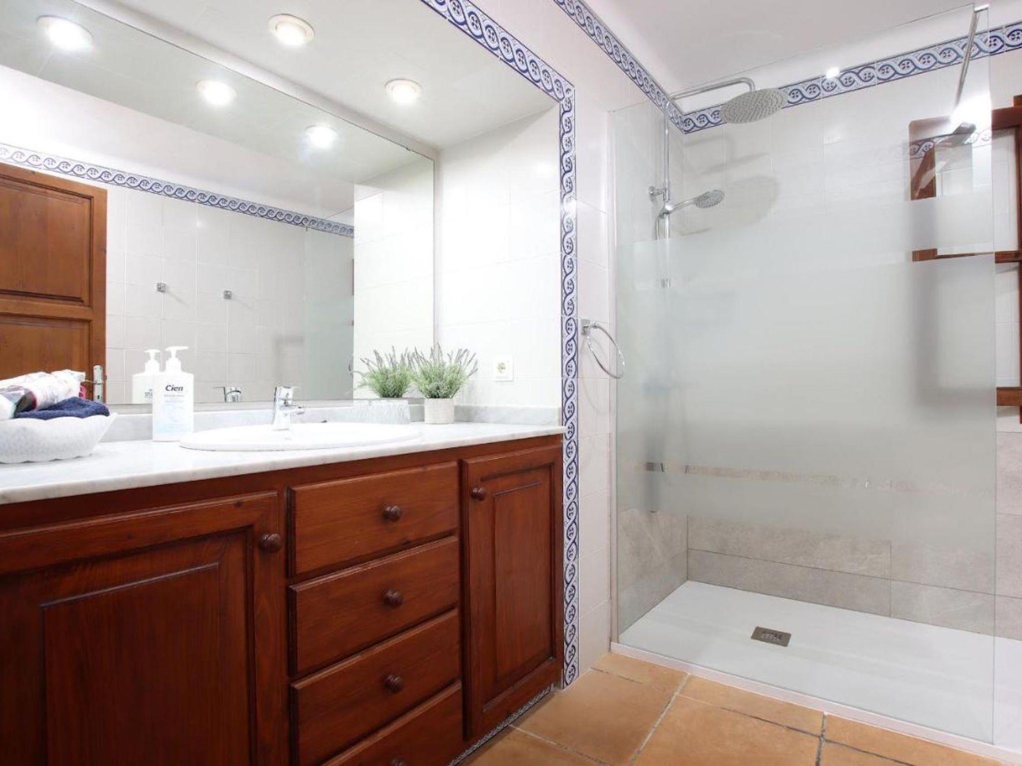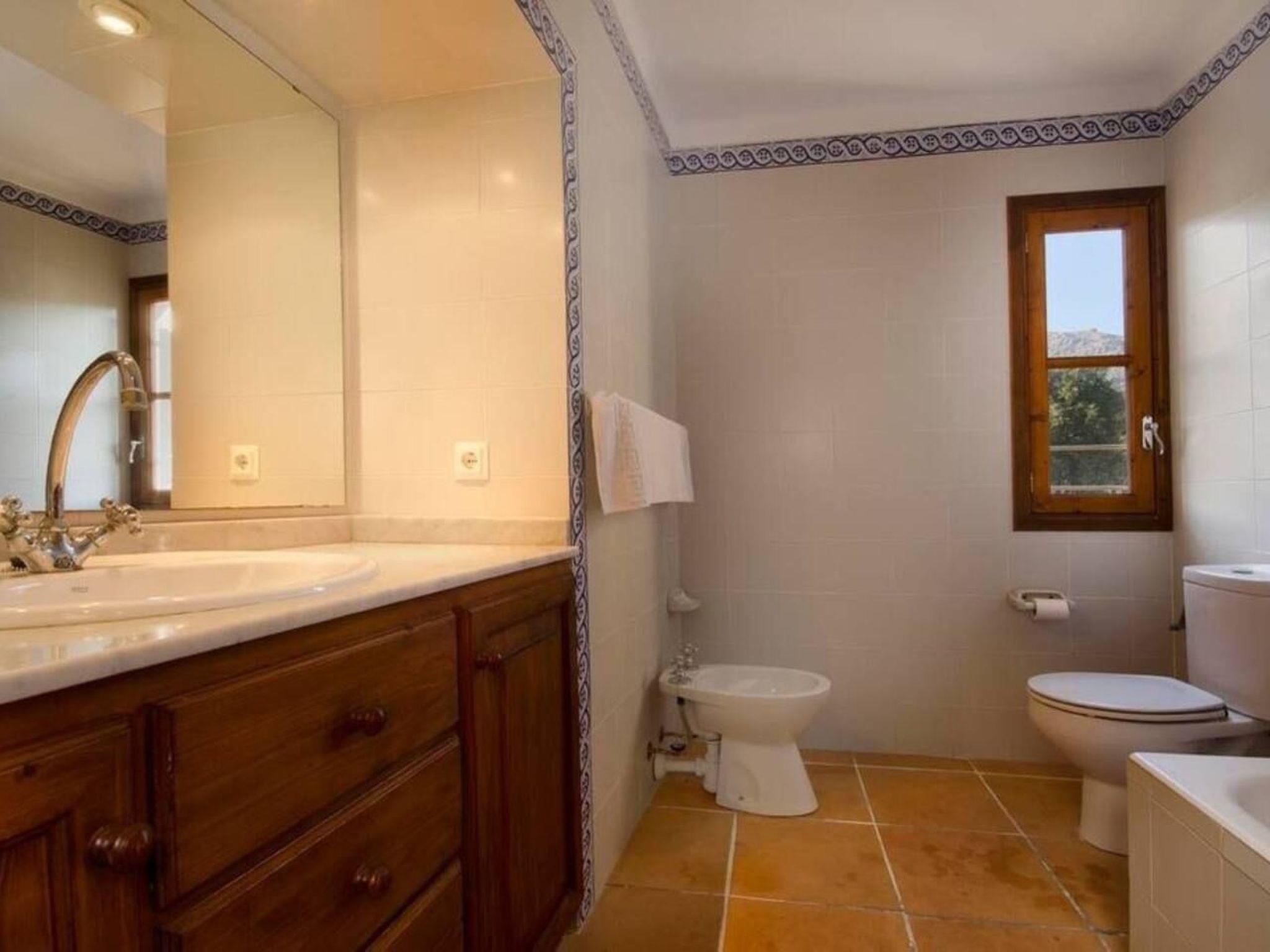 On the first floor we find the bedrooms; these consist of two doubles and one twin. All of them share two bathrooms, one with bathtub and one with shower. There is also a toilet with shower outside the house, near the barbecue area.