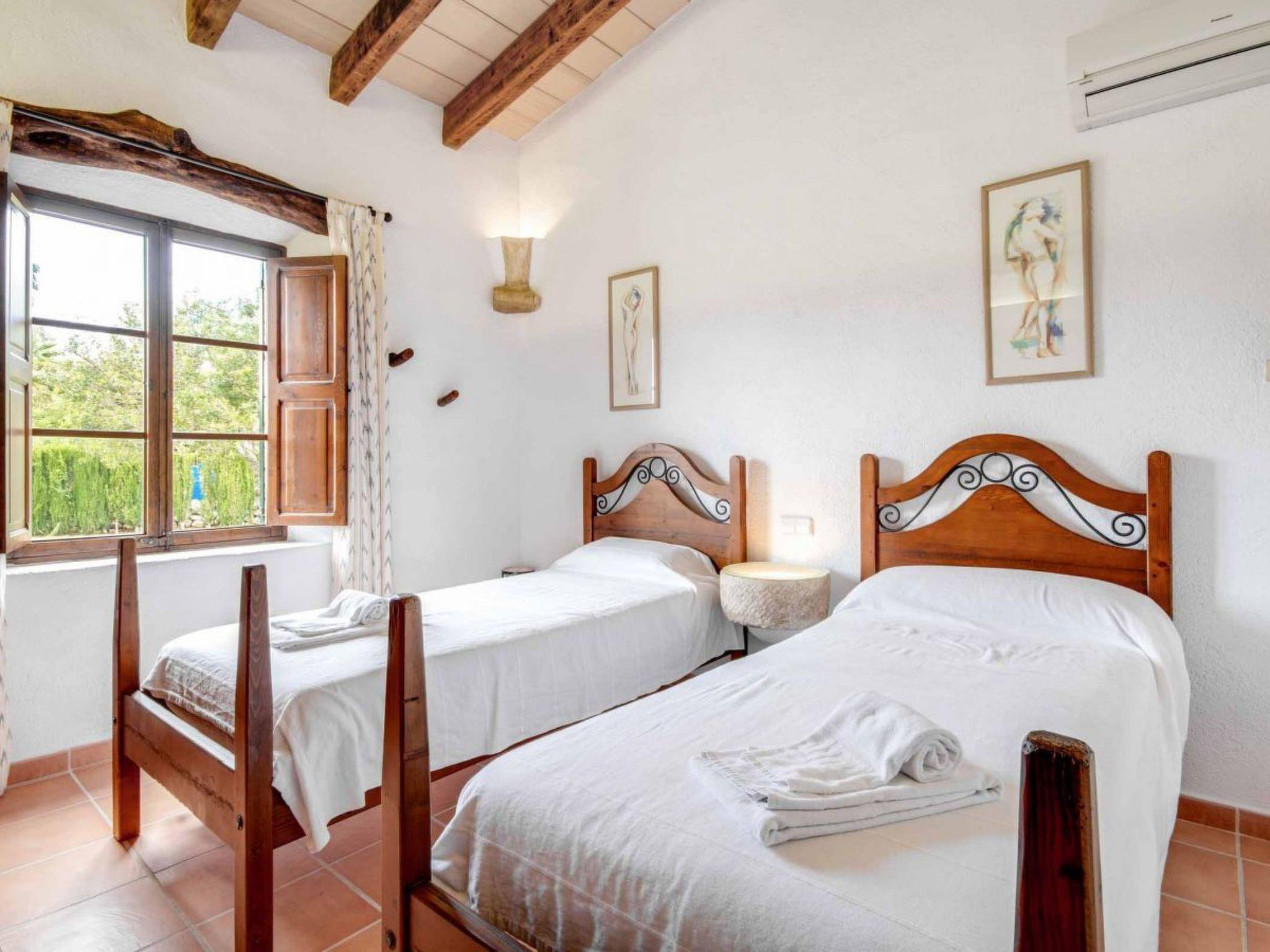 The house offers three bedrooms: one double bedroom with built-in wardrobes, stone bedside tables and a complete bathroom en suite, and two twin bedrooms, also with built-in wardrobes. These two double bedrooms share a full bathroom. All bedrooms are equipped with air-conditioning units, which are programmed at certain times of the day (during midday and throughout the night).