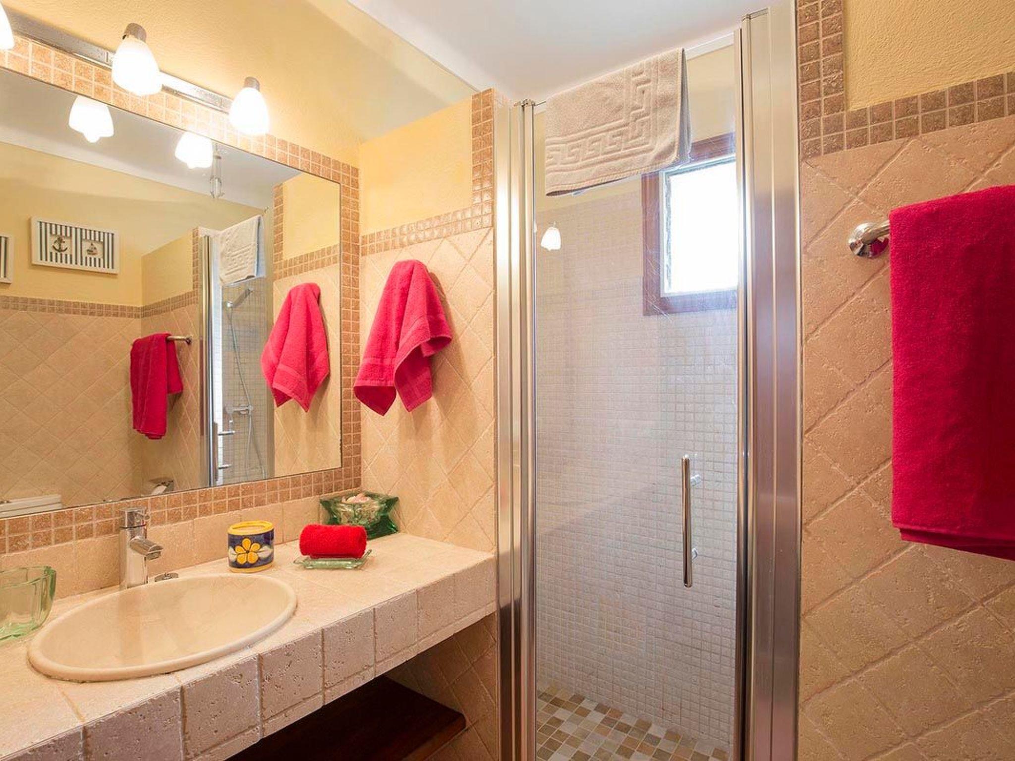 Inside, the house is traditionally furnished and decorated with beamed ceilings and terracotta floors. We access the villa through the main door located next to the front terrace, which leads directly to the spacious living room. On the right, a door leads to the fitted kitchen, fully equipped with all the necessary equipment for a holiday home. On this level of the house there is also a double bedroom and a separate bathroom with a shower.The rest of the rooms are on the upper floor. They consist of two doubles and one twin, as well as a full bathroom. All rooms are air-conditioned (with restricted hours).