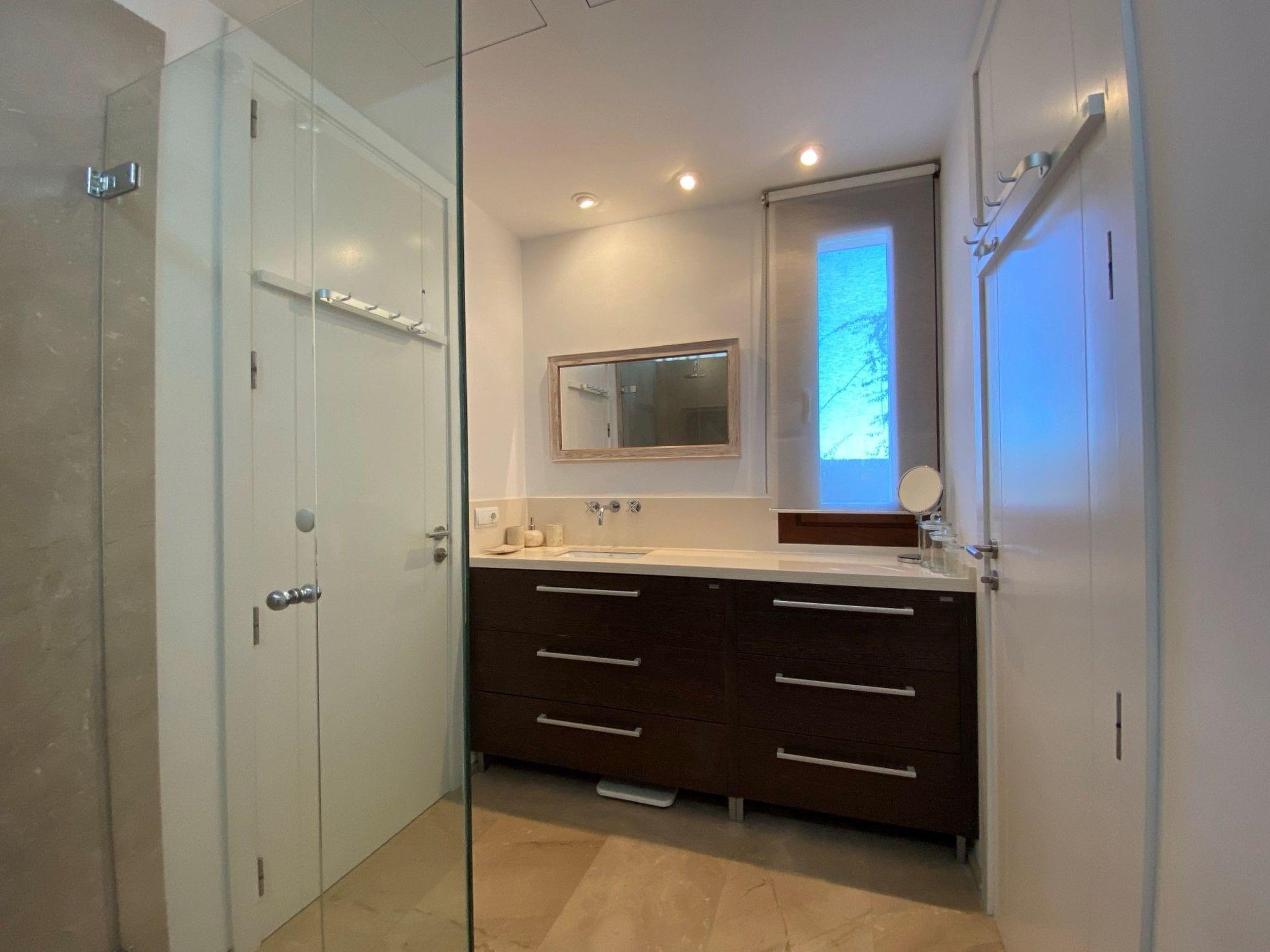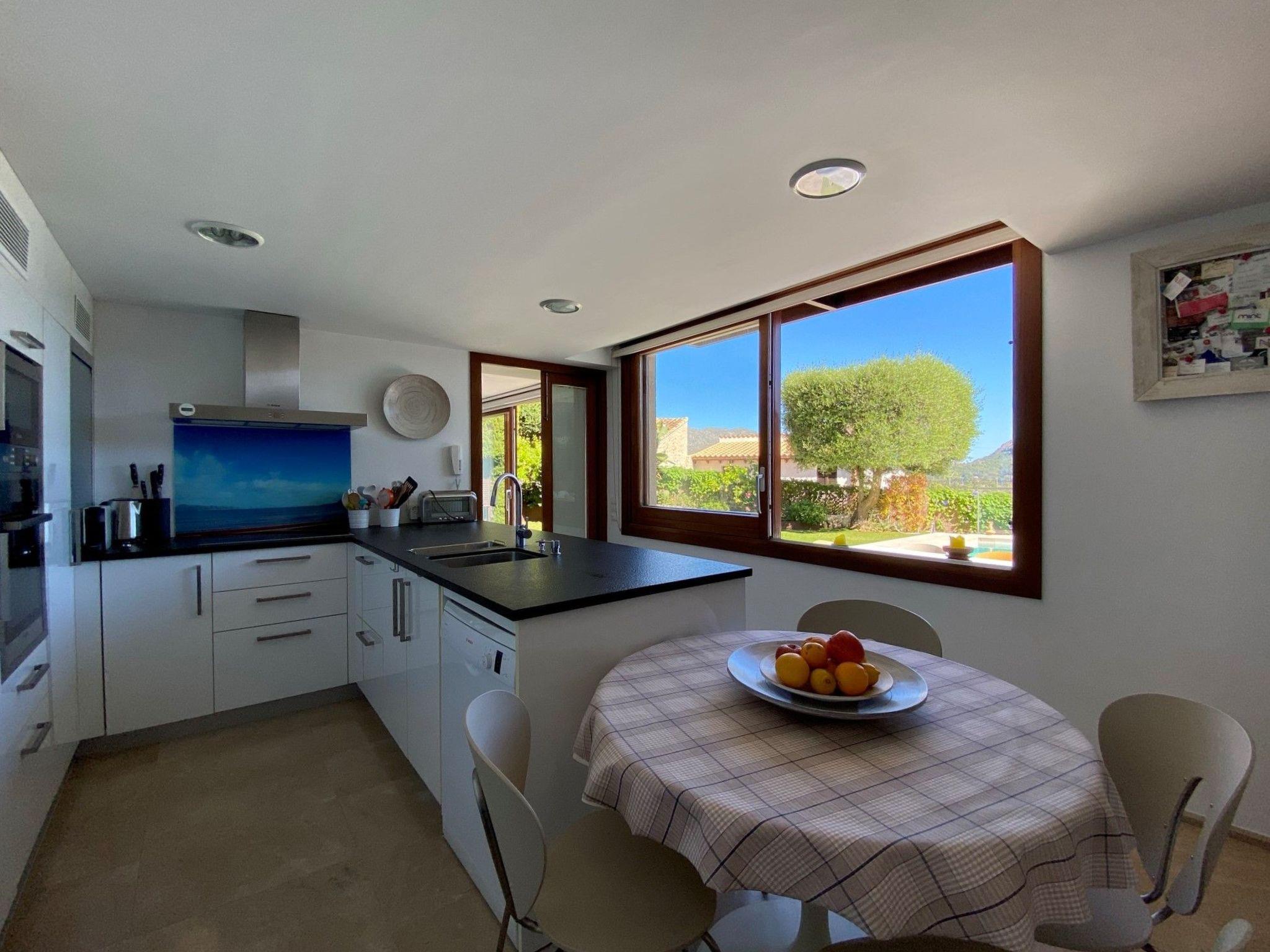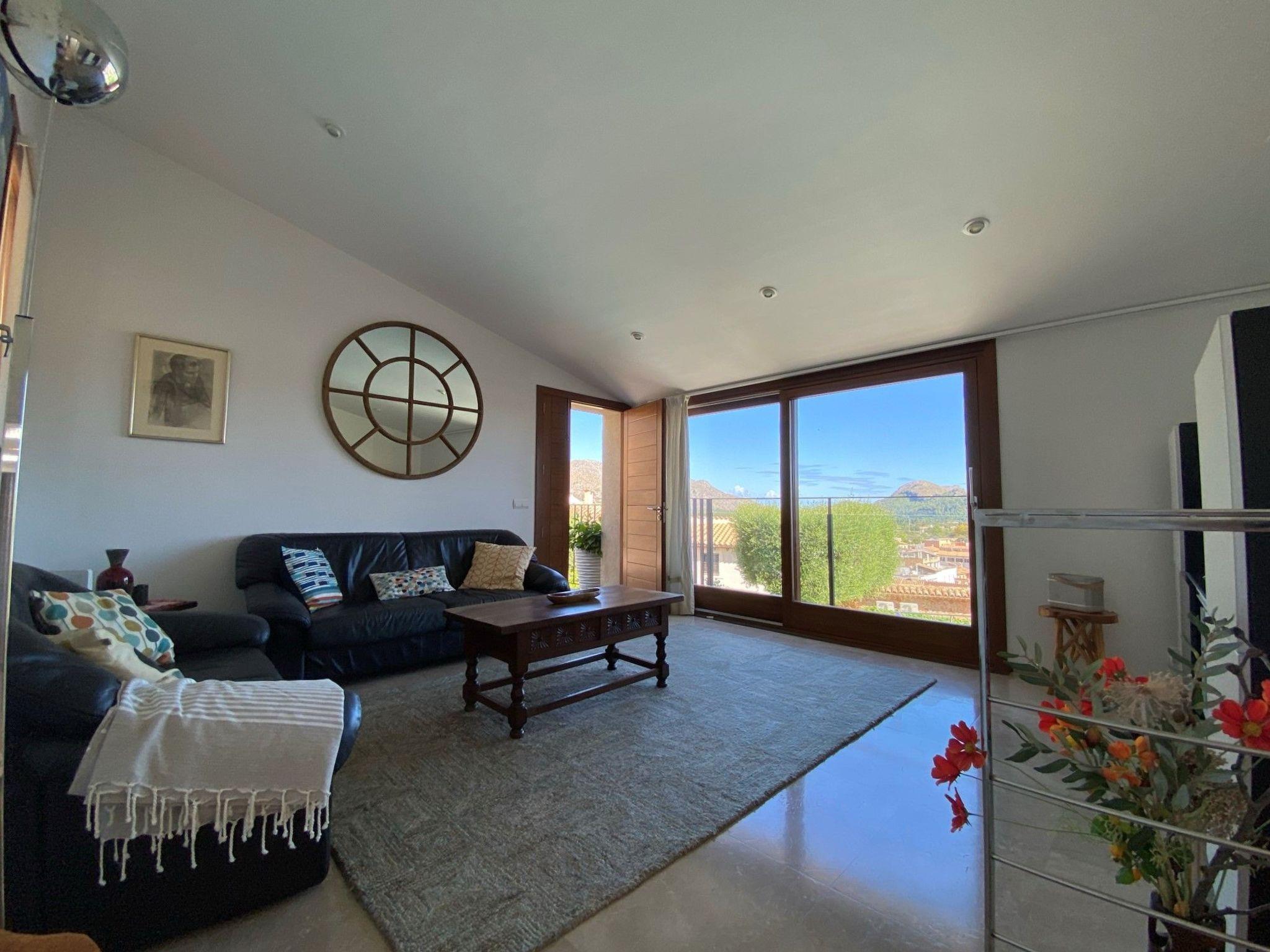 New house located at the top of Pollensa, with views to the bay of Pollensa and Alcudia. Fully equipped with quality furnishings for exquisite comfort during your stay on the island. The house has two levels, equipped with air conditioning in all rooms, living room with comfortable sofas and satellite TV, DVD player, radio and CD player. Fully equipped kitchen with high quality appliances, induction cooker, multipurpose microwave, oven, fridge/freezer. Master bedroom with king size bed. One single bedroom, plus a sofa bed that sleeps 1 or two people. A cot is also available if required.