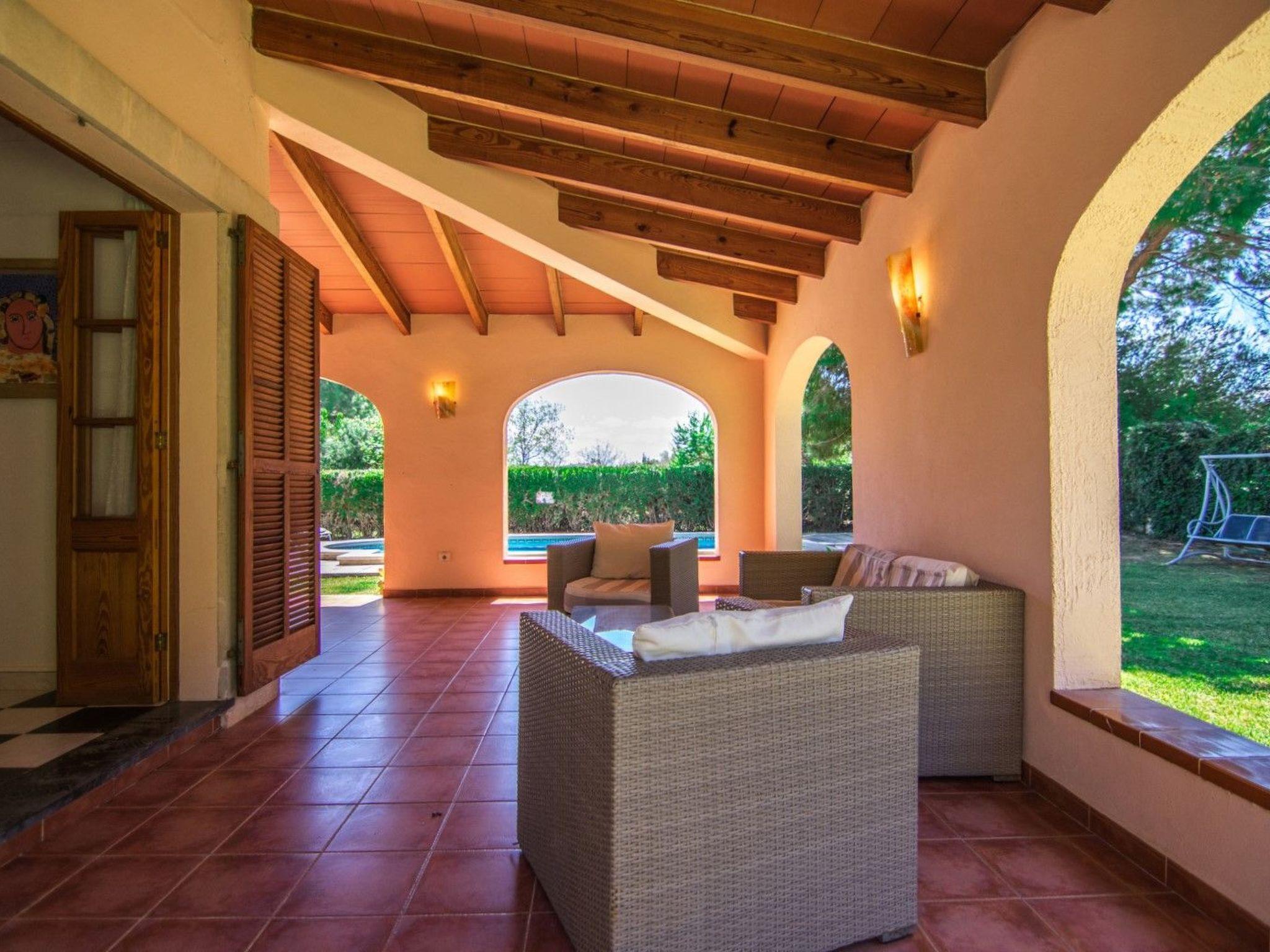 The house is on one level and has a large arched porch, which makes it different. The main entrance is under this porch and leads directly into the living room, equipped with sofas, table and chairs for 6 people, satellite TV, stereo and DVD. Just to the right is the semi-open kitchen with a breakfast bar, fully equipped with gas hob, electric oven, microwave, dishwasher, fridge, freezer and all the necessary cooking utensils. from the same living/dining room, a corridor in front leads to the bedroom area, to the left we have the first double bedroom equipped with 2 single beds of 0.90 wide. to the left a spacious bathroom, with bathtub, wc, bidet and washbasin. Then to the right there is another double bedroom with fitted wardrobe and equipped with 2 single beds of 0.90 cm wide, which has an en-suite bathroom equipped with shower, washbasin and w.c. To the left is the large bedroom, equipped with king size bed and fitted wardrobes. All the bedrooms have hot and cold air conditioning, with beautiful exterior views overlooking the garden, and the whole house has wifi. TOURIST SERVICES AVAILABLE - Own restaurant services, including breakfast only, half board or full board. The services can be provided either in the house where you are staying or in the restaurant itself. - Laundry and dry-cleaning services, which include washing and ironing of clothes, bed linen, guests' personal clothing, etc. - Regular cleaning of the property. This service is provided on alternate days, unless it is required on a daily basis. - Car, motorbike, scooter, quad, bicycle, etc. rental services. - Guide services, which include excursions, guided activities, provision of information on points of interest, tourist assistance, lunch and dinner accompaniment... - Advice on places of interest, whether cultural, scenic, beaches, as well as local products and handicrafts, etc. - Medical, hospital and security services 24 hours a day, with personalised assistance and accompaniment to the relevant institutions or organisations. - Intermediation services. - Other services are available, such as: the custody of the client's luggage, the management of reservations, daily press delivery service, among others.
