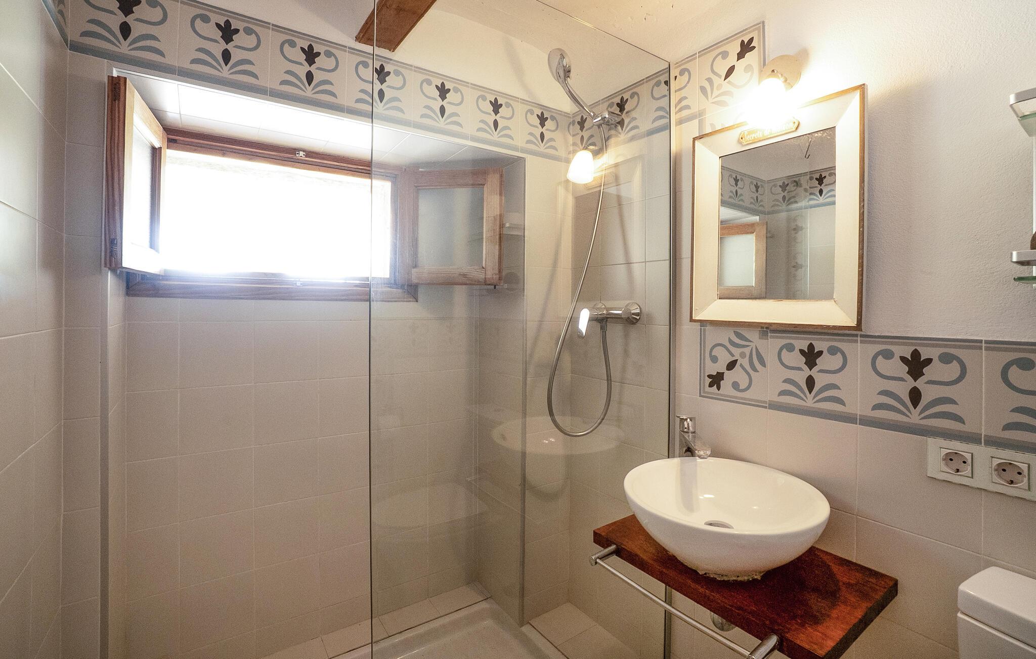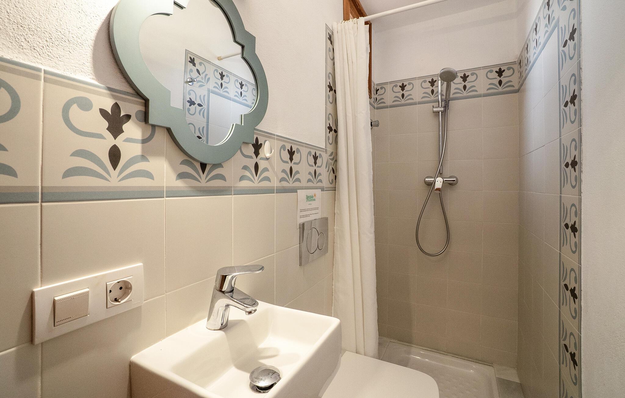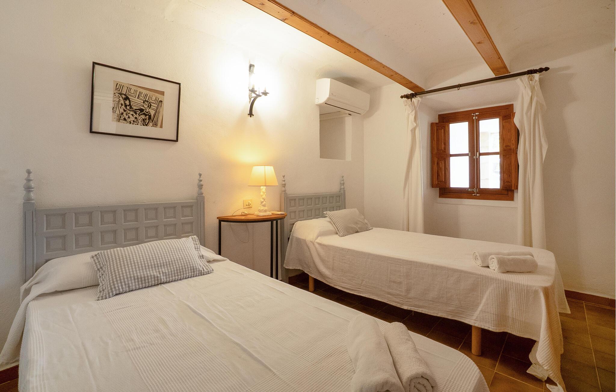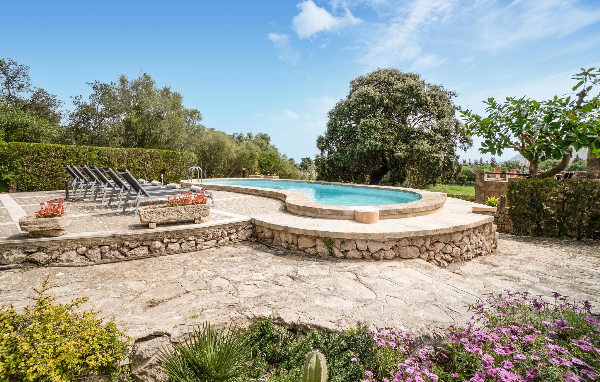 Denne smagfuldt indrettede, traditionelle naturstensfinca inviterer jer til en afslappende ferie i sine lyse og charmerende rum. Tilbered mallorcinske specialiteter i det veludstyrede køkken, og nyd dem ved det rustikke spisebord. Slut dagen af med et glas vin på den komfortable sofa, og stream jeres yndlingsserie.