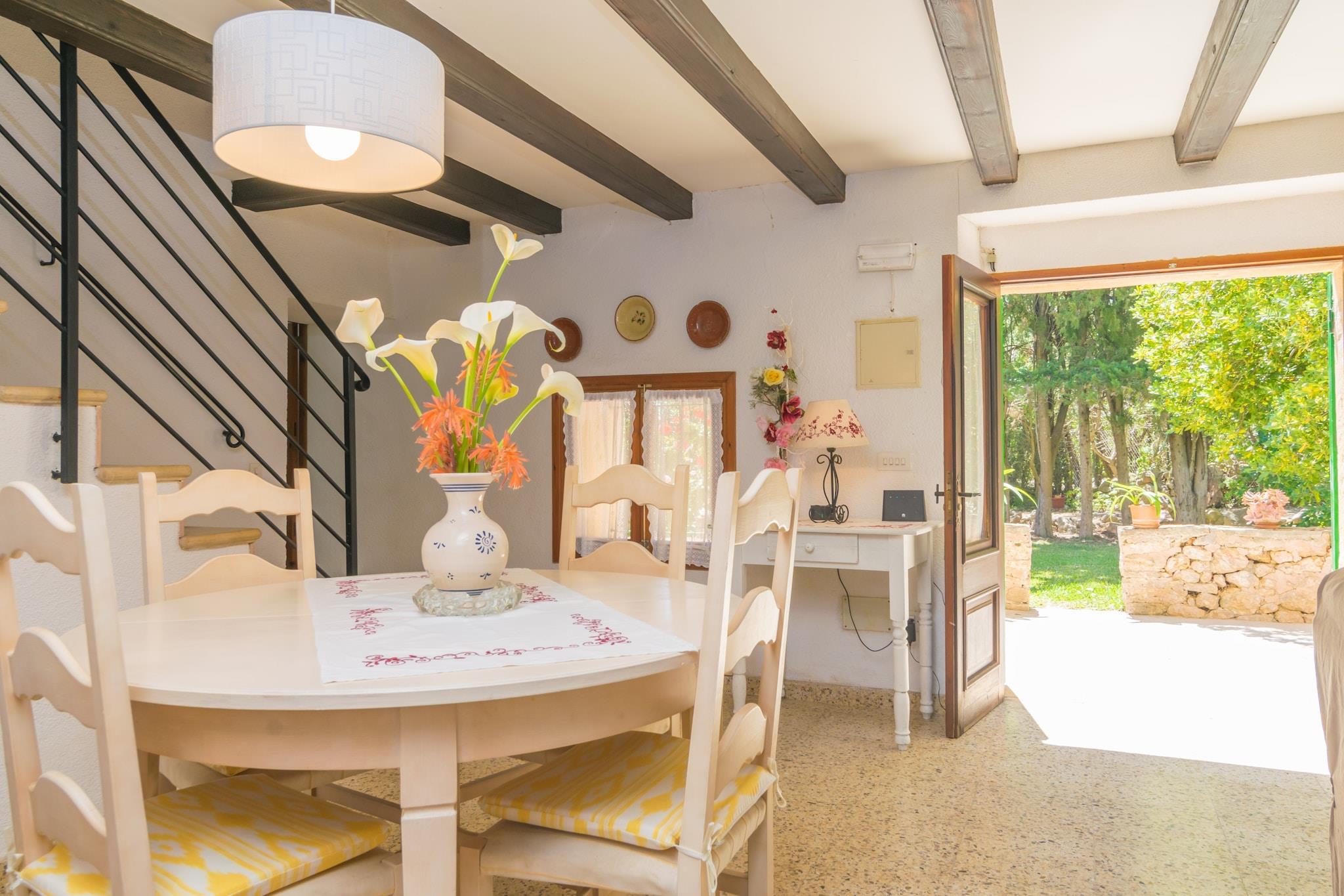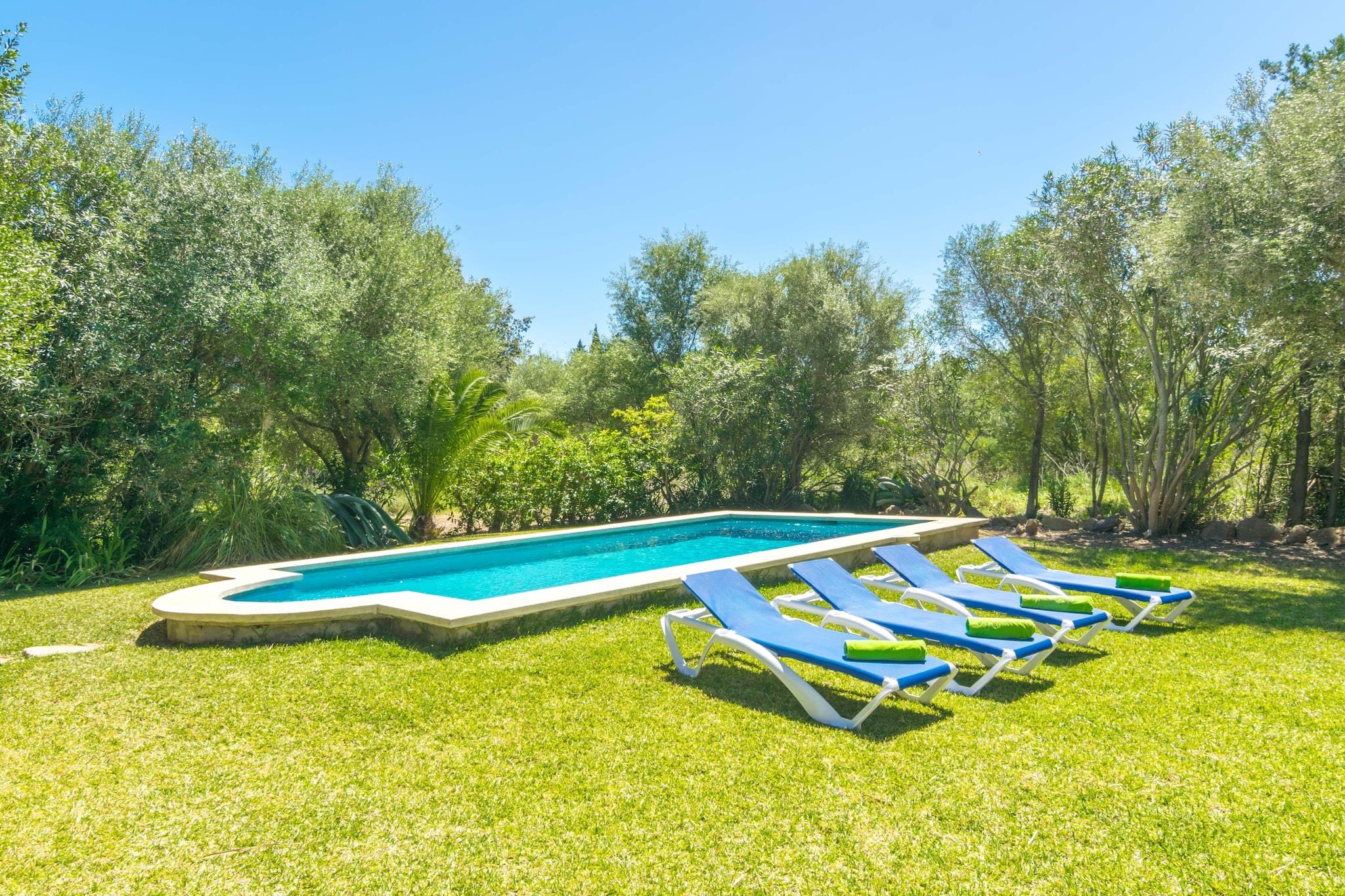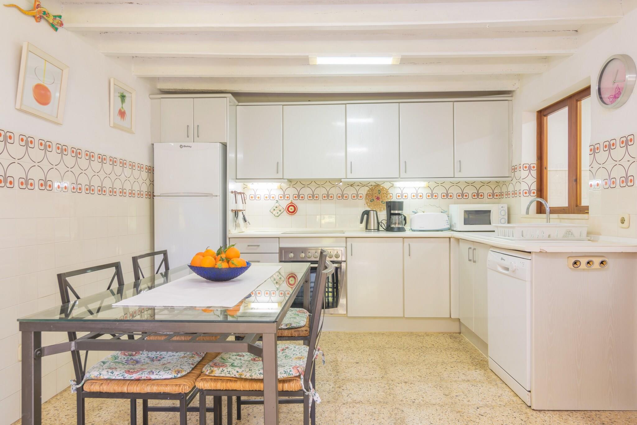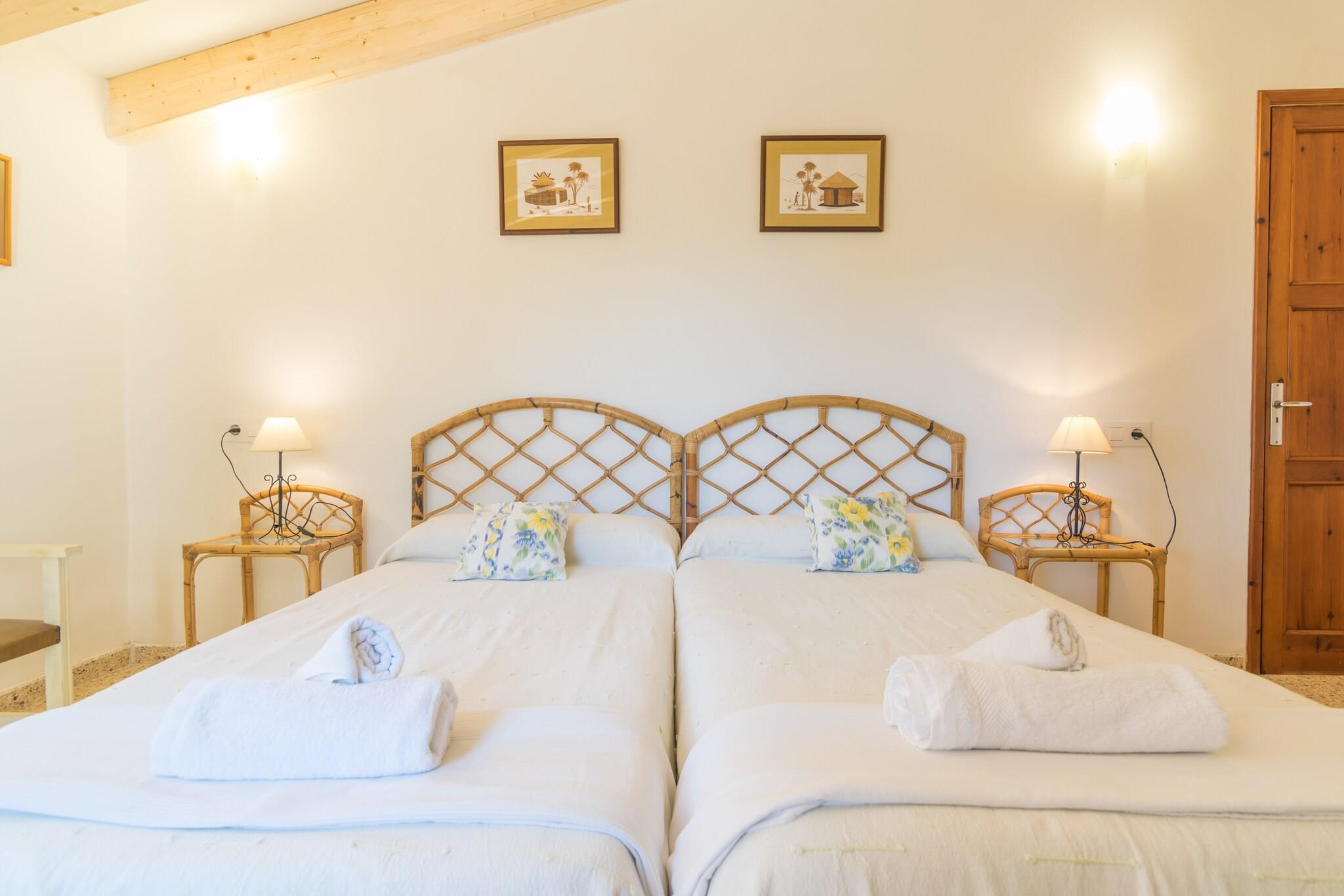 Charmerende Rustik Retreat Træd ind i denne villa i mallorcansk stil, hvor rustik charme møder moderne komfort. Husets træbjælker, bevarede antikke møbler og dekorative detaljer afspejler autentisk ø-karakter. Den rummelige stue/spisestue inviterer til afslapning med satellit-tv, en imponerende skorsten og hyggelige siddepladser. Det fuldt udstyrede køkken omfatter en keramisk kogeplade, ovn, spisebord, vaskemaskine og strygefaciliteter - perfekt til at tilberede måltider derhjemme. To soveværelser, et med dobbeltseng og et med to enkeltsenge, tilbyder hver især en-suite badeværelser, AC og terrasser. En barneseng og høj stol er tilgængelige på anmodning for familier, der rejser med små. Udendørs afslapning Nyd en fredelig dag i den indhegnede have, komplet med en 7 x 5 m pool, liggestole og frodig græsplæne til afslapning eller leg. Den møblerede veranda og grillpladsen er perfekte til alfresco-måltider, mens det omkringliggende privatliv sikrer et uforstyrret ophold. Bassinets dybde varierer fra 1 til 1,8 meter, hvilket giver plads til både voksne og børn. Førsteklasses beliggenhed Ejendommen ligger tæt på Tramuntana-bjergkæden og tilbyder adgang til vandre- og cykeleventyr, mens byen Pollensa kun ligger 4,6 km derfra for dagligvarer, spisning og lokal charme. Strande, herunder Puerto de Pollensa og Cala Sant Vicens, er inden for en kort køretur, mens øens skjulte hjørner venter på udforskning i bil. Golfentusiaster kan nyde Pollensa Club de Golf kun 7,9 km væk.