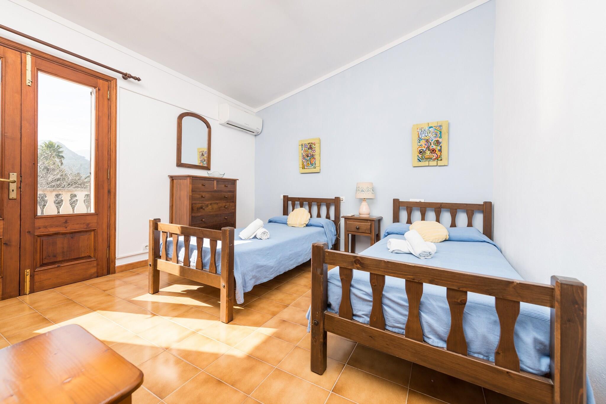 Charmerende udendørs tilflugtssted Slap af i den private 8 x 4 m klorpool omgivet af græsplæne og 5 liggestole. Den møblerede veranda med grill, opholdsområde og bordtennis tilbyder den perfekte plads til måltider, drinks eller spil. Den indhegnede ejendom giver privatliv med naboer i nærheden. Rummelig Indvendig Living Villaens opholds-, spise- og køkkenområde i åbent plan har to sofaer, satellit-tv, dvd og et fuldt udstyret køkken med keramisk kogeplade og ovn. Ovenpå tilbyder fire soveværelser med aircondition (to dobbeltværelser, to tvillinger) komfort, to med terrasser. To badeværelser, en barneseng, høj stol, vaskemaskine, strygejern og strygebræt fuldender pladsen. Ideel beliggenhed i nærheden Kun 900 m fra Pollenças historiske centrum kan du nyde barer, restauranter, supermarkeder og et apotek. Vandre- og cykelstier starter i nærheden, med Puerto de Pollença-stranden 7 km væk og Golf Pollença kun 3 km derfra. Husdyr ikke tilladt; begivenheder forbudt.
