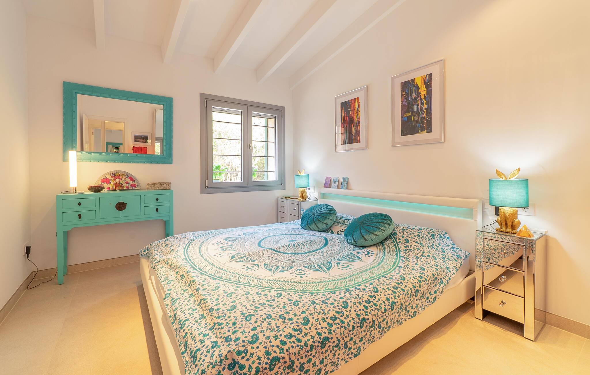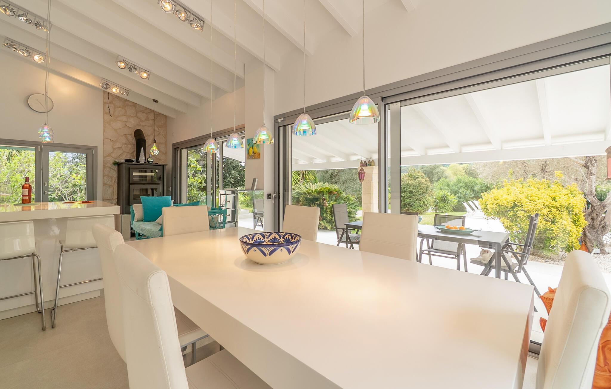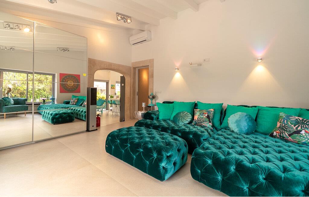 Beliggende i det rolige landskab og alligevel kun få minutters kørsel fra landsbyens torv og gode indkøbsmuligheder, byder denne smukke finca jer velkommen. Kom ind og bliv inspireret af det lyse og friske interiør. Fremstil middelhavsretter i det indbydende køkken, sæt jer ved det stilfulde spisebord, og efter en lang dag kan I gøre det behageligt i den ekstravagante sofa til en afslappende filmaften.