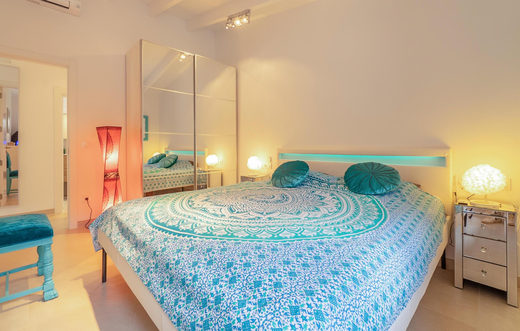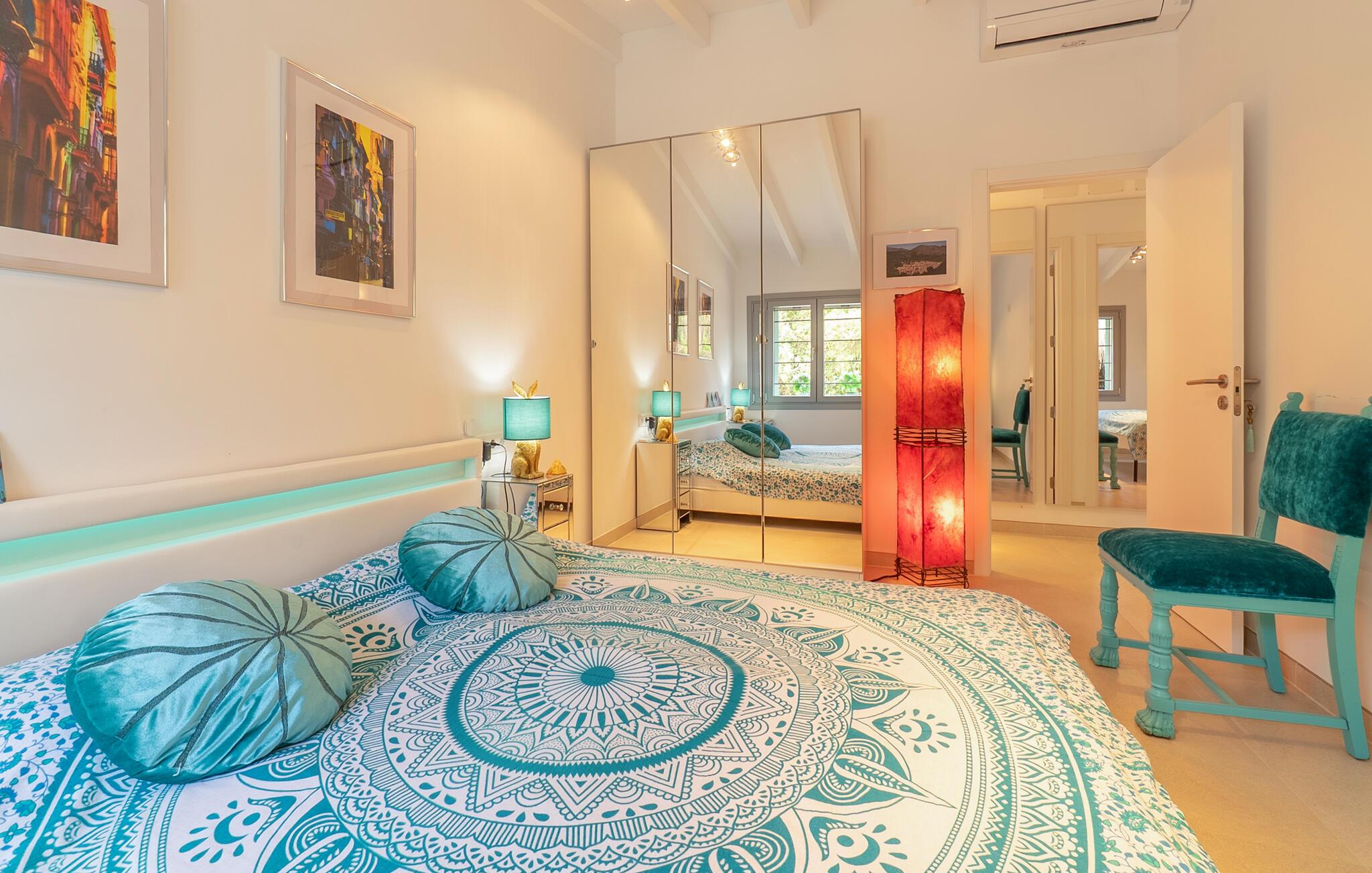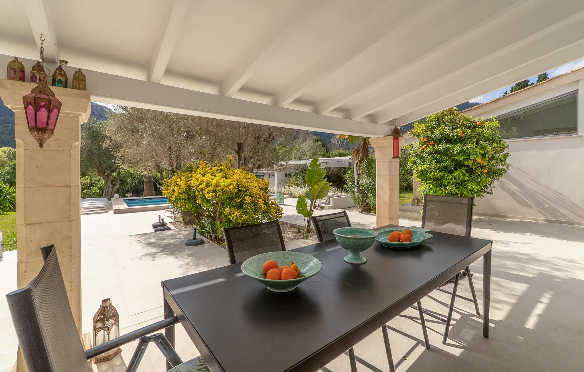 Beliggende i det rolige landskab og alligevel kun få minutters kørsel fra landsbyens torv og gode indkøbsmuligheder, byder denne smukke finca jer velkommen. Kom ind og bliv inspireret af det lyse og friske interiør. Fremstil middelhavsretter i det indbydende køkken, sæt jer ved det stilfulde spisebord, og efter en lang dag kan I gøre det behageligt i den ekstravagante sofa til en afslappende filmaften.
