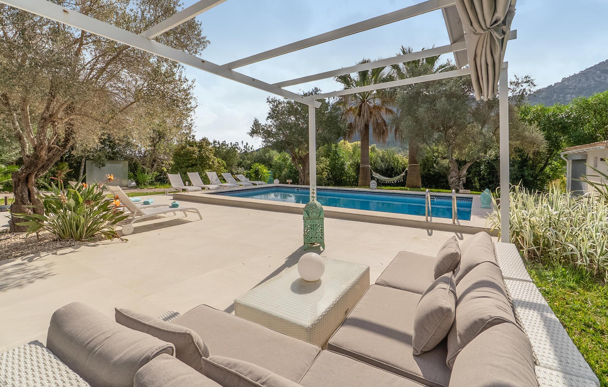 Det velholdte, afsidesliggende udendørsområde er perfekt til at nyde middelhavsklimaet fuldt ud fra morgen til aften. Tag en afslappende svømmetur i poolen i den milde morgensol, og fornøj jer selv med friskpresset appelsinjuice til morgenmad på den overdækkede terrasse. Nyd den fredfyldte atmosfære i hængekøjen eller den balinesiske seng og nyd de lune sommernætter med vin og stearinlys i den elegante udendørs lounge.