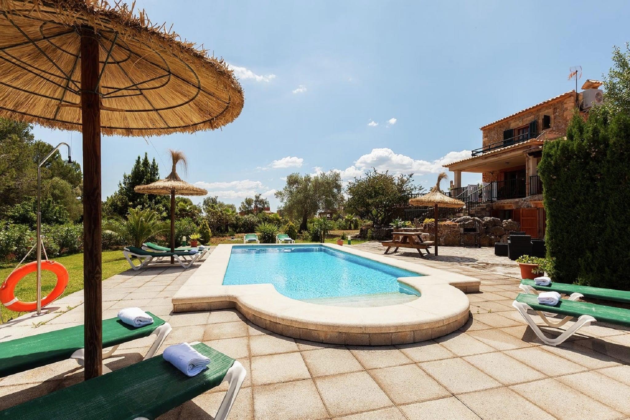 Stort og komfortabelt stenhus på tre etager. Huset ligger 3 km fra strandene i Pollensa-bugten og 4 km fra den maleriske og livlige by Pollensa. Dette hus er perfekt for dem, der sætter pris på at bo i et roligt område og samtidig være tæt på byen og stranden. Omkring huset er mange terrasser, en stor privat swimmingpool, masser af havemøbler og grill. Interiør består af 3 soveværelser og 2 badeværelser; plus en stor stue og et fuldt udstyret køkken.Huset har aircondition og wifi.