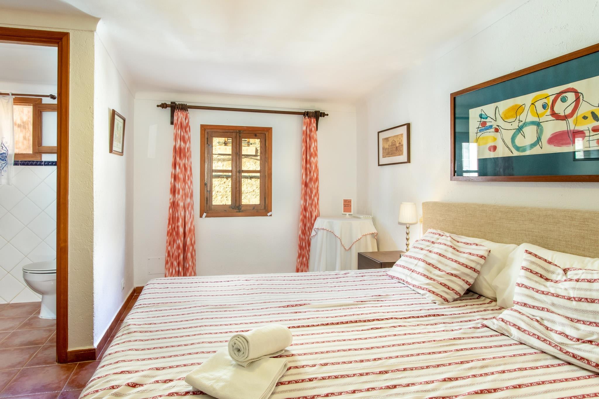 Dette charmerende og rummelige hus byder på 2 soveværelser, der komfortabelt kan rumme op til 4 gæster inden for 105 m² af gennemtænkt udformet plads. Ejendommen er beliggende i hjertet af Pollensa og kombinerer en hyggelig atmosfære med moderne bekvemmeligheder. Gæsterne kan nyde en 5 m² stor terrasse, en grill og en pejs til afslappende aftener. Huset er udstyret med Wi-Fi, aircondition, vaskemaskine, tørretumbler og satellit-tv på forskellige sprog. Der er også udendørs parkering og ventilator, hvilket sikrer bekvemmelighed og komfort i familievenlige omgivelser. Ejendommen er ideelt placeret for at udforske områdets attraktioner. Golfentusiaster kan besøge Golf Club Pollensa, kun 4 km væk, mens strandelskere har flere muligheder i nærheden, herunder Cala Barqués og Playas Puerto Pollensa, begge 7 km væk, og Cala San Vicente, 8 km væk. Familier kan nyde en dag i vandlandet Hidropark, 11 km fra huset, eller besøge den historiske by Alcudia, også 12 km derfra. Naturentusiaster vil sætte pris på nærheden til naturreservaterne Lluc og Parc Natural de s´Albufera. For dem, der søger et længere eventyr, ligger den smukke Playas de Muro-strand 23 km derfra, og Aeropuerto Son San Joan ligger kun 59 km fra ejendommen. Det uafhængige køkken, der er udstyret med en glaskeramisk kogeplade, byder på alt det nødvendige for at tilberede måltider, herunder køleskab, mikroovn, fryser, kaffemaskine og elkedel. Med rigelig plads, moderne bekvemmeligheder og en central beliggenhed er dette hus det perfekte tilflugtssted for familier eller små grupper, der søger at nyde charmen ved Pollensa og dens omgivelser.
