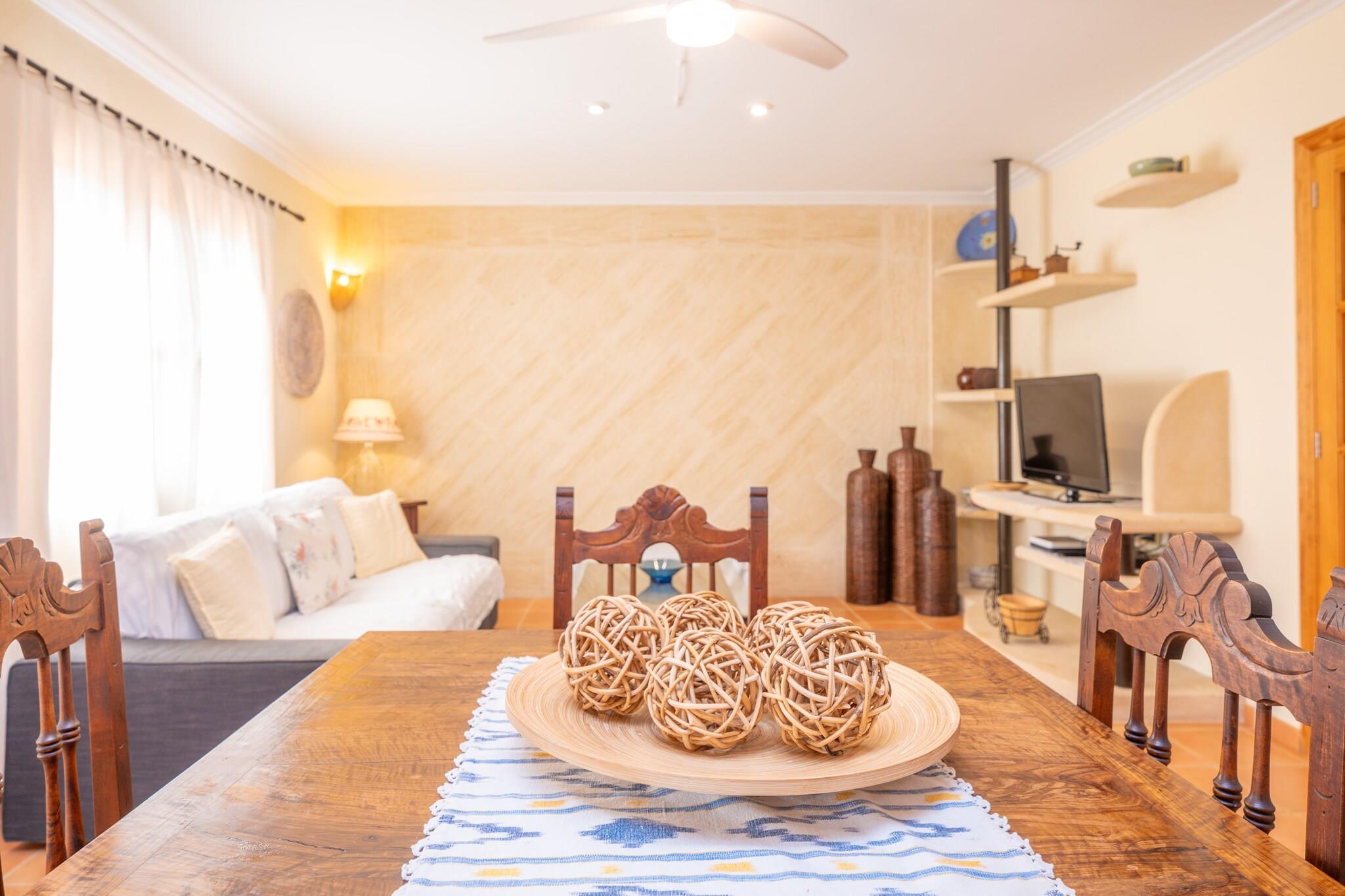 U kunt genieten van de charmante buitenkant van dit huis, aangezien het terrassen, veranda's en tuinen heeft. Op het grasveld dat een deel van het huis omringt, kunt u zonnebaden op de 4 ligstoelen of spelen met de kleintjes in het huis. Het terras, ingericht met twee fauteuils en een gezellige bank, is ideaal om een ??boek te lezen of te genieten van een goed glas Mallorcaanse wijn. De volledig ingerichte veranda voor lunch of diner buiten is ideaal voor uw feest met familie en vrienden of voor het bereiden van een heerlijke barbecue. De privacy van het huis is totaal en het terrein is omheind. Ongeveer 210 m2 huis, verdeeld over twee verdiepingen, zullen uw vakantie tot een paar geweldige dagen van ontspanning en rust maken. Op de begane grond vindt u een slaapkamer met een tweepersoonsbed en twee badkamers met douche; één van hen buitenkant. Als u met een baby reist, voorzien wij u van een wieg en een kinderstoel. De woonkamer is open naar dezelfde ruimte als de eetkamer, daarin vinden we een bank waar u uw favoriete serie op satelliettelevisie kunt kijken, daarnaast staat een comfortabele tafel met stoelen waar u met het gezin kunt eten en dineren. De keuken, onafhankelijk, is ruim en comfortabel, heeft een keramische kookplaat en beschikt over al het benodigde keukengerei om comfortabel uw beste gerechten te kunnen bereiden. Op de eerste verdieping van dit prachtige huis vinden we nog twee slaapkamers; een slaapkamer met een tweepersoonsbed en een slaapkamer met twee eenpersoonsbedden, beide met kledingkast en ventilator. Er is een derde badkamer met ligbad. Op deze verdieping vindt u ook een terras met prachtig uitzicht op het landschap en de bergen. Pollença is een prachtig stadje aan de voet van het Tramuntana-gebergte, dat voornamelijk wordt bewoond door lokale en traditionele mensen. Het heeft een haven op ongeveer 7 km afstand met prachtige stranden en een rijk commercieel en horecaleven waar u door de winkels kunt slenteren of de typische gerechten kunt proeven in de verse visrestaurants of typisch Mallorcaanse gerechten. De geschiedenis van Pollença kun je ervaren terwijl je door de oude binnenstad wandelt, die jarenlang intact is gebleven. U kunt gaan wandelen en een bezoek brengen aan het Heiligdom van Lluc, de stad Llucalcari of Escorca, verborgen in onze Sierra. Voor eventuele extra kosten kunt u contact opnemen met de adverteerder. Wij accepteren geen huisdieren. Het vieren van evenementen is niet toegestaan. Er is buiten parkeergelegenheid voor 2 auto's. Afstanden Strand: 5,5 km - Cala Sant Vicenç Luchthaven: 64,0 km - Son Sant Joan Golfbaan: 4,4 km - Golf Pollença Stad: 1,3 km - Pollença Treinstation: 15,4 km - station Sa Pobla Bushalte: 0,5 km - Ctra. Pollença-Pto. Pollença, Pollença Veerboot: 14,8 km - Port d'alcudia Ziekenhuis: 13,8 km - Juaneda Muro-ziekenhuis Toeristenvergunning: ETV/86 Verwarming (januari - december): 20 EUR/nacht (optioneel)