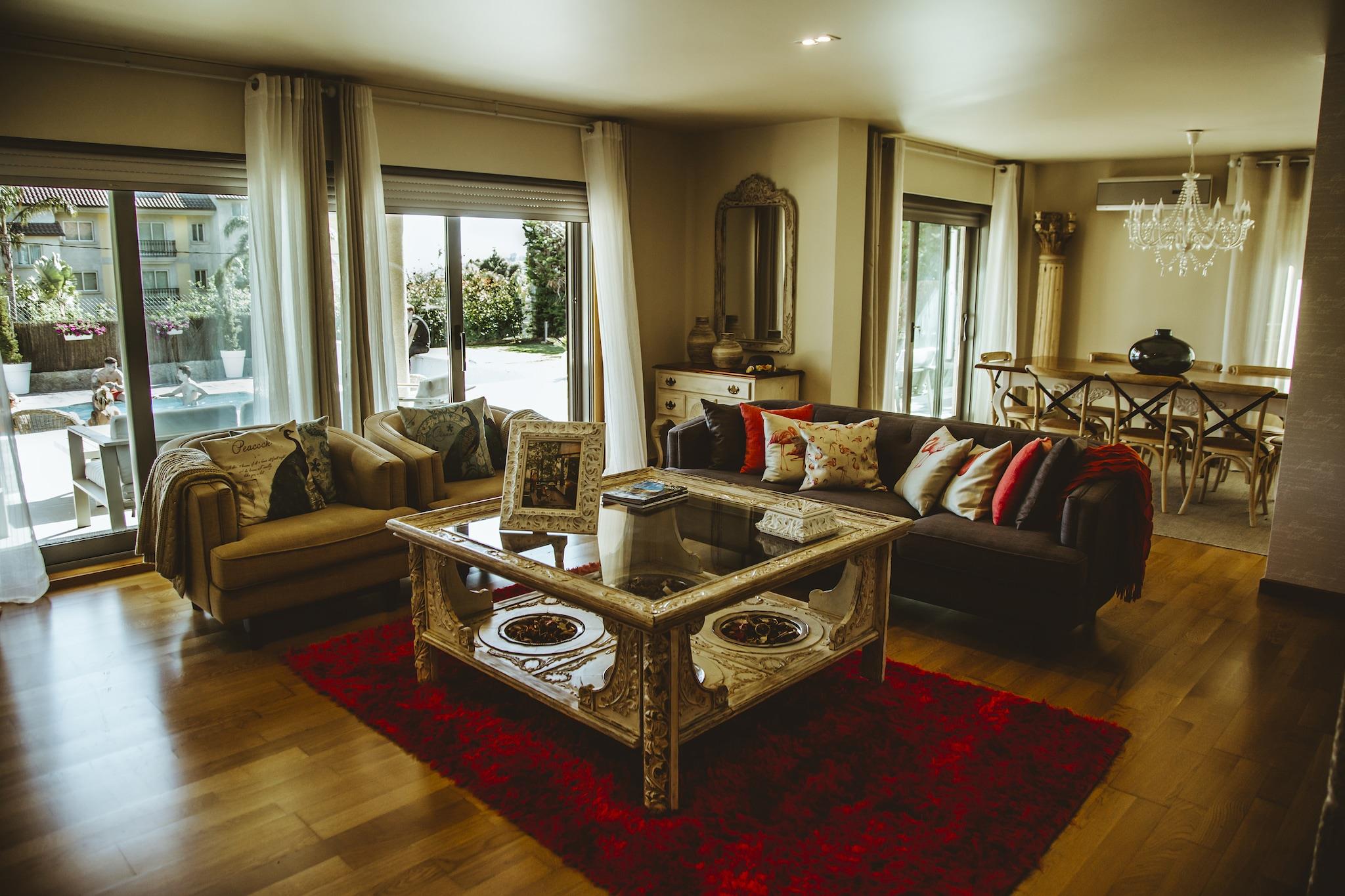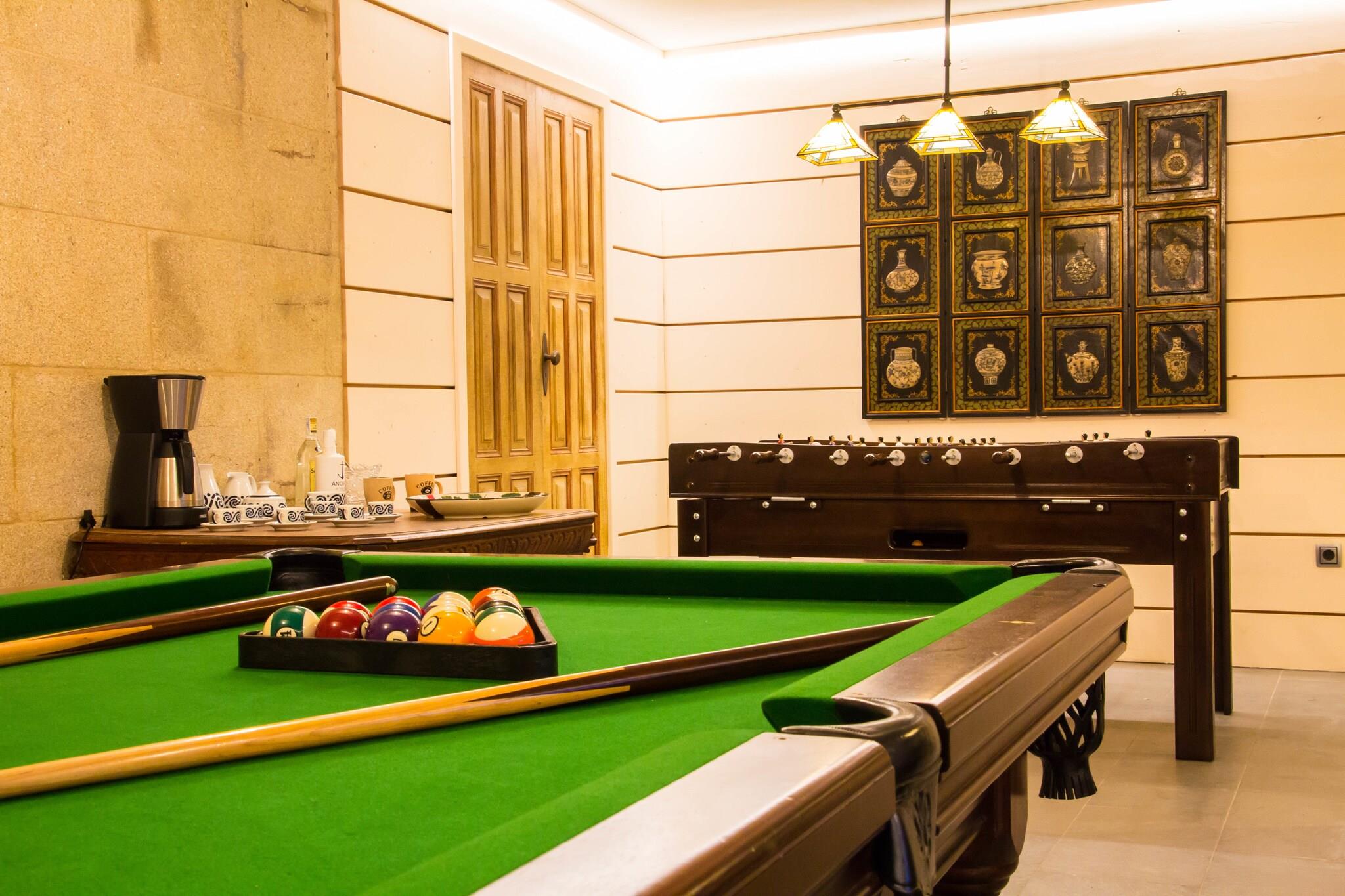 Denne smukke villa har en grund på 1100 kvadratmeter med have og swimmingpool. Den rummelige terrasse har havudsigt og giver adgang til tre af de fire soveværelser. Der er også et fritidsrum på 70 m2 med bordfodbold, billard, tv-stue og et fuldt fitnesscenter med det nødvendige udstyr til at holde sig i form. Der er Wifi i hele huset og en privat garage til to biler. Huset er beliggende i Sanxenxo kommune, hvor du kan lave mange aktiviteter som karting, vandsport, ridning, bådudlejning, besøg på øen Ons, Toxa Casino og de prestigefyldte golfbaner A Toxa og Monte Castrove. Det har et specielt mikroklima, som uden tvivl er det bedste klima i regionen. Smukke sandstrande som Montalvo, Bascuas, Silgar, Major, Paxariñas, Canelas, Caneliñas, Baltar og A Lanzada ligger kun få km væk. Det perfekte hus på det perfekte sted for en afslappende ferie og for fuldt ud at nyde solen, stranden, mad og galicisk gæstfrihed.