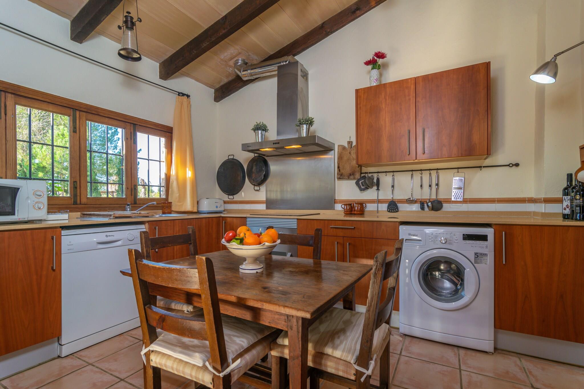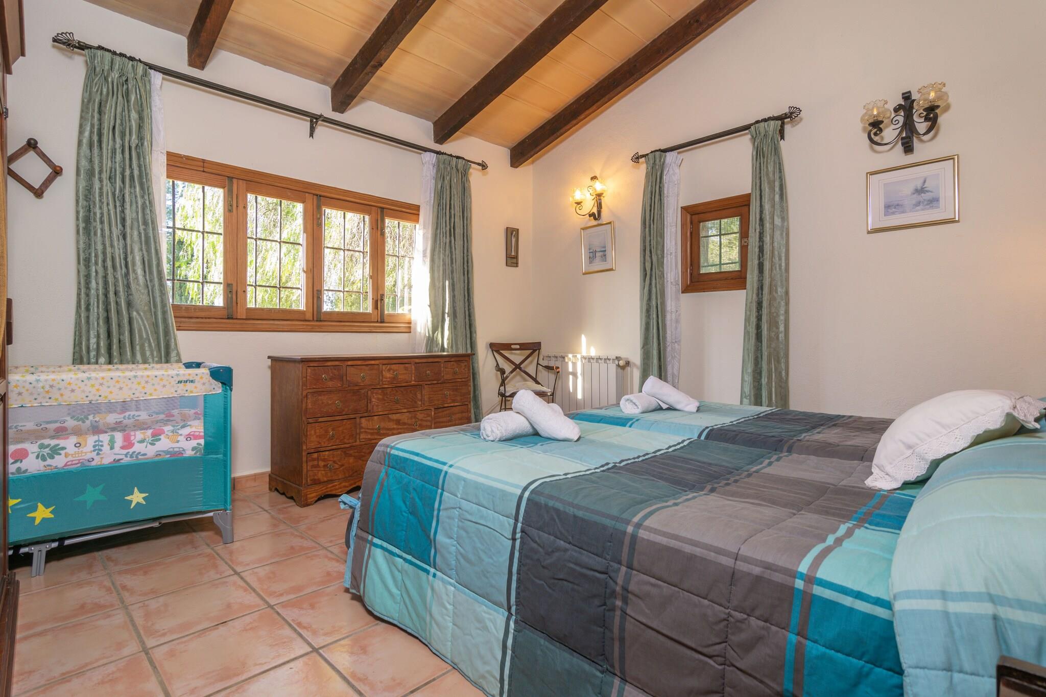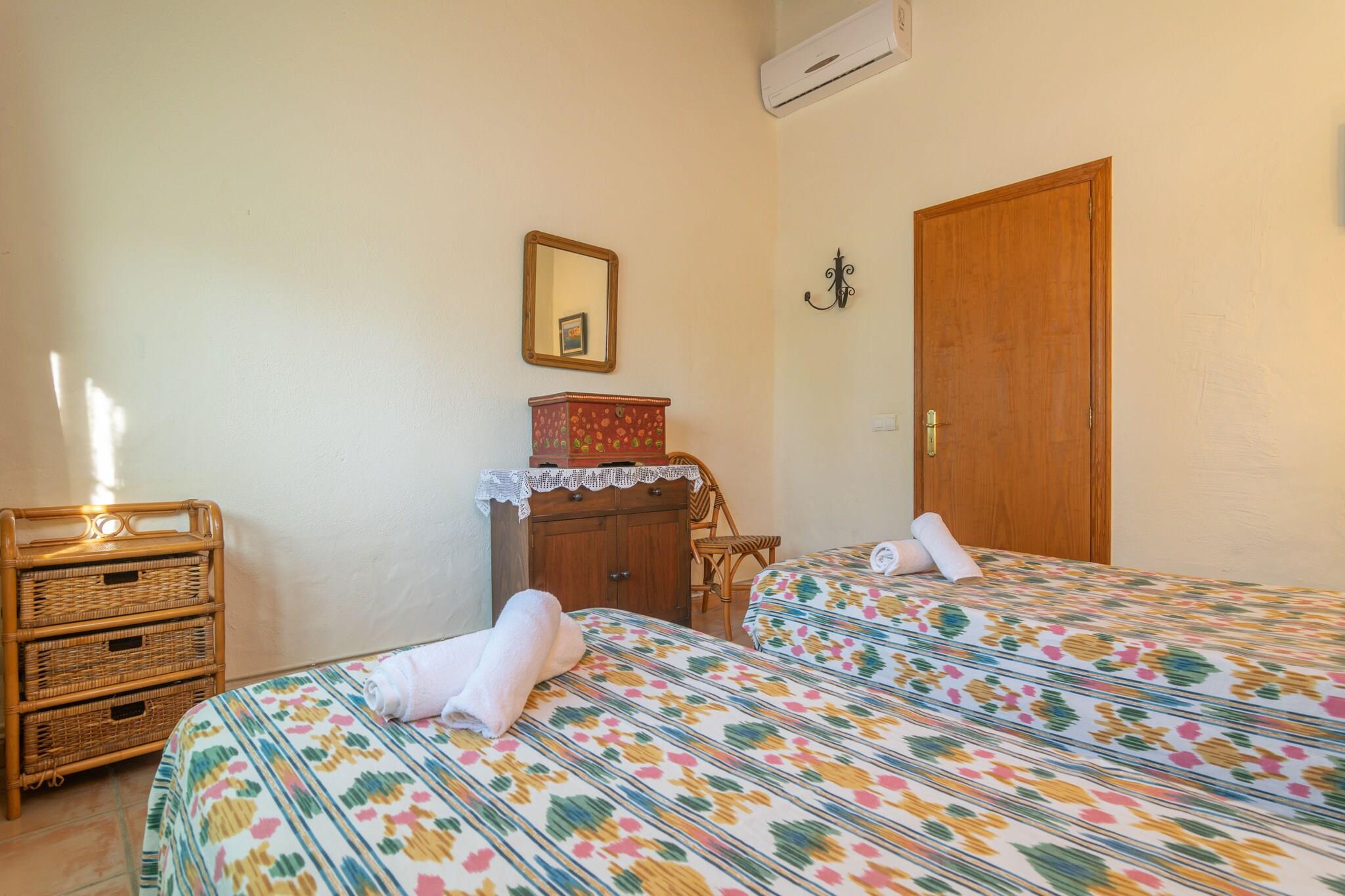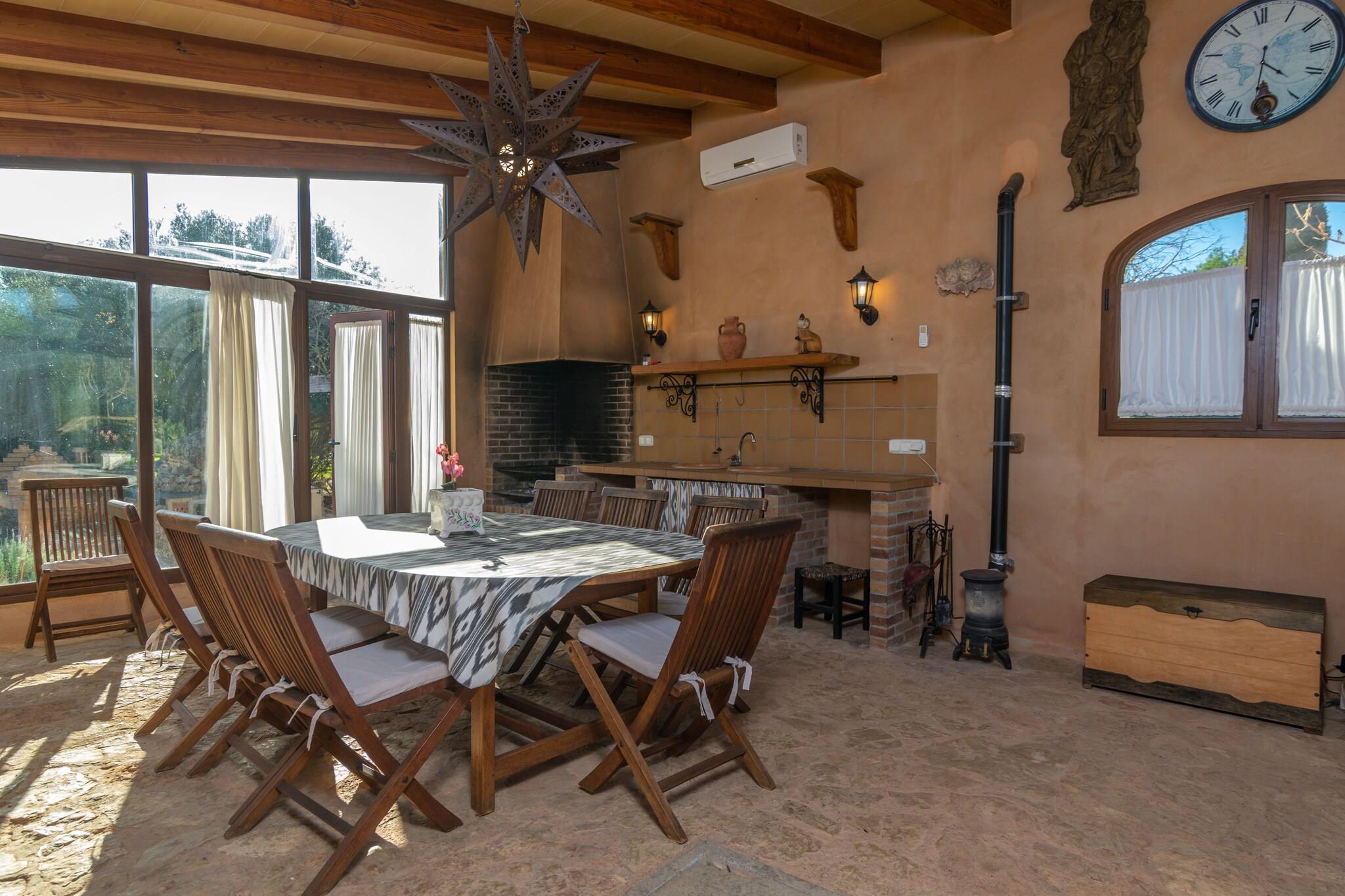 Na een leuke dag met het bezoeken van verschillende stranden op het eiland, is er niets beters dan terug te keren naar dit prachtige pand en te ontspannen in de ruime buitenkant. Ze kunnen afkoelen in het chloorbad van 11x5 meter en een diepte variërend van 0,5 tot 2 meter. Later kunt u zowel buiten als in het glazen bijgebouw met airconditioning een heerlijke barbecue bereiden en er zowel binnen als onder de veranda van genieten. Het terrein is omheind en de privacy is totaal. Bij binnenkomst van de woning vinden we de keuken voorzien van een keramische kookplaat en waar tevens de wasmachine staat. De 3 slaapkamers bevinden zich eveneens op de begane grond en zijn alle drie voorzien van twee eenpersoonsbedden en airco. Als u met uw baby reist, kunnen wij ook een kinderbedje en een kinderstoel ter beschikking stellen. Er zijn twee badkamers op de begane grond, één met douche en de andere met ligbad. Als we de trap opgaan, vinden we de ruime woonkamer met airconditioning waar u kunt ontspannen en naar de Smart TV kunt kijken. Het huis ligt op een landelijke locatie, omgeven door velden en rust. Prachtige stranden zoals Es Trenc liggen echter op slechts 19 km afstand. De dichtstbijzijnde stad, Porreres, biedt alle noodzakelijke diensten voor een zelfstandig verblijf, zoals restaurants, supermarkten en bars. U kunt ook andere nabijgelegen plaatsen bezoeken, zoals de Santuari de Cura, de Talaiot Capocorp Vell of zelfs naar Palma gaan en een middagje winkelen en bezienswaardigheden bekijken. De open haard is decoratief. Opmerking: deze huuraccommodatie accepteert geen klanten jonger dan 25 jaar, behalve in gevallen waarin het om een ??gezinsverblijf gaat. We hebben kopieën van het identiteitsbewijs van elke persoon nodig om de reservering te kunnen accepteren. Voor eventuele extra kosten kunt u contact opnemen met de adverteerder. Wij accepteren geen huisdieren. Het vieren van evenementen is niet toegestaan. Er is buiten parkeergelegenheid voor 5 auto's. Afstanden Strand: 19,3 km - Es Trenc Luchthaven: 39,8 km - Palma de Mallorca Golfbaan: 24 km - Golf Son Antem Stad: 8,7 km - Porreres Treinstation: 42,7 km - Palma de Mallorca Bushalte: 5,6 km - Porreres Veerboot: 47 km - Palma de Mallorca Ziekenhuis: 38,7 km - Son LlÃtzer-ziekenhuis Toeristenvergunning: ETV/7686 Op de Balearen geldt een toeristenbelasting, Ecotasa genaamd, die door de gast moet worden betaald. Het bedrag varieert tussen EURO 0,55 / per nacht per persoon in het laagseizoen en EURO 2,2 / per nacht per persoon in het hoogseizoen. Vanaf de negende dag wordt het met de helft verminderd. Personen onder de 16 jaar uitgesloten.