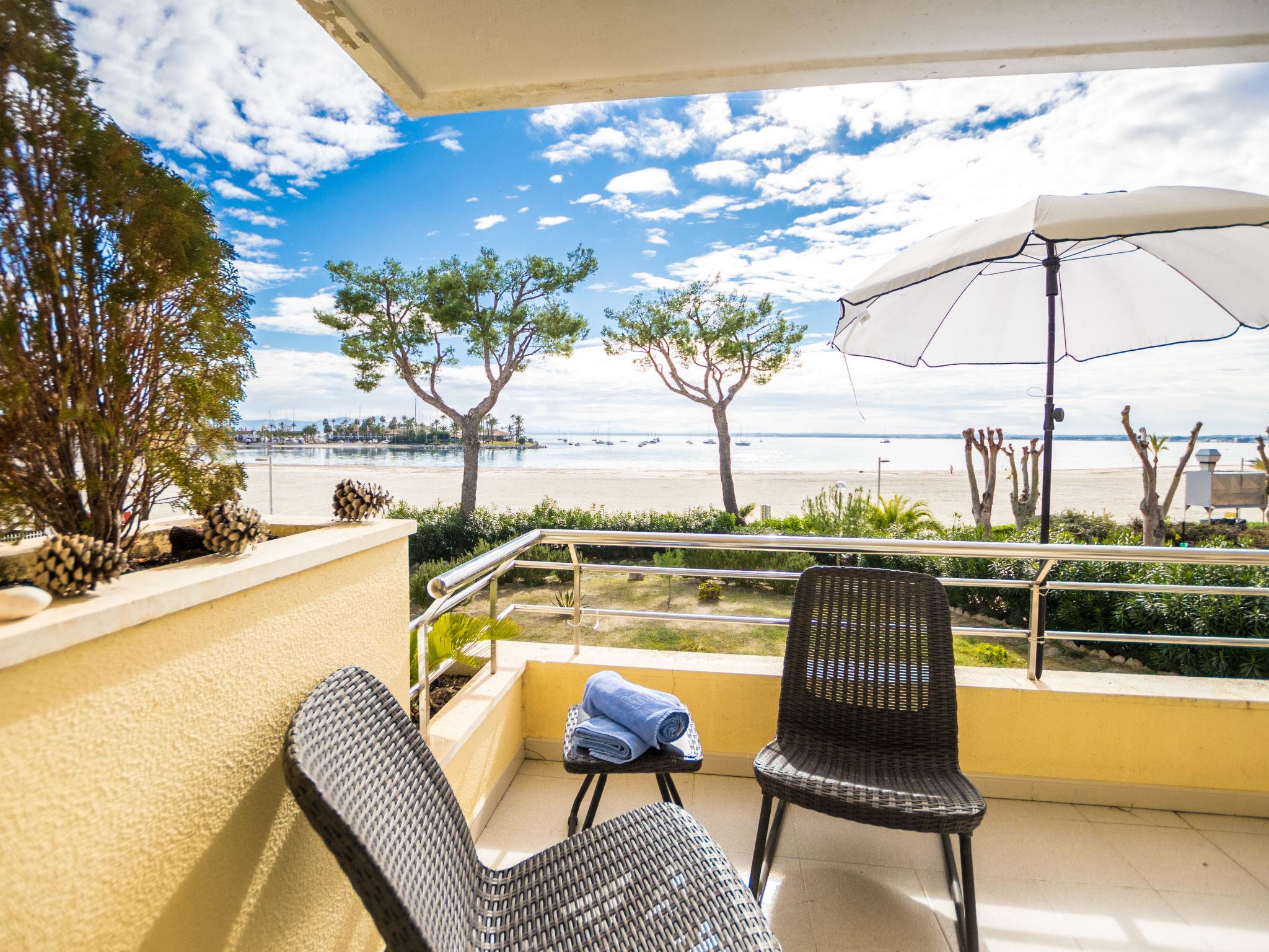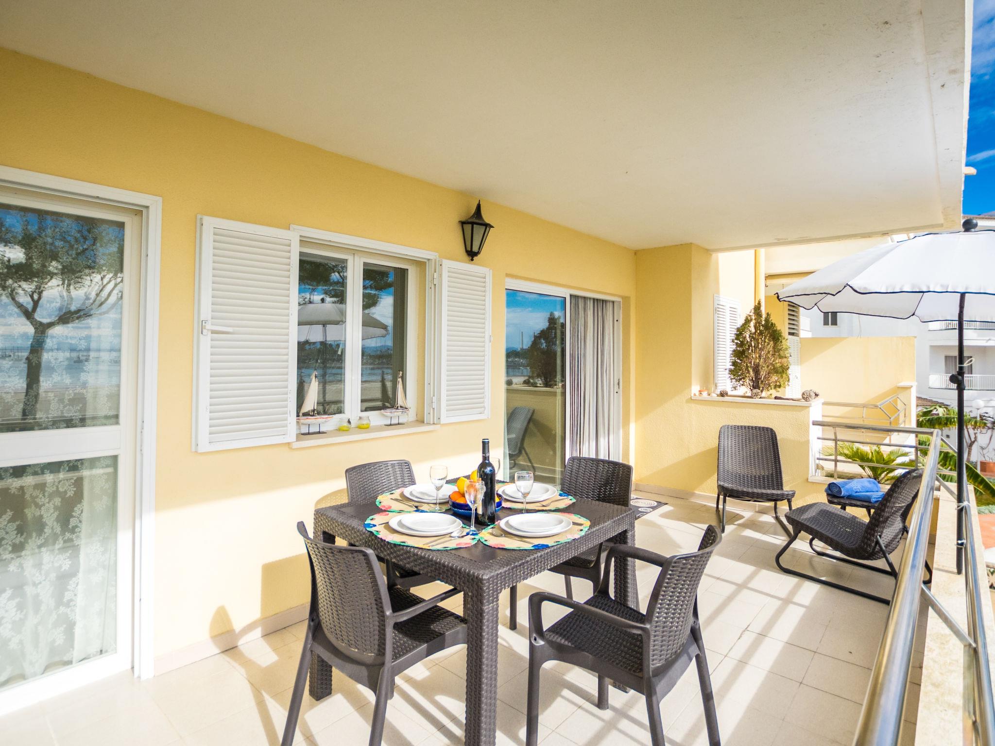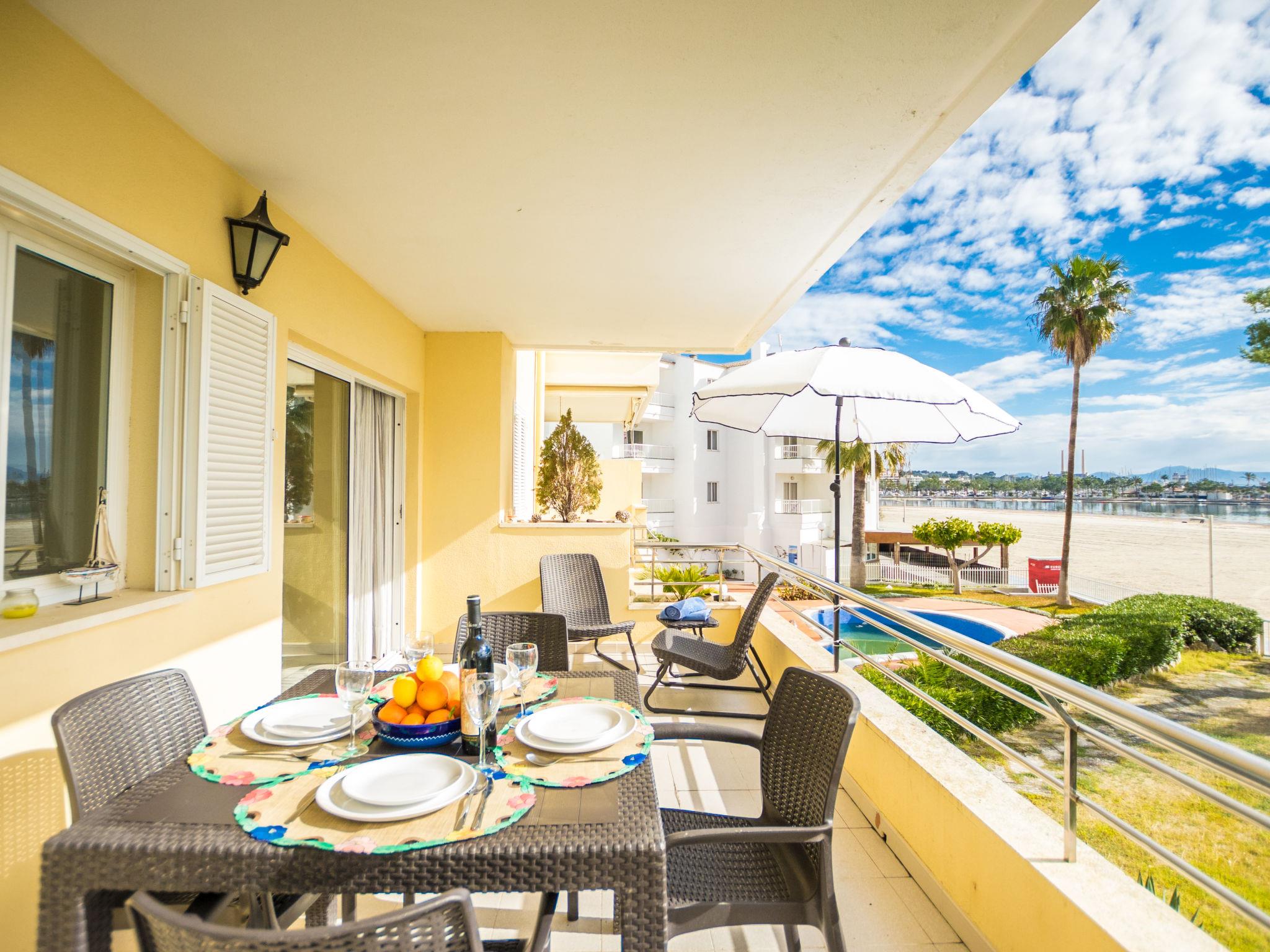 Port d'Alcúdia: Cosy, comfortable apartment block "Vista al Mar". In the centre of Port Alcudia, in a sunny position, excellent location: right in the centre but still quiet, 2 km from the edge of the forest, 10 m from the sea, 10 m from the beach, direct access to the beach. For shared use: natural garden. Outdoor shower. Private: arbour, pergola, terrace (9 m2). In the house: internet access, WiFi, air conditioning, washing machine. Parking at the house on the premises. Shop 15 m, grocery 50 m, supermarket 80 m, shopping centre 25 km, restaurant 5 m, bar 50 m, bakery 500 m, bicycle rental, pub garden 50 m, bus stop 60 m, sandy beach "Playa de Port Alcúdia" 15 m, rocky beach "Aucanada" 3.5 km. Sports harbour 200 m, marina 200 m, golf course (18 hole) 4.5 km, tennis 1 km, minigolf 600 m, walking paths from the house 1.8 km, cycle lane 1.5 km, children's playground 150 m. Nearby attractions: Ciudad Romana de Pollentia, Ermita de la Victoria, Alcúdia (Old Town). Well-known lakes can easily be reached: S'Albufera d'Alcudia. Hiking paths: Sa Talaia d'Alcúdia. Puig de Sant Martí. Please note: suitable for families, suitable for seniors. Object suitable for 4 adults. Loading and unloading of baggage is possible at the holiday house. Airfield 50 km from the property.
