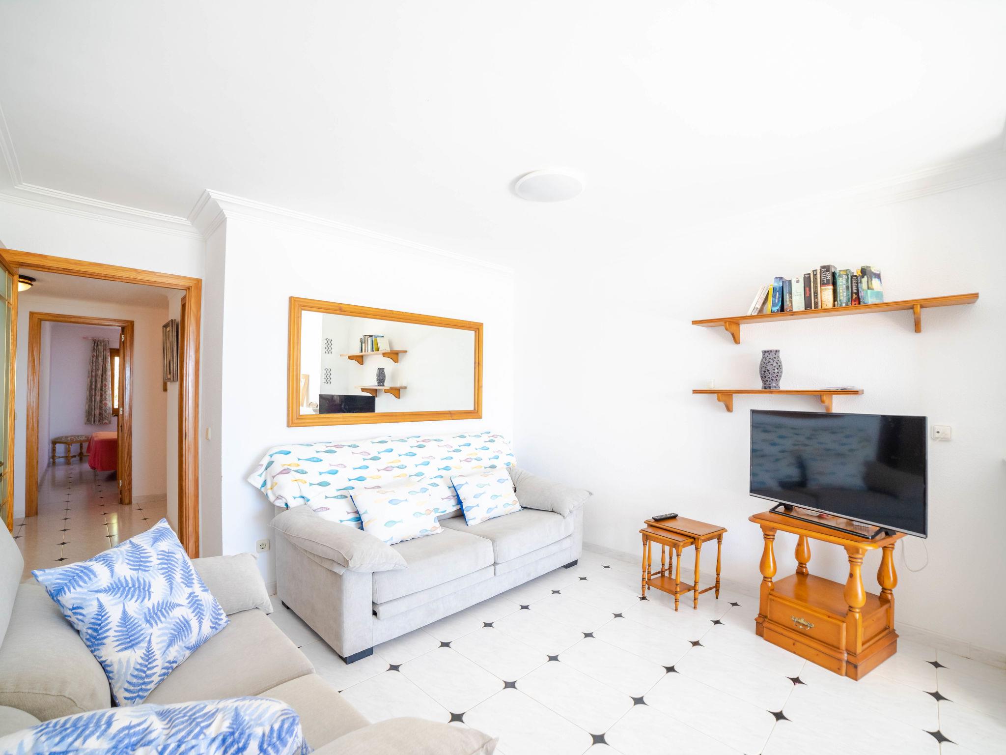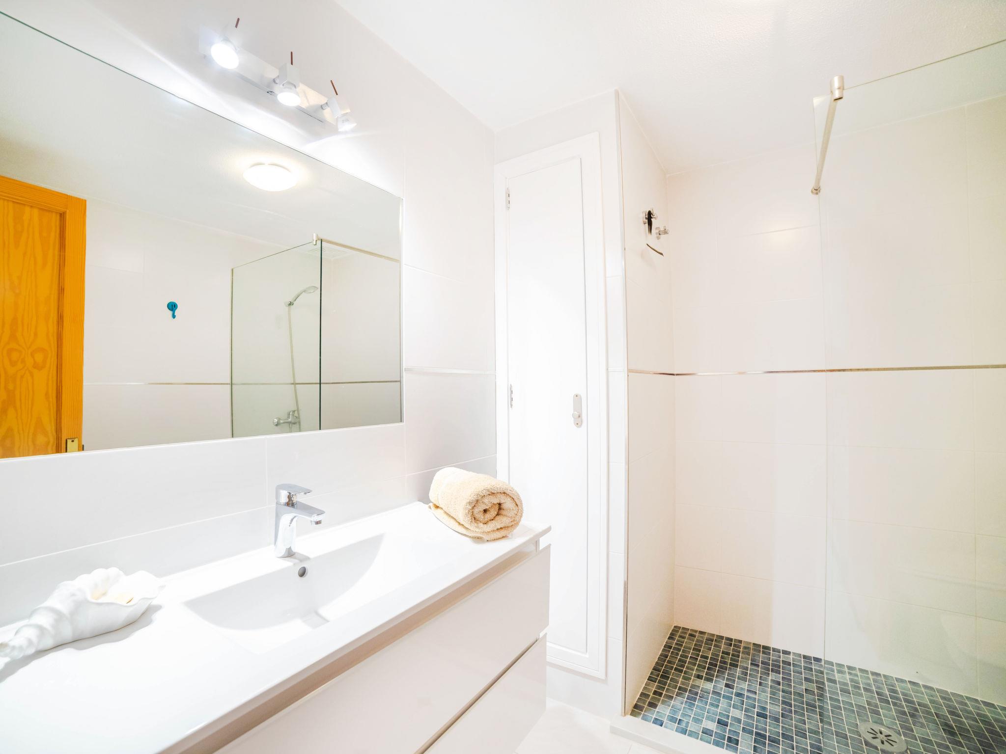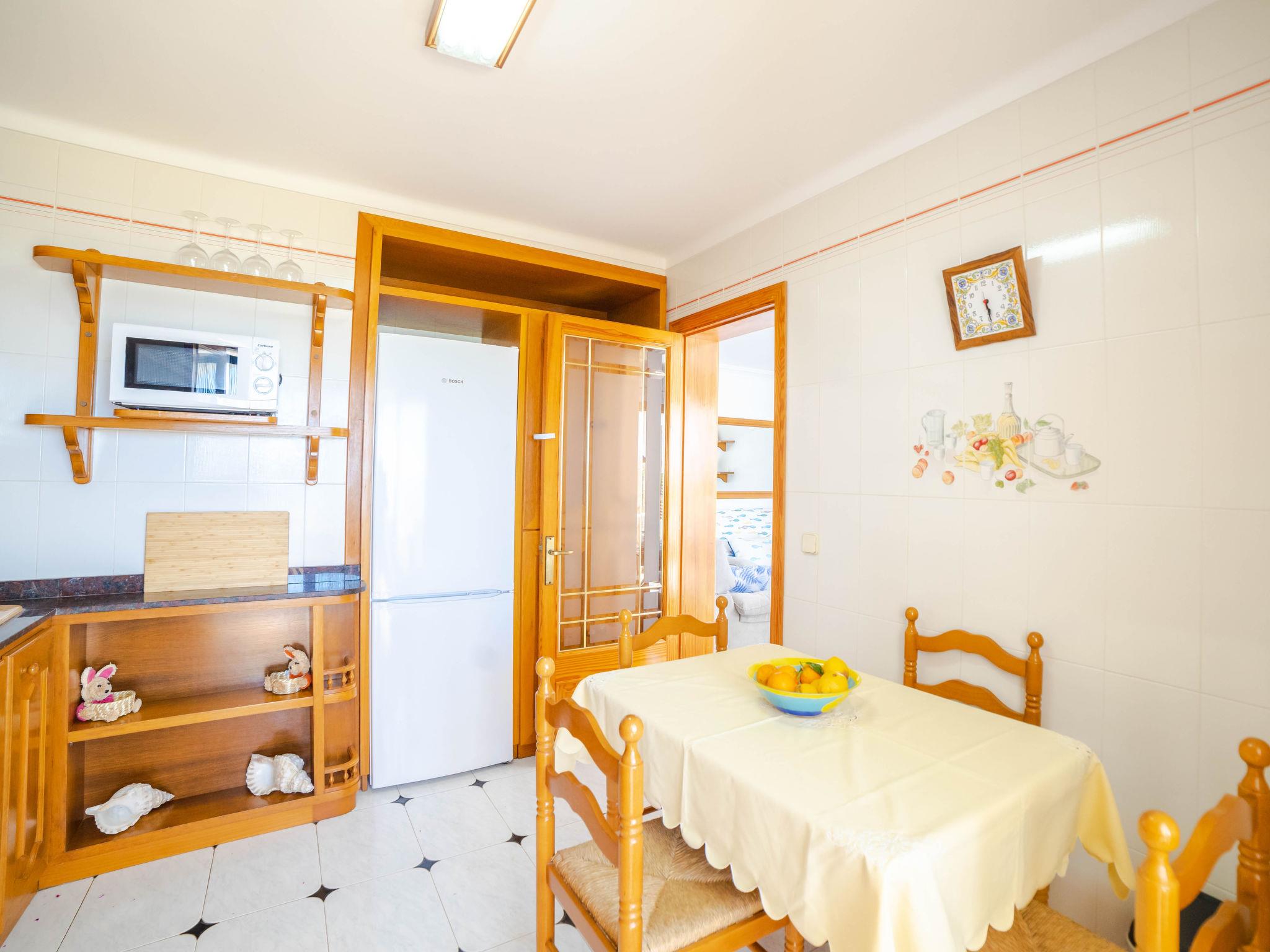 Port d'Alcúdia: Large, cosy apartment block "Sa Mirada". In the resort, 2.5 km from the centre, in a quiet, sunny position, 2.5 km from the edge of the forest, 3 m from the sea, from the beach, direct access to the beach. Private: garden with lawn and wildlife garden. Outdoor shower, patio, arbour, pergola, garden furniture. In the house: internet access, WiFi, washing machine. Stepped path (6 steps) to the house. Supermarket 400 m, restaurant 150 m, bar 200 m, bicycle rental 500 m, pub garden 150 m, bus stop, sandy beach 3 m, rocky beach 5 km. Sports harbour 3 km, marina 3 km, golf course (18 hole) 6 km. Please note: suitable for families, suitable for seniors. Object suitable for 6 adults.