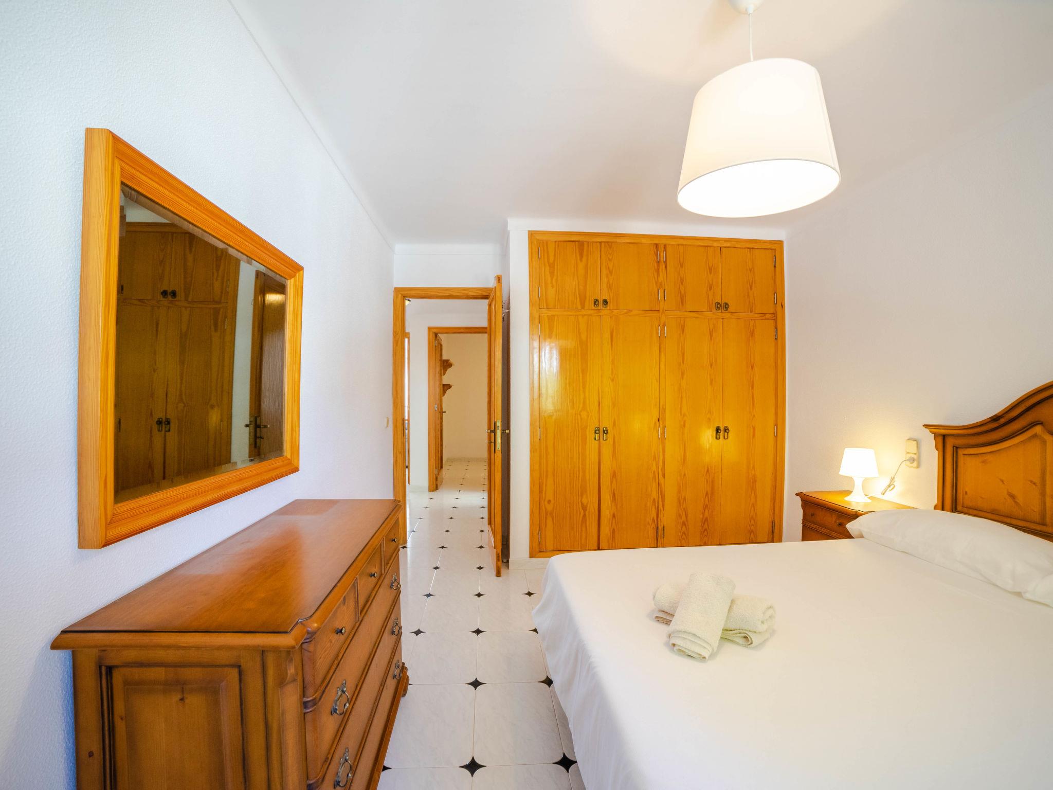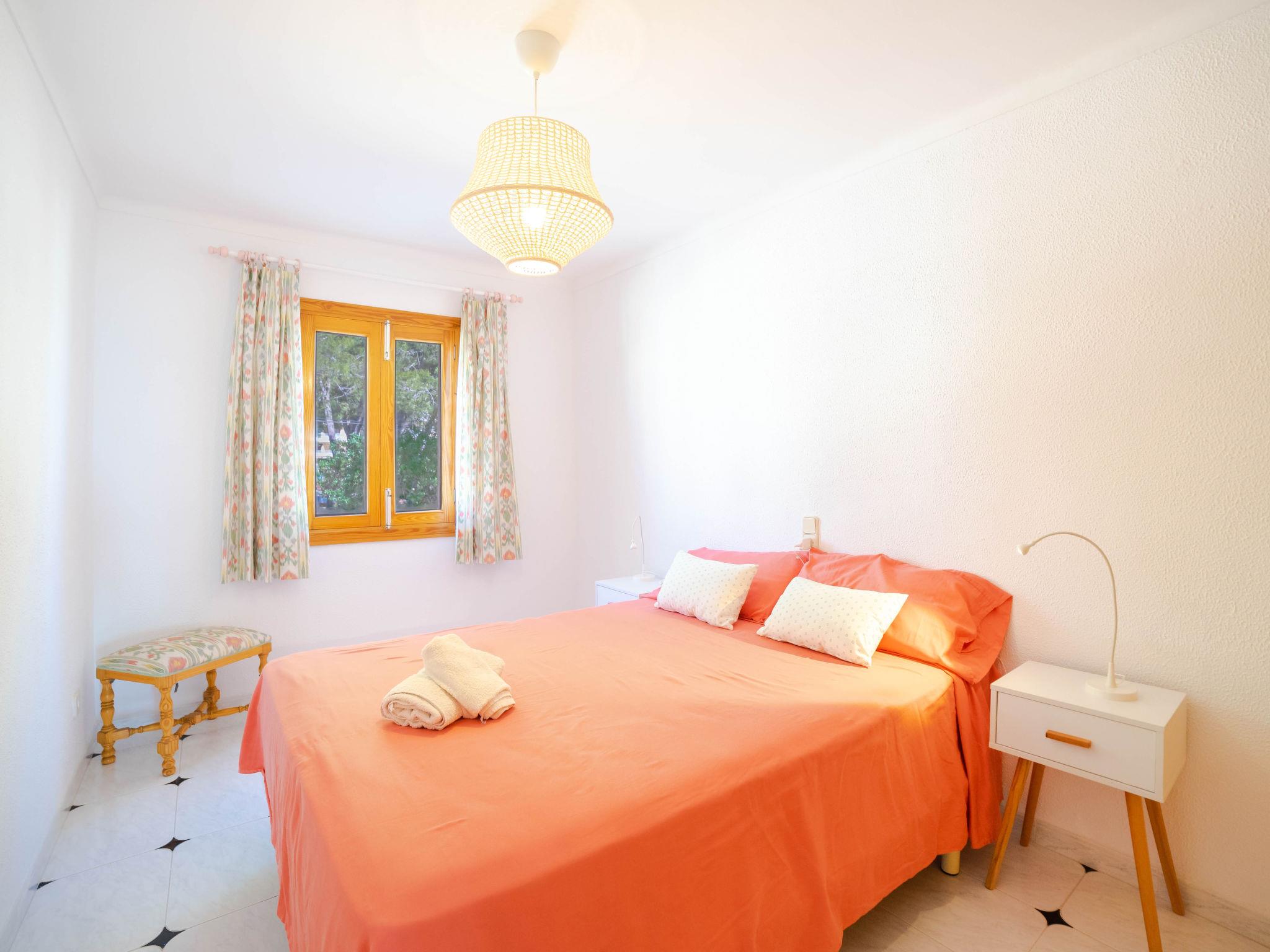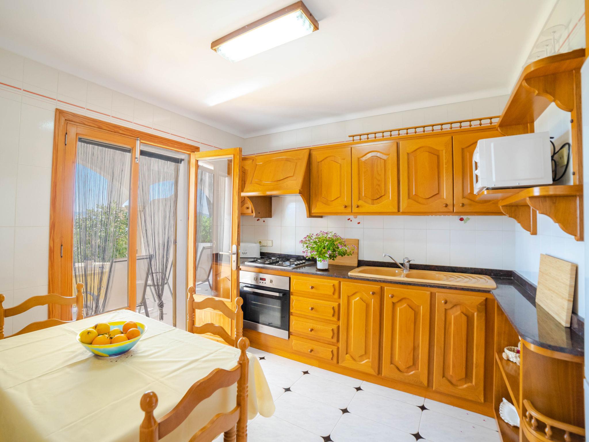 "Sa Mirada", 4-room apartment 120 m2, on the upper ground floor. Object suitable for 6 adults. Spacious and bright, comfortable and cosy furnishings: large living/dining room with panoramic window with dining table, TV and flat screen. Exit to the patio. 2 large double bedrooms with panoramic window, each room with 1 french bed (150 cm, length 190 cm). 1 large double bedroom, window onto the courtyard with 2 beds (90 cm, length 190 cm). Kitchen-/living room (3 hot plates, oven, microwave, freezer, electric coffee machine) with dining table. Exit to the patio. Bath/WC, shower/bidet/WC. No heating option. Patio, lawn, porch. Terrace furniture, deck chairs (2). Marvellous panoramic view of the sea and the bay. Facilities: washing machine, iron, children's high chair, baby cot, hair dryer. Internet (WiFi, free). Suitable for families. ETVPL14012 // Reg. Nr.: ESFCTU0000070430001943720000000000000000000ETV/140128