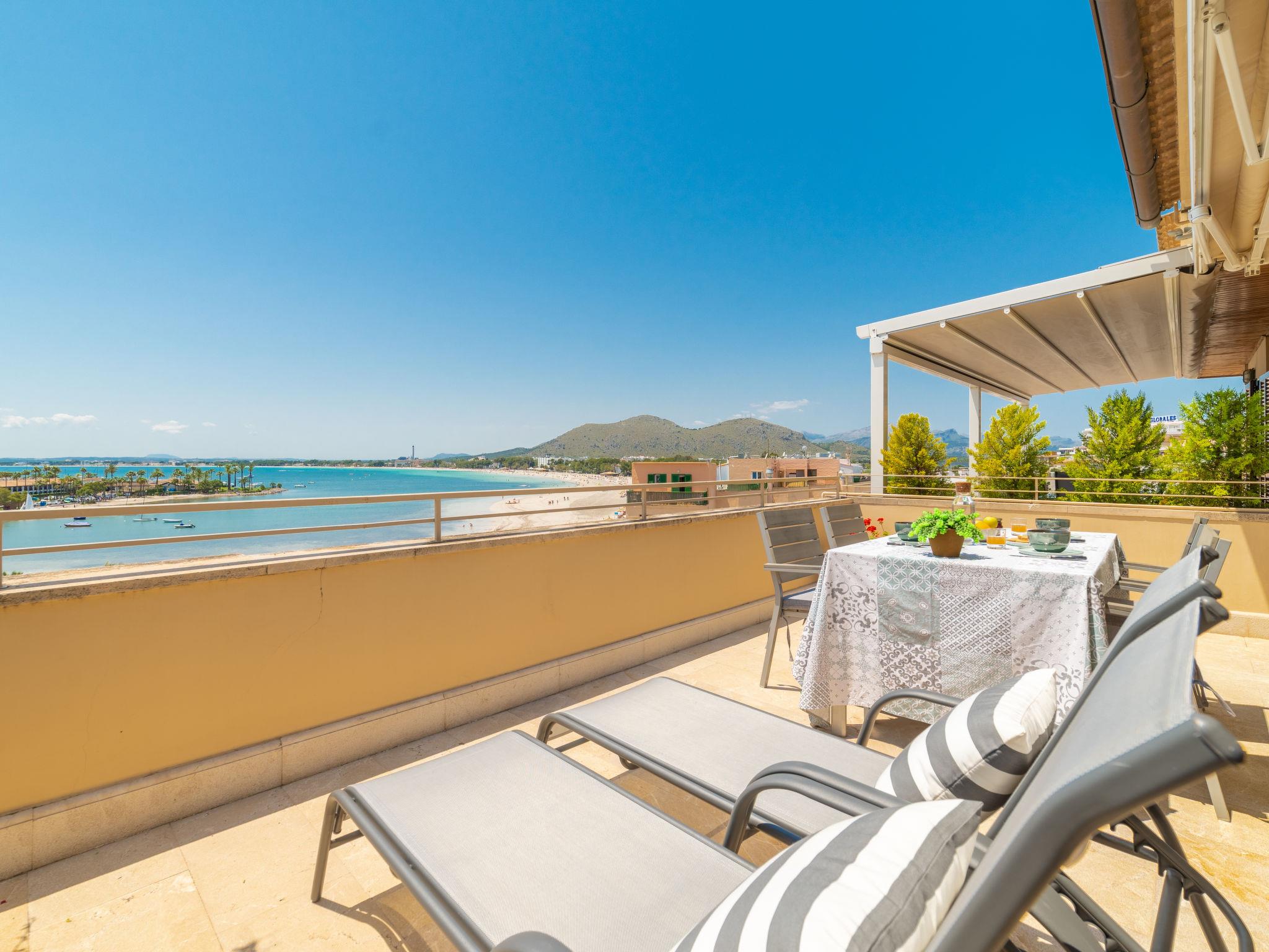 Port d'Alcúdia: Very modern, comfortable apartment block "Nautic Sea Views". In the centre, in a sunny position, excellent location: right in the centre but still quiet, 2 km from the edge of the forest, from the sea, 50 m from the beach, road to cross. Private: terrace. In the house: internet access, WiFi, lift, air conditioning, washing machine. Public car park at, public parking 100 m on the road. Central parking spaces. Shop, grocery 50 m, supermarket 120 m, shopping centre 50 km, restaurant 50 m, bar, bakery 200 m, pedestrian zone 5 m, bicycle rental 200 m, pub garden 50 m, 1 minute walk to the centre, bus stop 120 m, ferry 1 km, sandy beach "Playa de Alcúdia" 35 m, rocky beach "Alcanada" 2 km. Sports harbour, marina 100 m, golf course (18 hole) 3 km, tennis 1.5 km, riding stable 3 km. Nearby attractions: Ciutat Romana de Pollentia, Ermita de La Victoria, Faro de Aucanada, Alcúdia Local Market (Sunday 09.00-13.30, Playas de Muro, Port de Pollença. Hiking paths: Atalaya de Alcúdia, Puig de Sant Martí, Serra de Tramuntana Pollença. Please note: suitable for families, suitable for seniors. Object suitable for 4 adults. Airfield 55 km from the property.