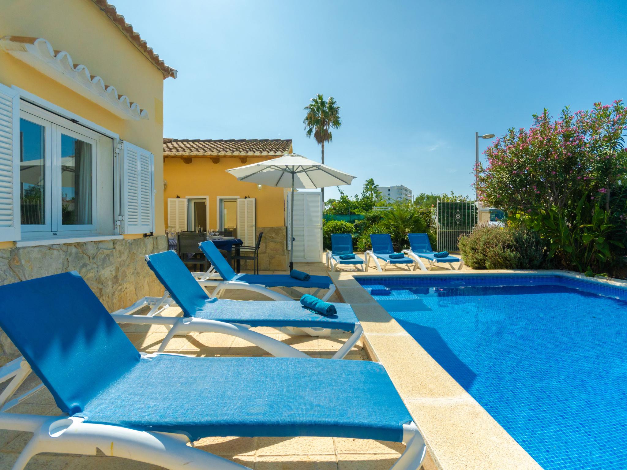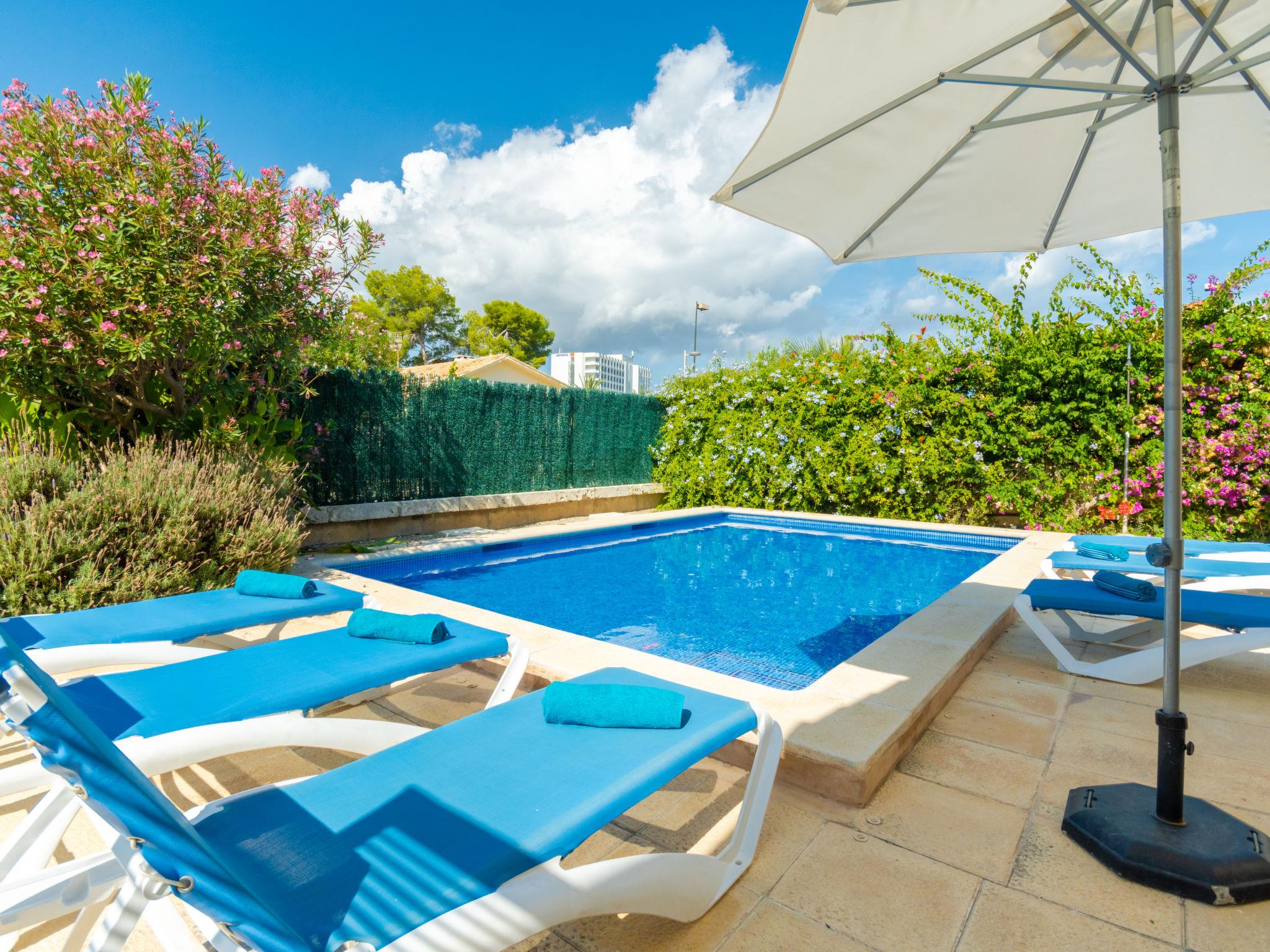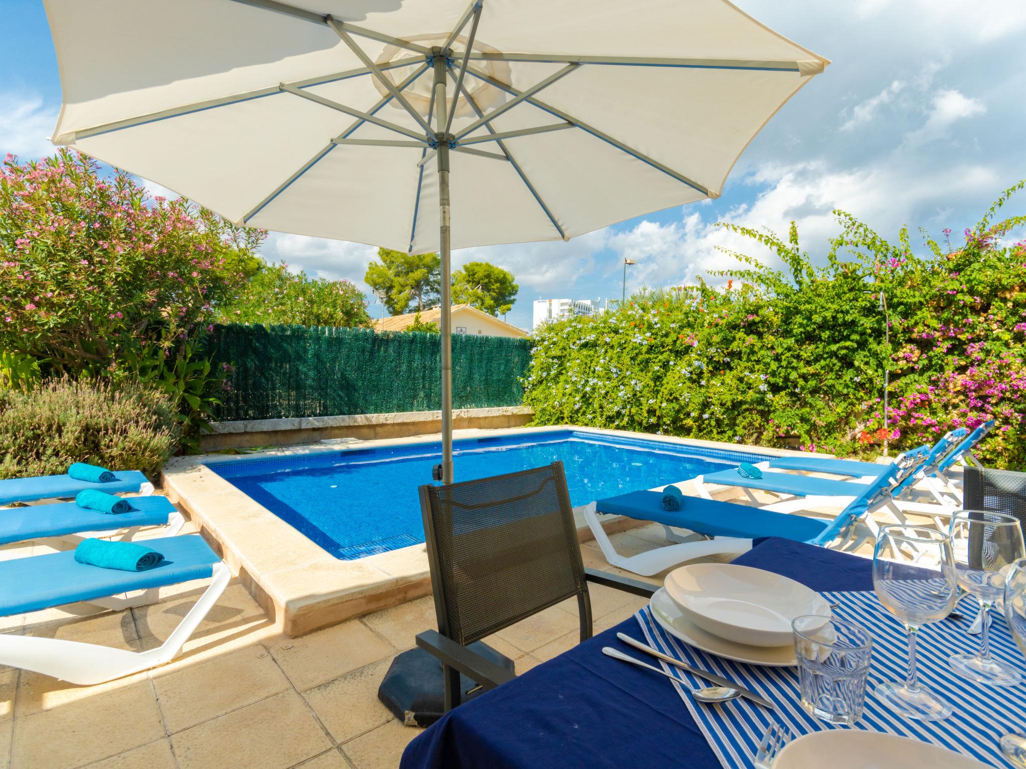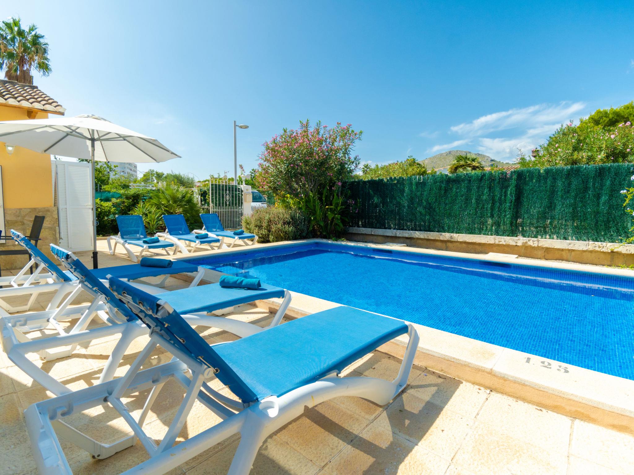 Puerto Alcudia: Beautiful, cosy, comfortable villa "Lilly". In the centre of Puerto Alcudia, in a central, sunny position, 800 m from the sea, 600 m from the lake, 800 m from the beach. Private: beautiful, well-kept garden, swimming pool angular (3 x 7 m, depth 70 - 125 cm, seasonal availability: 01.Jan. - 31.Dec.). Outdoor shower, arbour, garden furniture, barbecue. In the house: internet access, WiFi, air conditioning, burglar alarm system, washing machine, tumble dryer. Shop, supermarket 500 m, bar 300 m, bakery, café 500 m, pub garden 300 m, bus stop 500 m. Sports harbour 1.5 km, marina 1.5 km, golf course (18 hole) 3 km. Nearby attractions: Hidropark (Water Park) 500 m. Hiking paths: Puig de Sant Martí 2 km. Please note: suitable for seniors baby equipment on request (included). Object suitable for 6 adults. The owner does not accept any youth groups. Loading and unloading of baggage is possible at the holiday house. Nightclub/disco close by 450 m from the property. Airfield 60 km from the property.