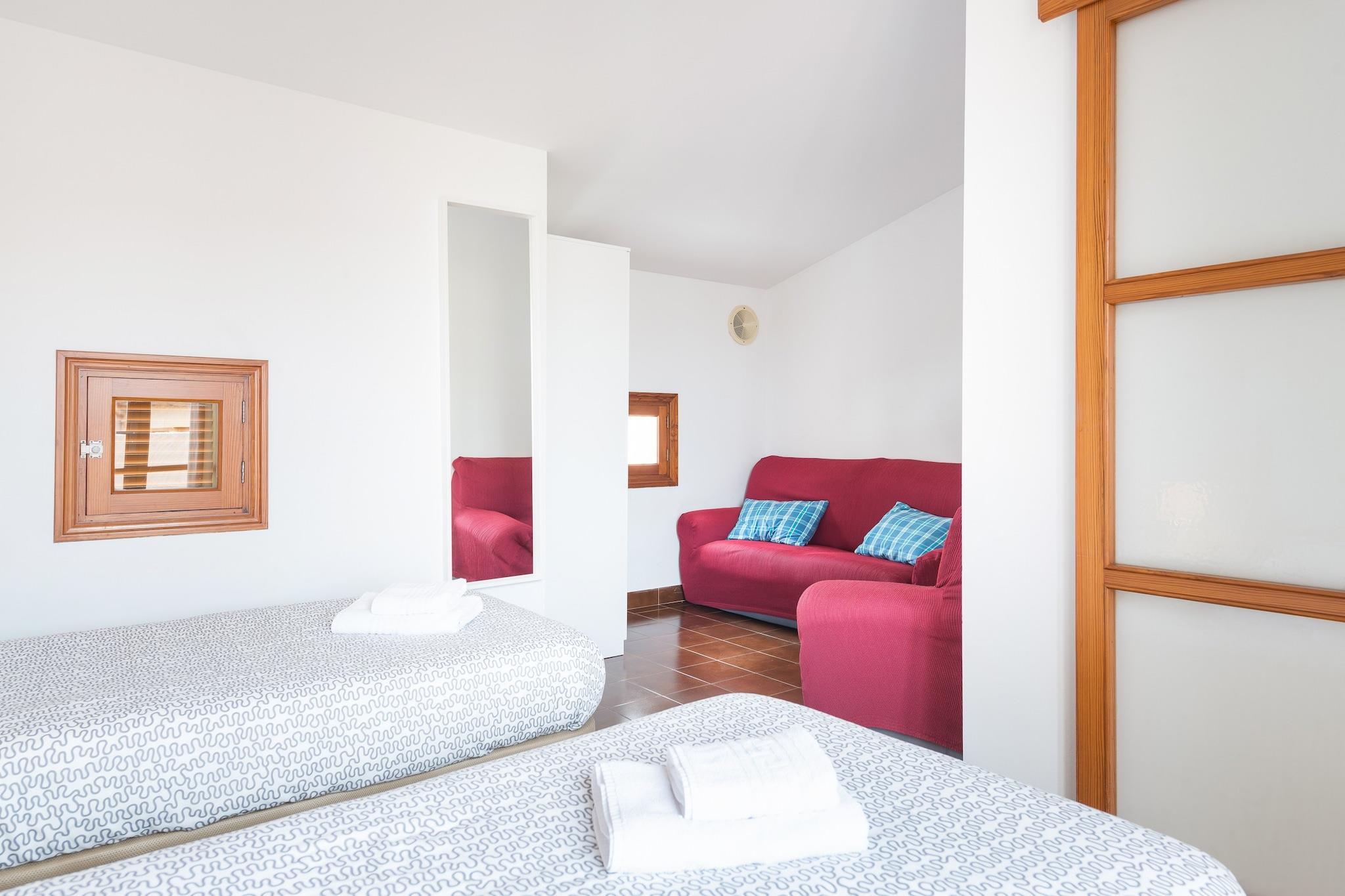 In dit charmante huis kunt u genieten van de rust van een woonwijk en tegelijkertijd in een van de belangrijkste toeristische centra van Mallorca zijn. Buiten kunt u genieten van een fantastisch verhoogd zwembad van 3 x 1,7 meter met een constante diepte van 1,20. Eromheen staan ??ligstoelen waar u comfortabel kunt zonnebaden of naar de sterren van de Mallorcaanse hemel kunt kijken. Op de veranda direct naast het terras staat een tafel voor zes personen om buiten te eten en dineren en te genieten van het vlees en de groenten die je op de barbecue hebt gemaakt. Het perceel is omheind en heeft aangrenzende buren. Het huis heeft 118m2 en is verdeeld over drie verdiepingen. Vanaf het terras hebben we toegang tot de woon-eetkamer op de begane grond. Het is licht en eigentijds en heeft twee comfortabele banken om van satelliet-tv te genieten en een eettafel voor 6 personen. Er is airconditioning zodat u op de warmste dagen verkoeling kunt vinden. De keuken is onafhankelijk, met een keramische kookplaat en het nodige keukengerei om in alle comfort te koken. Er is ook een toilet dat deze verdieping bedient. Als we de trap opgaan, vinden we twee slaapkamers met een tweepersoonsbed, kledingkast en airconditioning. Eén ervan heeft een en-suite badkamer met douche. Een andere complete badkamer met douche bedient de rest van de verdieping. De derde slaapkamer bevindt zich op de tweede verdieping van de woning. Net als de andere twee heeft het veel licht en volgt het de eigentijdse stijl van het hele huis. Deze slaapkamer heeft een kledingkast, twee eenpersoonsbedden en twee comfortabele banken waar u in de rust van de kamer een boek kunt lezen of tv kunt kijken, en airconditioning. Het heeft toegang tot een terras van ongeveer 12 m2. Het huis beschikt over een wasmachine, strijkijzer en strijkplank, evenals een kinderstoel en een kinderbedje voor het geval u met een baby reist. Puerto de Alcudia is een ongelooflijke vakantiebestemming waar u kunt genieten van lange wandelingen langs het witte zandstrand en kristalheldere water, watersporten, winkels, restaurants en nog veel meer. Het beschikt over alle noodzakelijke voorzieningen voor een onafhankelijk verblijf. Vlakbij vindt u het oude centrum van Alcudia, buitengewoon mooi met Romeinse ruïnes waar u de markt die op dinsdag en zondag plaatsvindt niet mag missen. U kunt ook de oude Romeinse stad Pollentia bezoeken, of naar andere baaien gaan, zoals Mal Pas of La Victoria. Voor eventuele extra kosten kunt u contact opnemen met de adverteerder. Wij accepteren geen huisdieren. Het vieren van evenementen is niet toegestaan. Afstanden Strand: 0,85 km - Port d'Alcúdia Luchthaven: 62,9 km - Luchthaven Son Sant Joan Golfbaan: 2,6 km - Golf d'Alcanada Stad: 5 km - Alcúdia Treinstation: 15,8 km - station Sa Pobla Bushalte: 1,3 km - Ctra. ArtÃ, Port d'Alcúdia Veerboot: 0,6 km - Port d'Alcúdia Ziekenhuis: 8,8 km - Juaneda Muro-ziekenhuis Toeristenvergunning: ETV/10975 Op de Balearen geldt een toeristenbelasting, Ecotasa genaamd, die door de gast moet worden betaald. Het bedrag varieert tussen EURO 0,55 / per nacht per persoon in het laagseizoen en EURO 2,2 / per nacht per persoon in het hoogseizoen. Vanaf de negende dag wordt het met de helft verminderd. Personen onder de 16 jaar uitgesloten.
