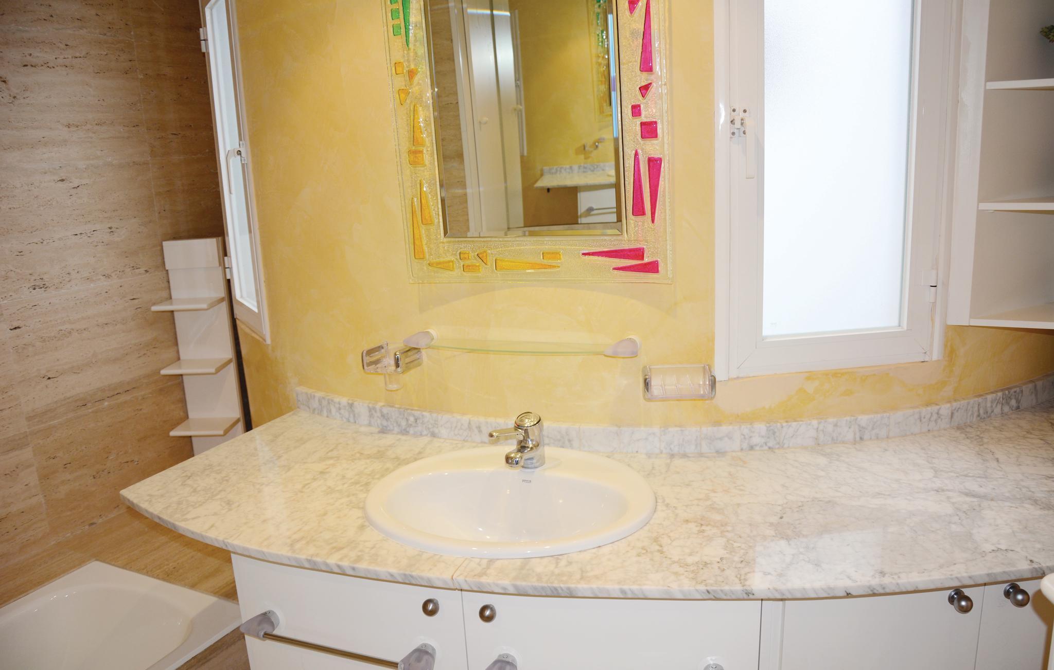 Tag liften, over den lille kystvej, og I er ved stranden. Nyd jeres måltider på den dejlige terrasse med havbrise, i den knortede pinjetræs skygge. Salonen og et af soveværelserne har udsigt til havet. Offentlig transport samt restauranter, caféer og indkøbsmuligheder findes lige i nærheden. Vandet bliver kun langsomt dybere og er ideelt til små børn.
