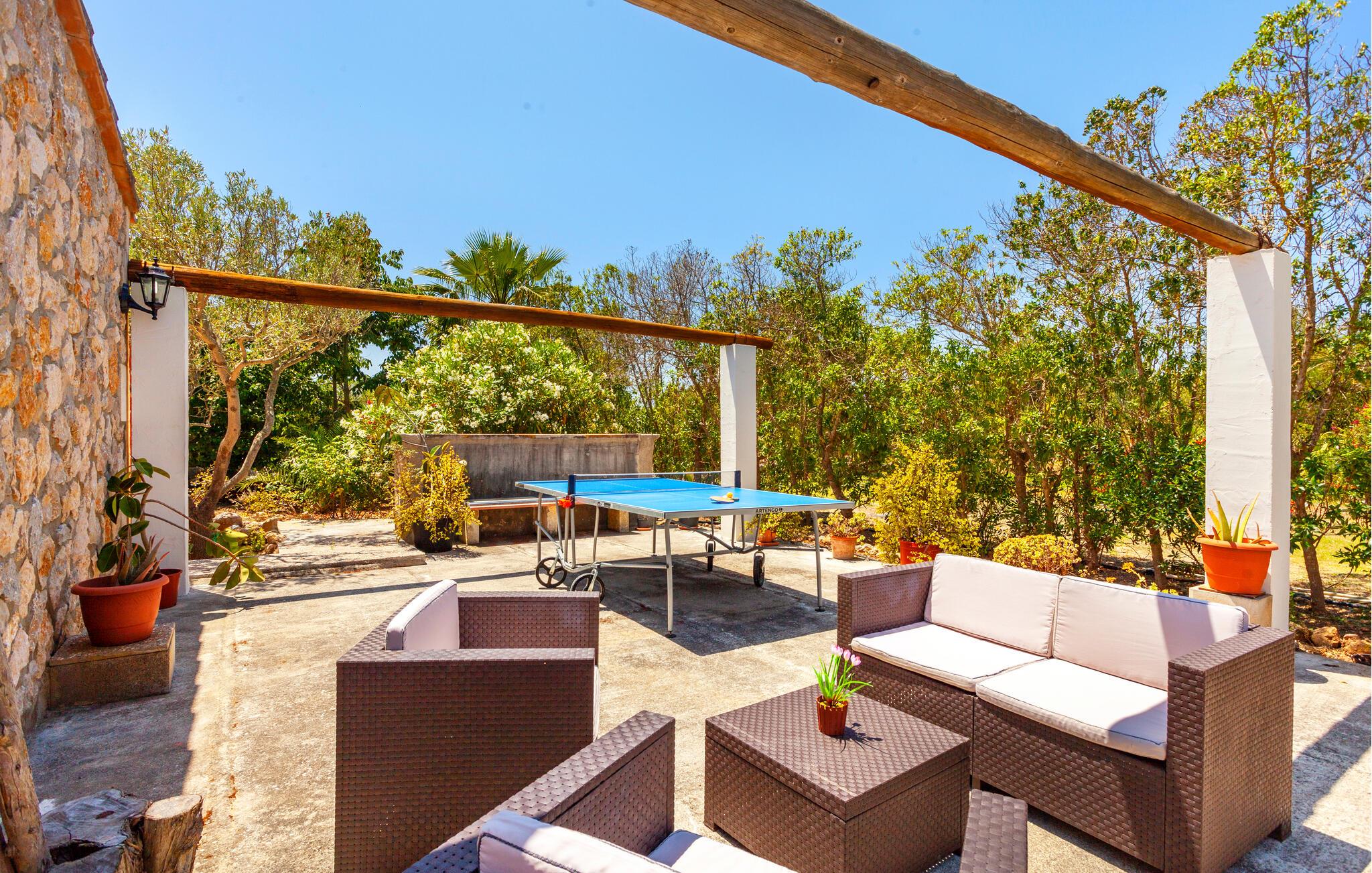 Den smukke have lægger op til at tilbringe afslappende timer udendørs når som helst. Snup en frisk dukkert i poolen om morgenen, spil en runde vandpolo, og slap derefter af på liggestolene. Og hvis I er i humør til en sportsaktivitet, så organiser en hyggelig bordtennisturnering med familie eller venner.